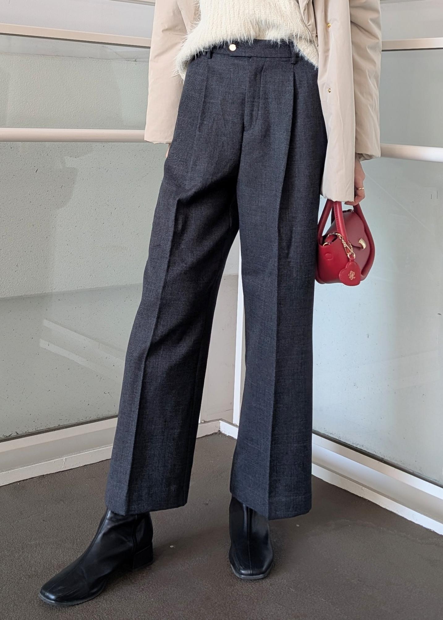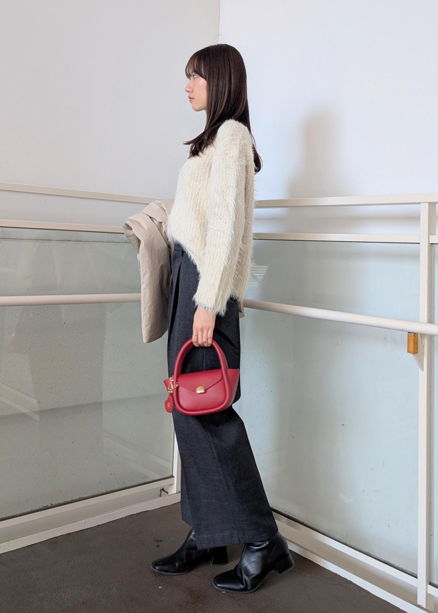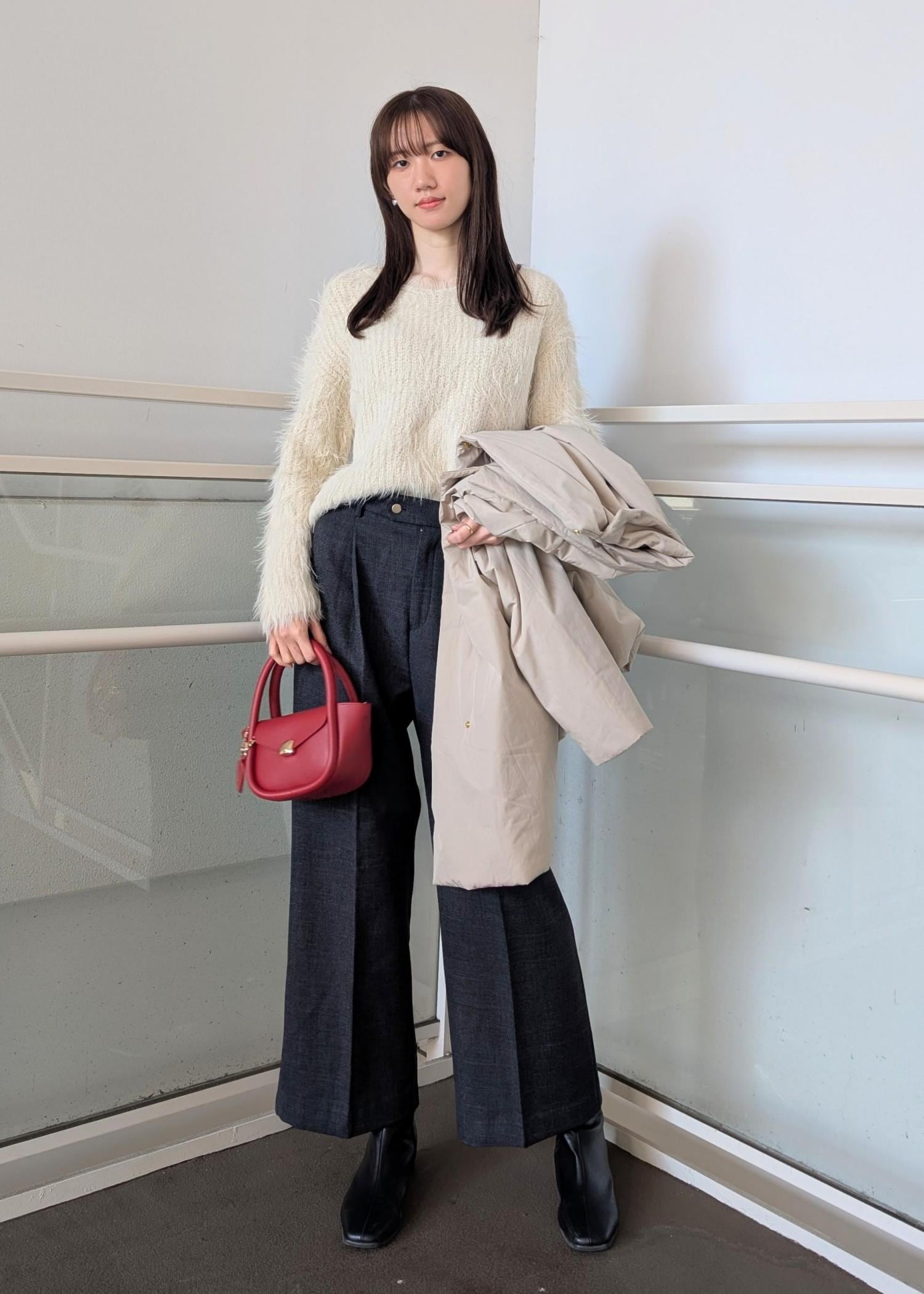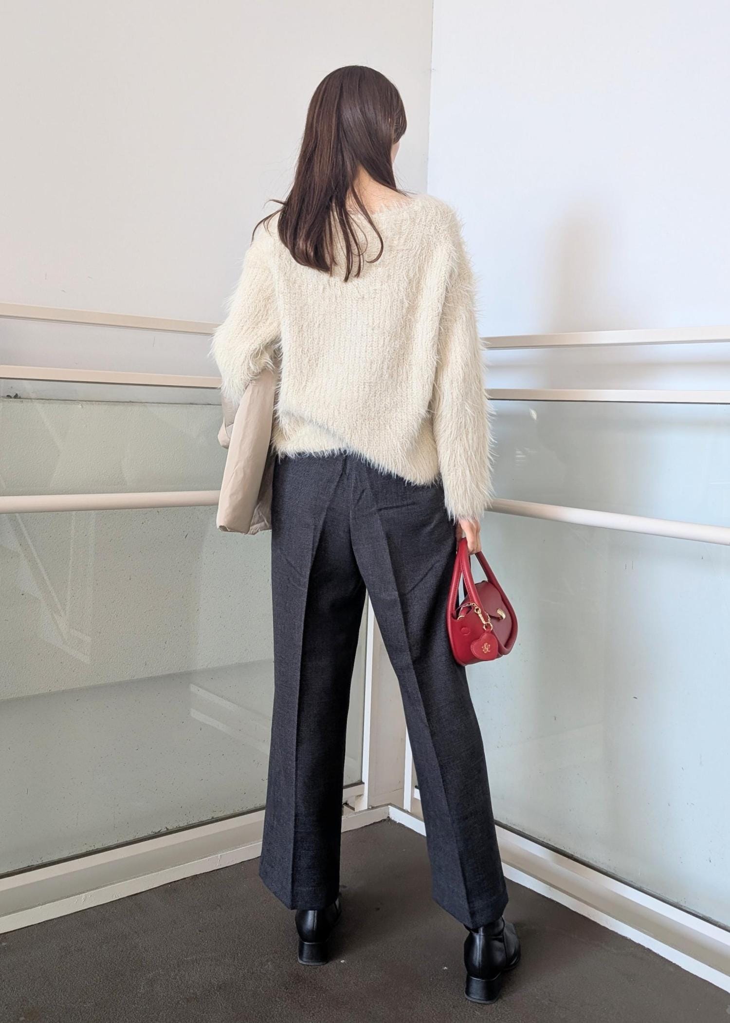 ROPÉ PICNICスリートーンツイードワイドパンツ/セットアップ対応チャコール / L¥4,543レビュー後ろのボタンでウエストの微調整ができるので丈重視でLサイズを選びました。センタープレスで足が長く見えます。