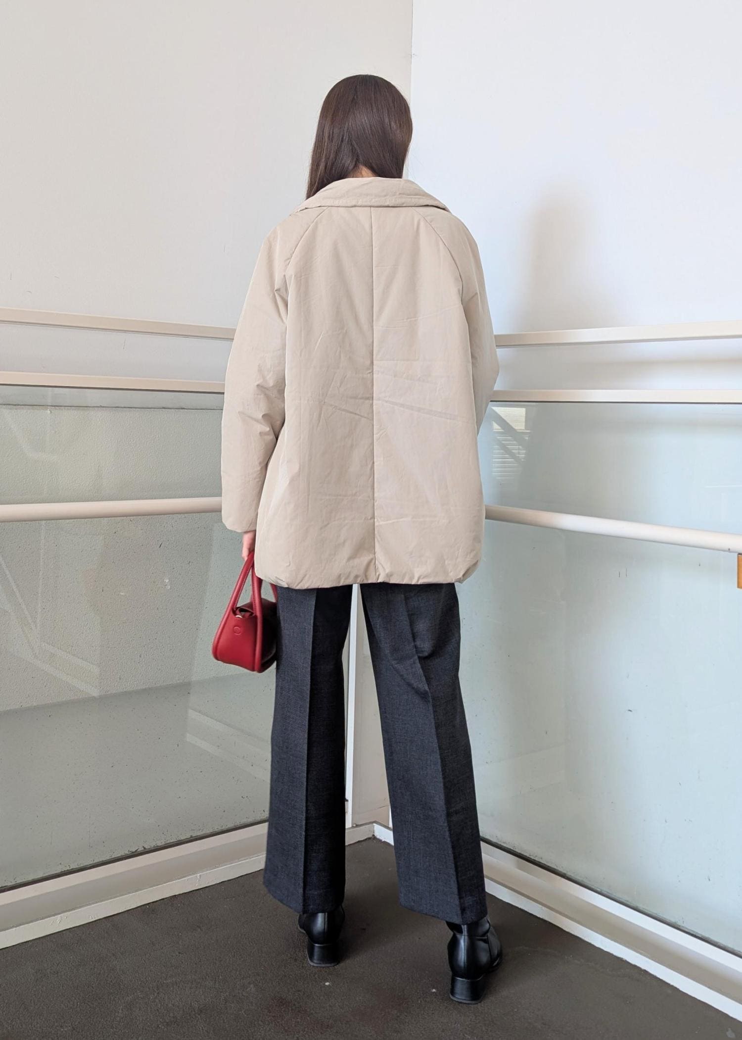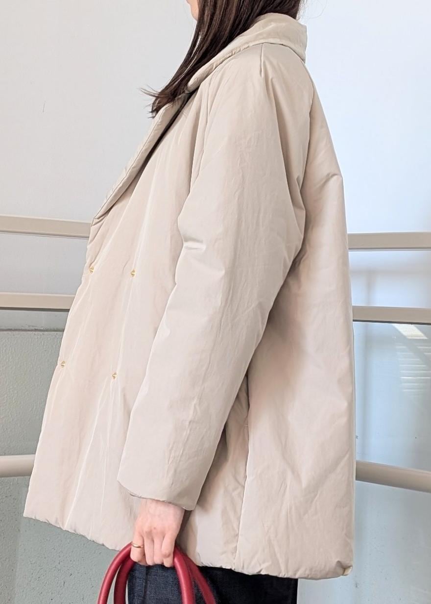ROPÉ PICNIC2WAY中綿テーラードコートベージュ / F¥9,680レビューコクーンシルエットが可愛いアウターです。身幅がかなりあるので厚手のニットを着ても余裕があります。