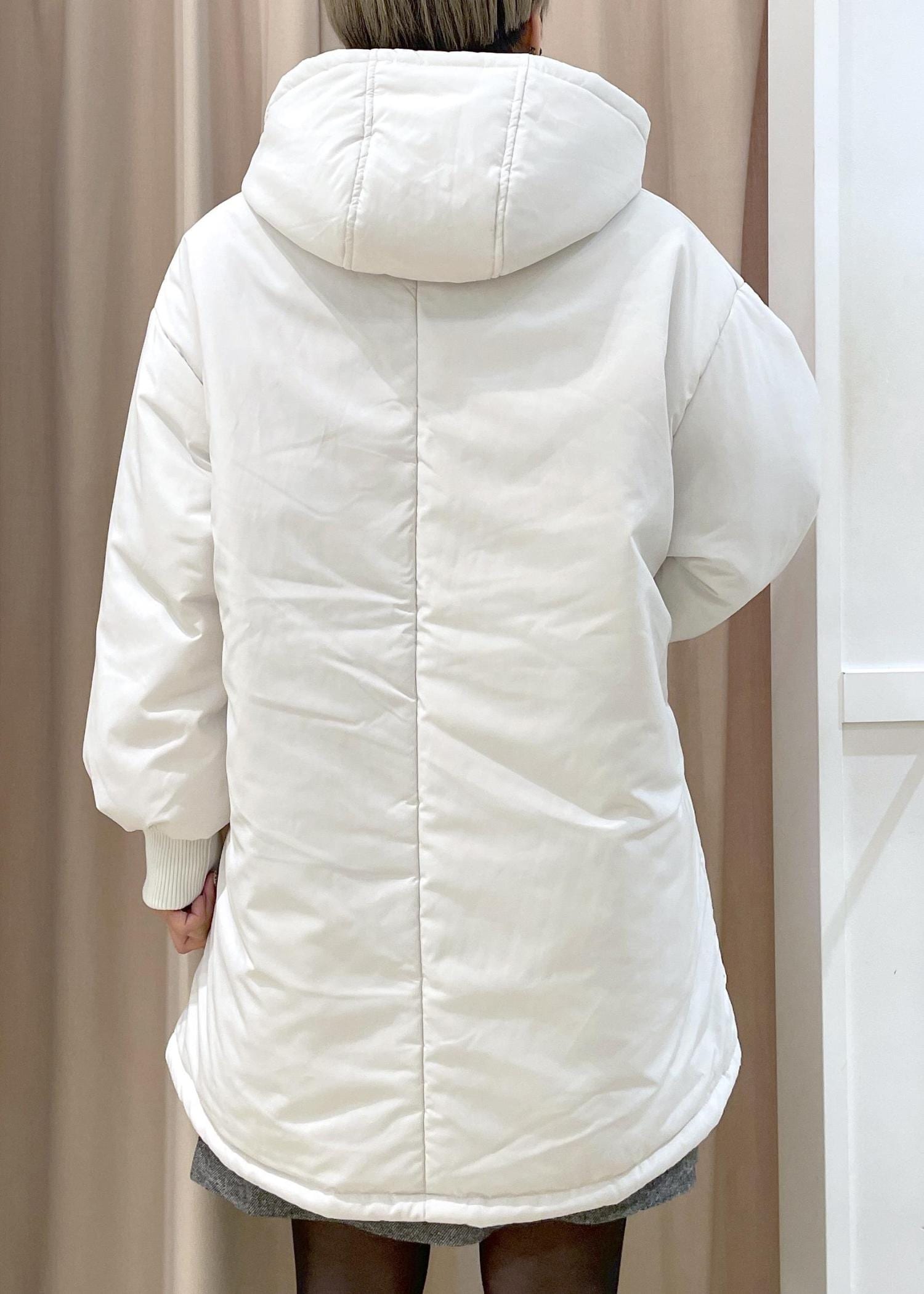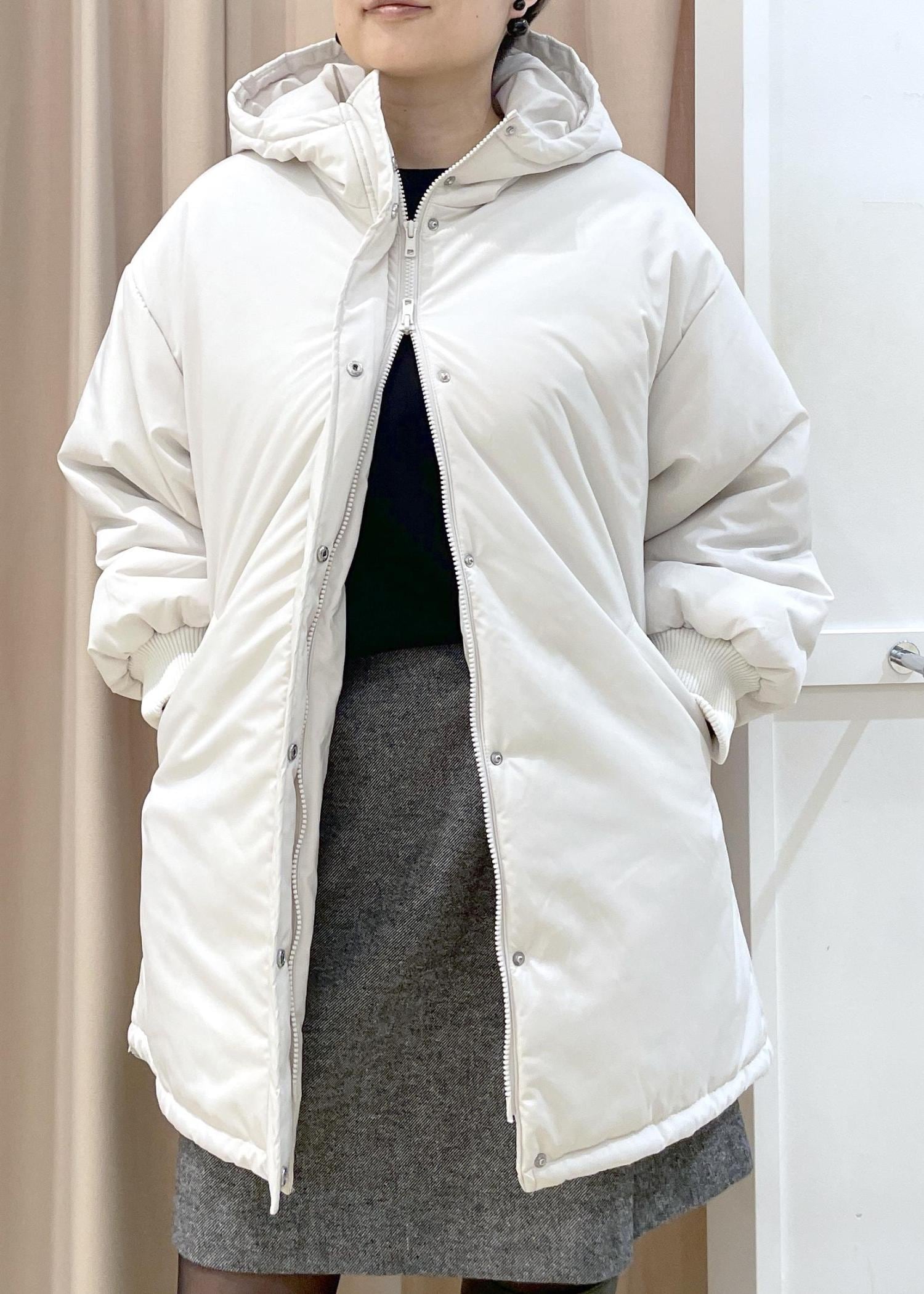 膝上まである丈感のオーバーサイズ中綿アウターです。