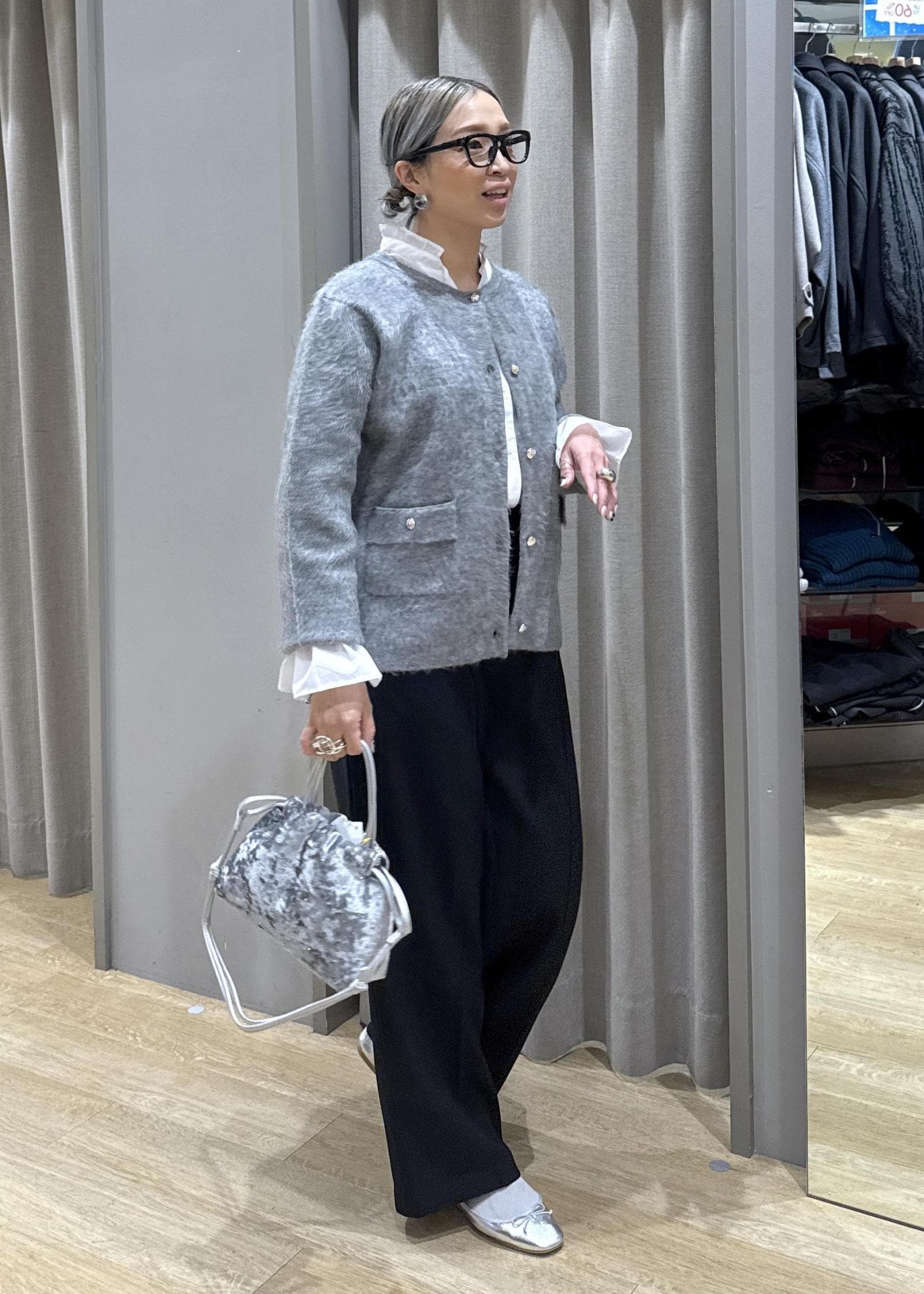 ROPÉ PICNICダブルフェイス襟取り外し起毛カーディガンライトグレー / F¥5,192レビュー着脱できる襟とレトロデザインのメタルボタンがとても可愛い毛長のカーディガン。