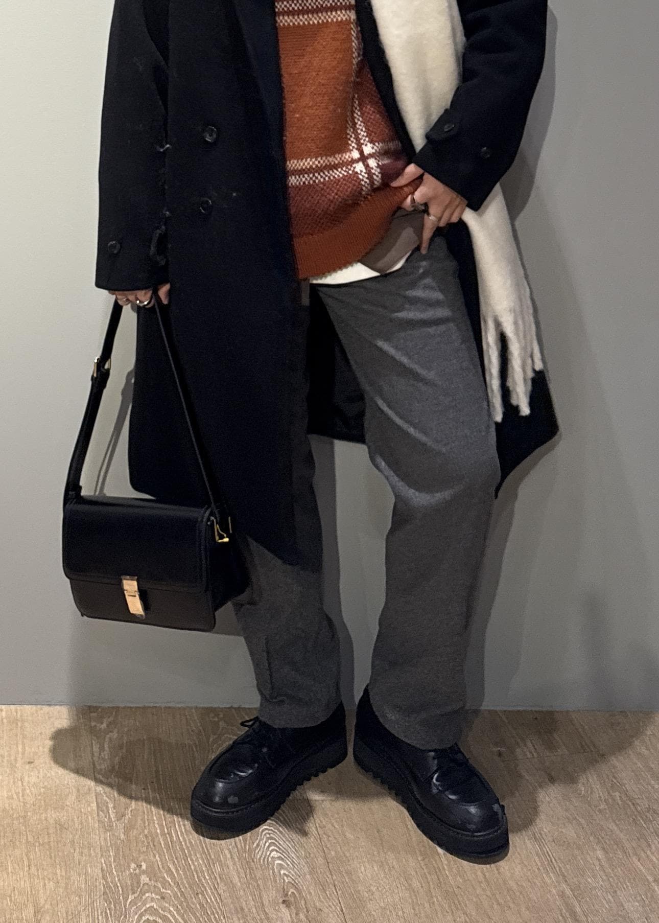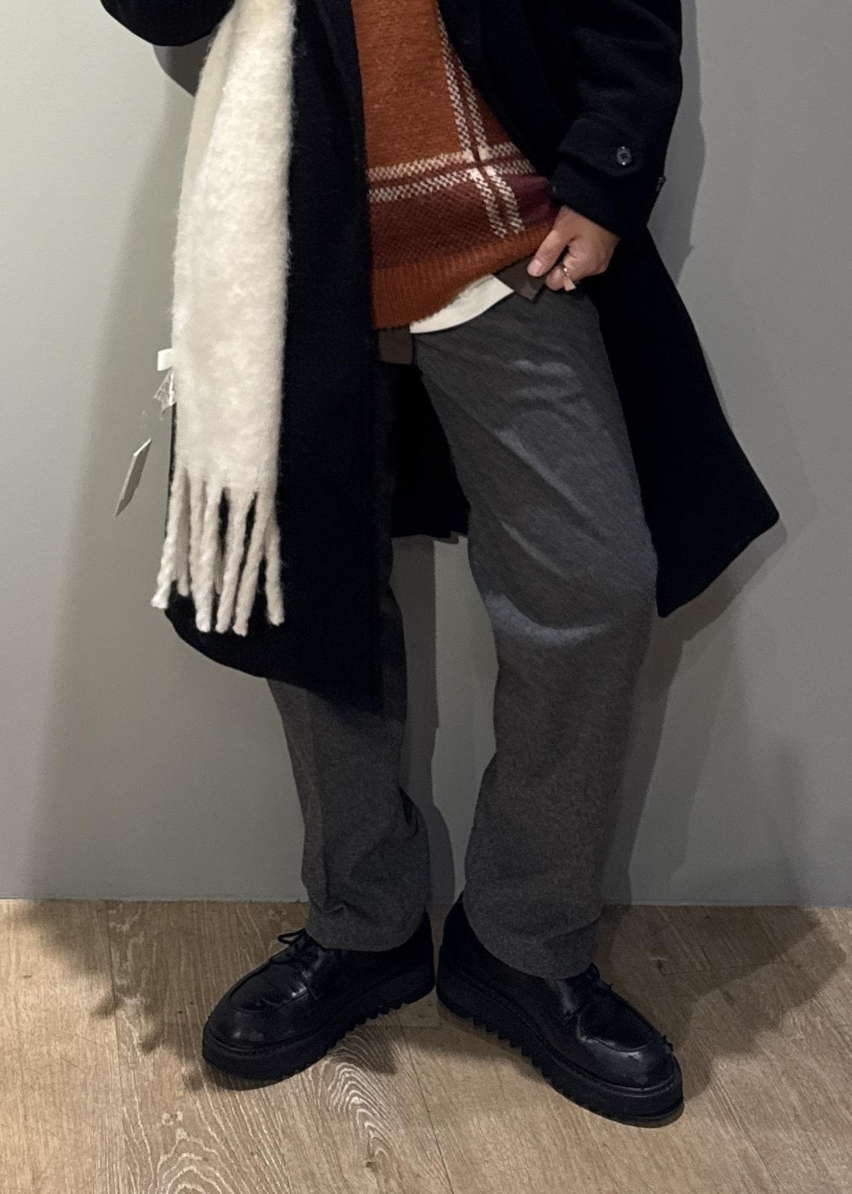 LE CERCLE par ropéメランジワンタックトラウザーグレー / L¥6,490レビュー起毛感のあるウール見え素材を使用。ウォーム感と横方向のストレッチ性を備え、肌寒い季節でも快適な穿き心地。