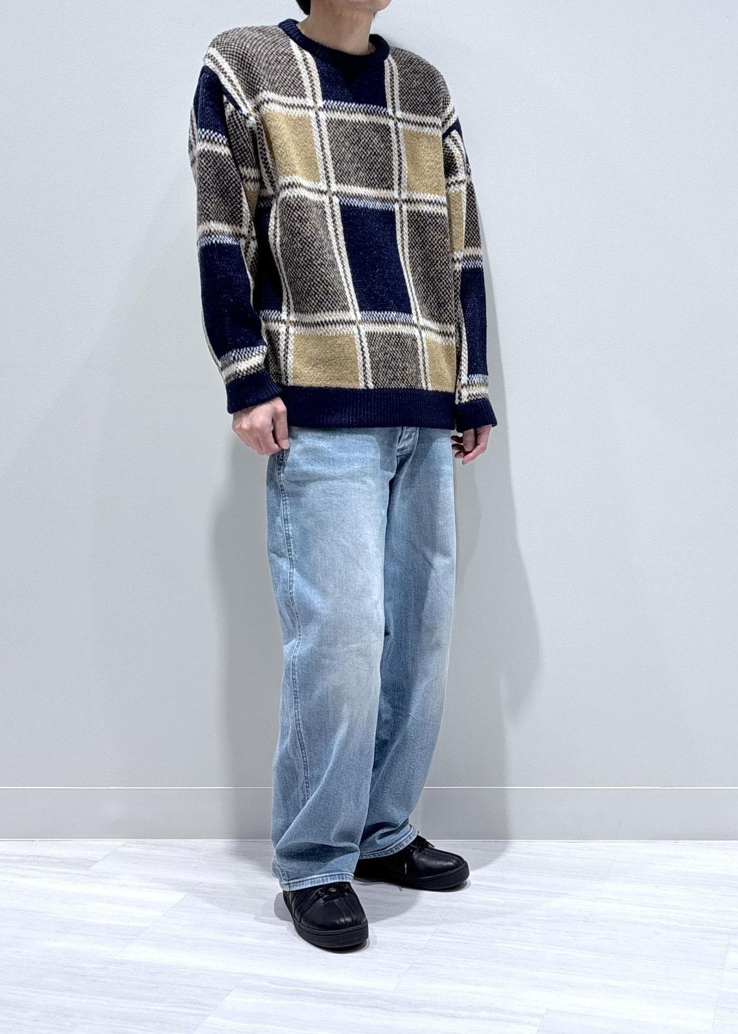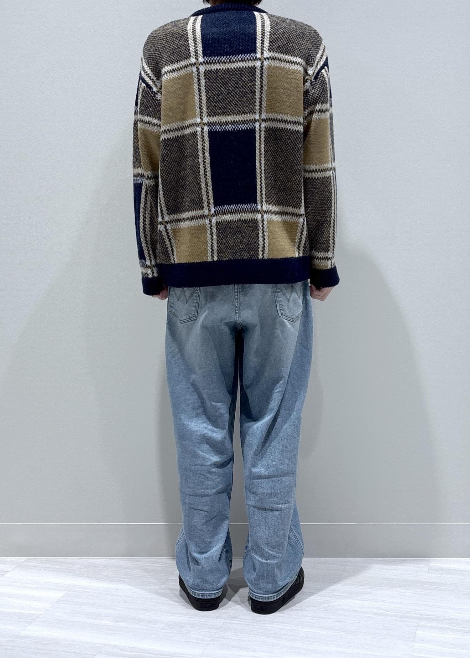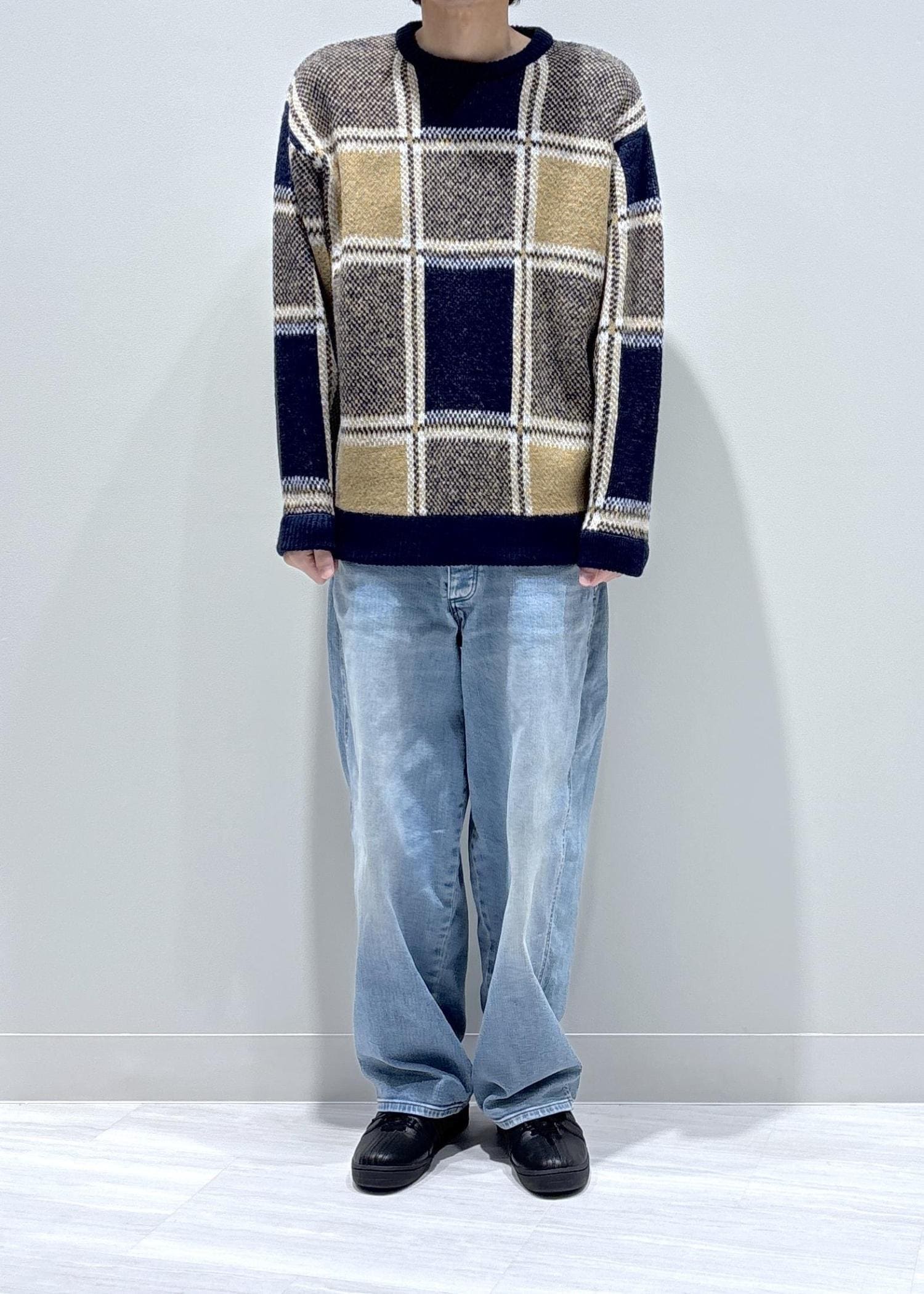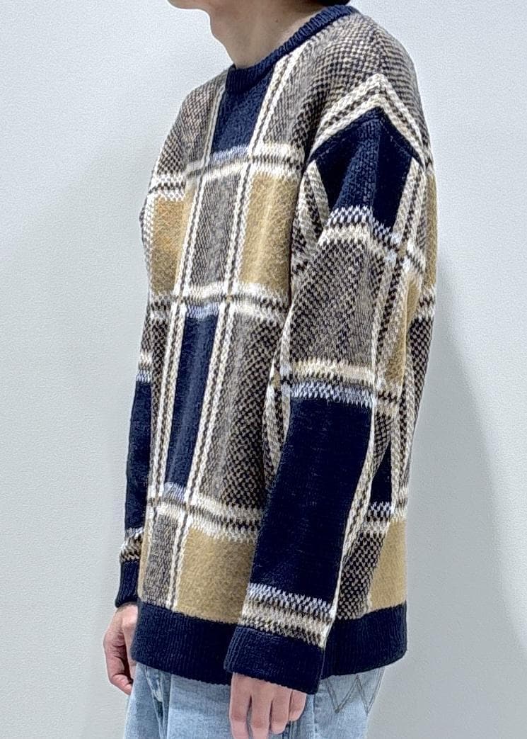 一枚で着るのはもちろんシャツの上から着てもカッコいいニットとなっています。モール糸を使用していますのでピリングになりにくく暖かいです。