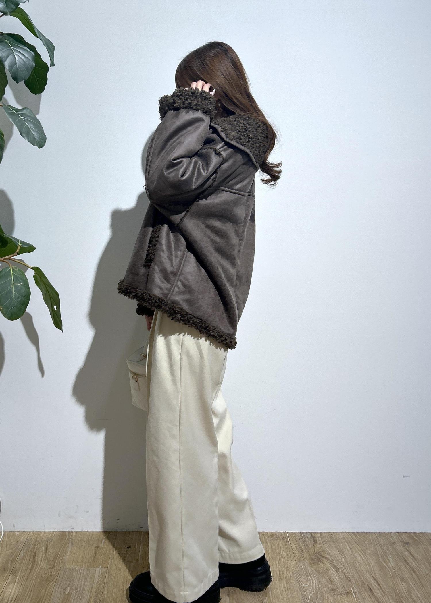 VISフェイクムートンジャケットダークブラウン / F¥11,264レビュー身長158㎝でヒップが隠れます。ボアが可愛いフェイクムートンアウター!!暖かくてて軽いです。ゆとりがあるので中に厚手のトップスを着てもごわつかないです◎