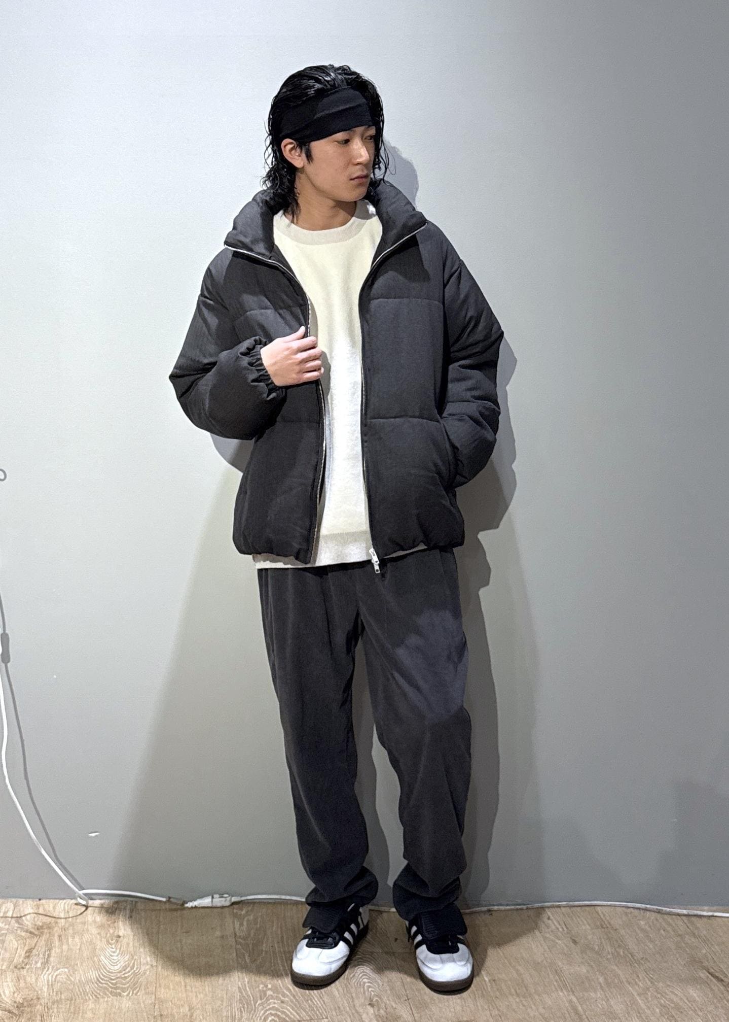 中綿入りながらボリュームを抑えた仕上がりで、軽さと暖かさのバランスが取れた素材感が特徴。
