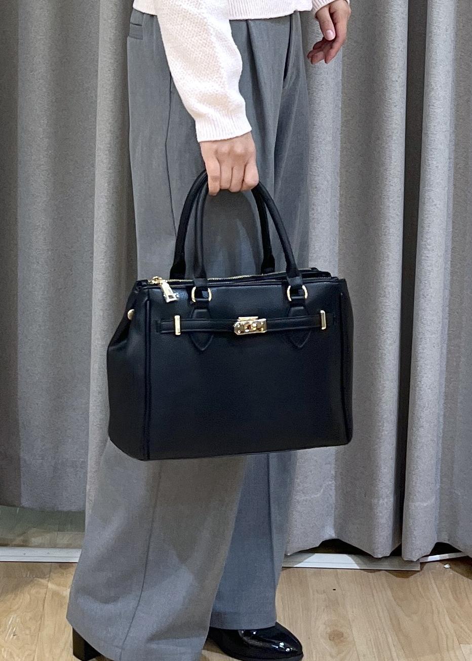 VIS【新色追加】【2WAY】フロント金具3層トートバッグブラック / F¥7,909レビューフロント金具が可愛いバッグ。ショルダー付きで2WAY仕様です。長財布や500mlペットボトルが入る大きさです。