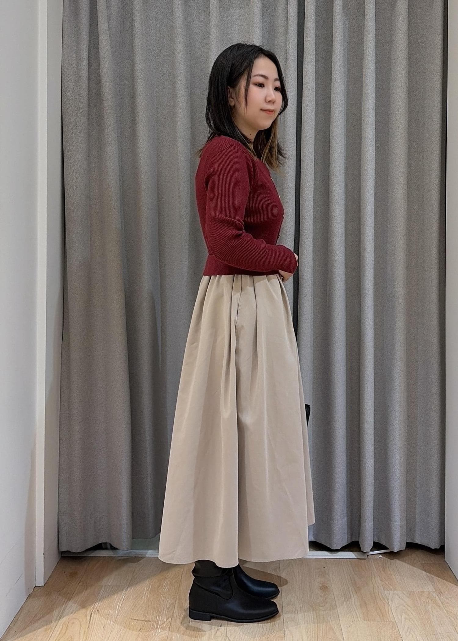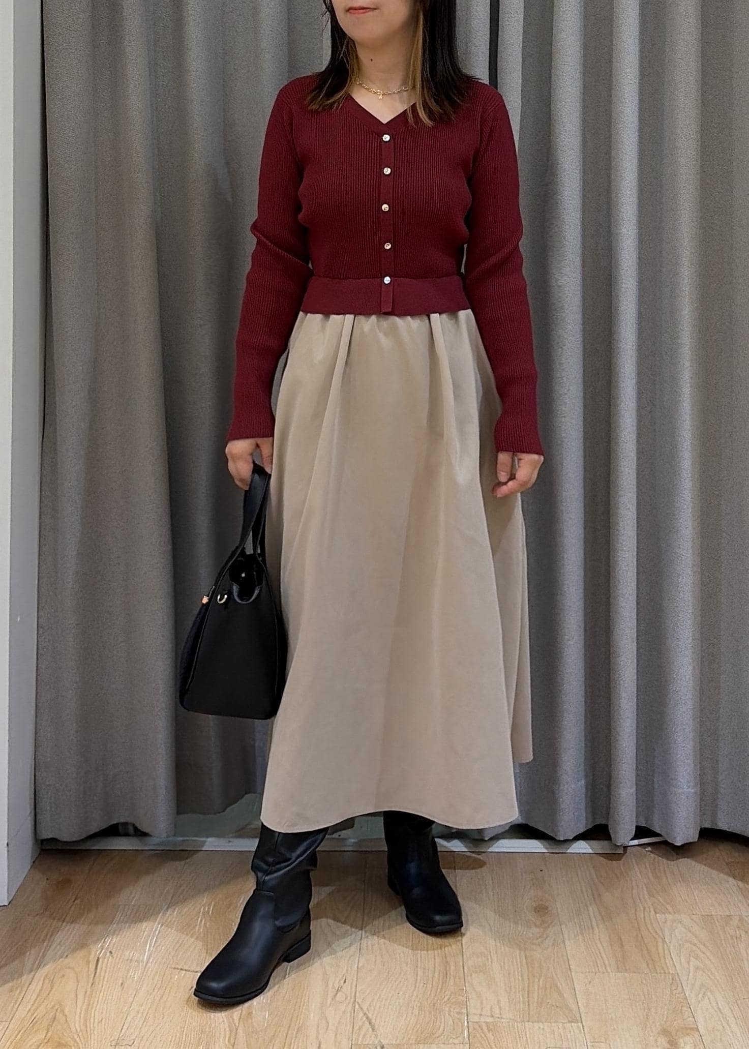 リボン付きなので前でしめたり、たらしたりと1枚で雰囲気が変わるので、幅広いコーデに活躍します♩