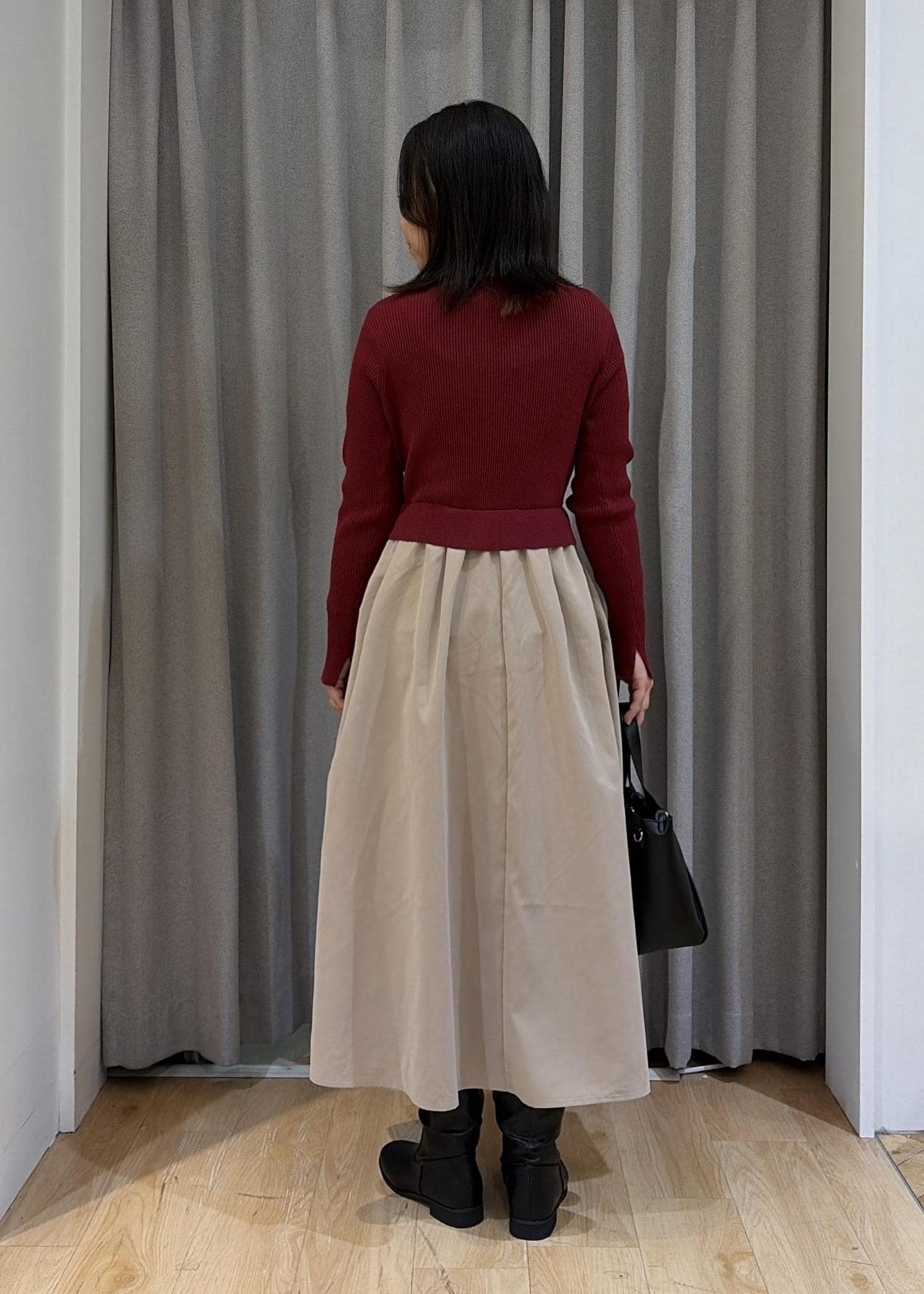 ROPÉ PICNIC【新色追加】メタル釦ドッキングワンピースワイン / S¥7,491レビュー上半身はリブ素材です。スカートがドッキングされており、ハイウエスト仕様なのでスタイルアップがかないます。丈感はふくらはぎほど、長すぎず短すぎないのがポイント!