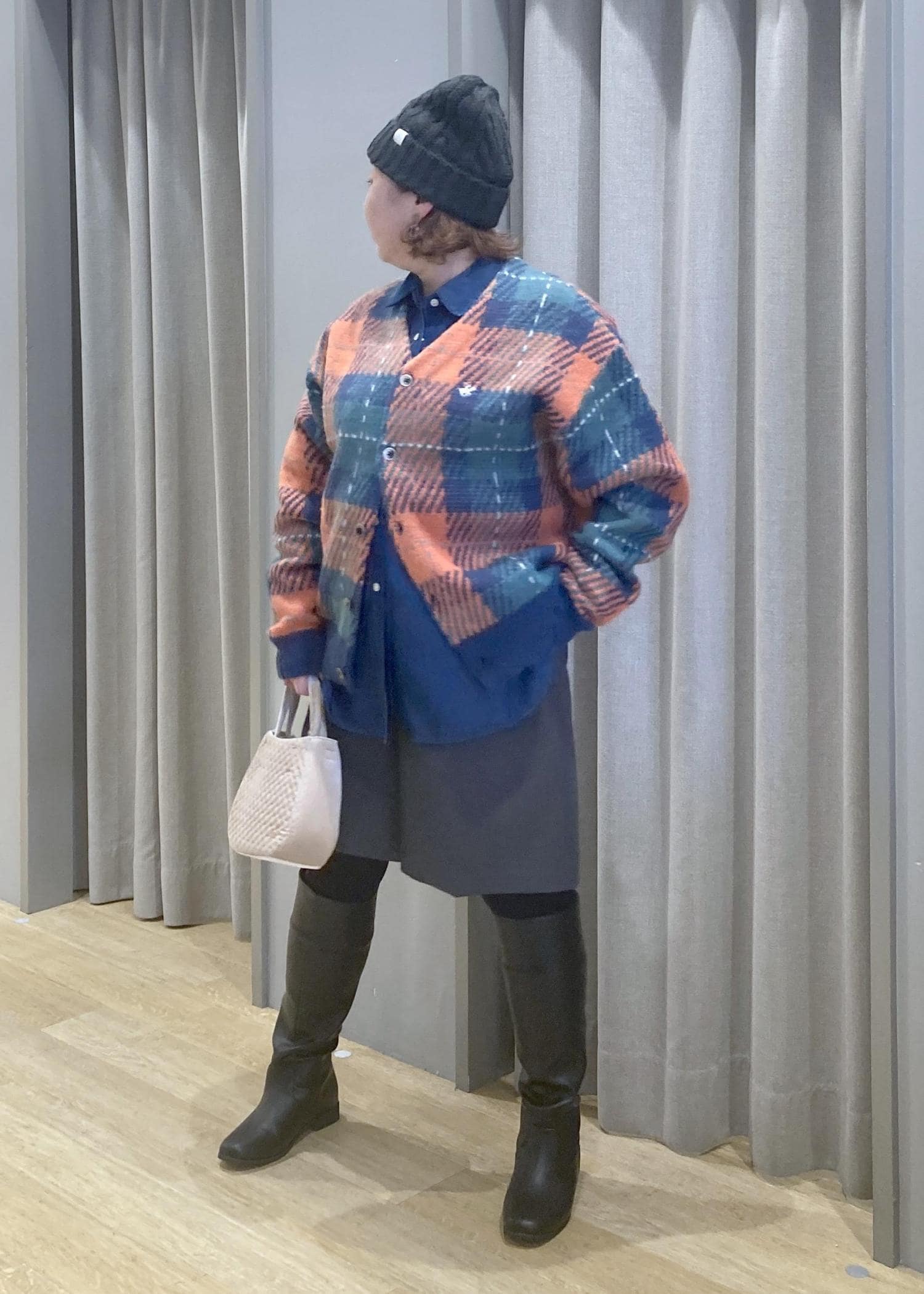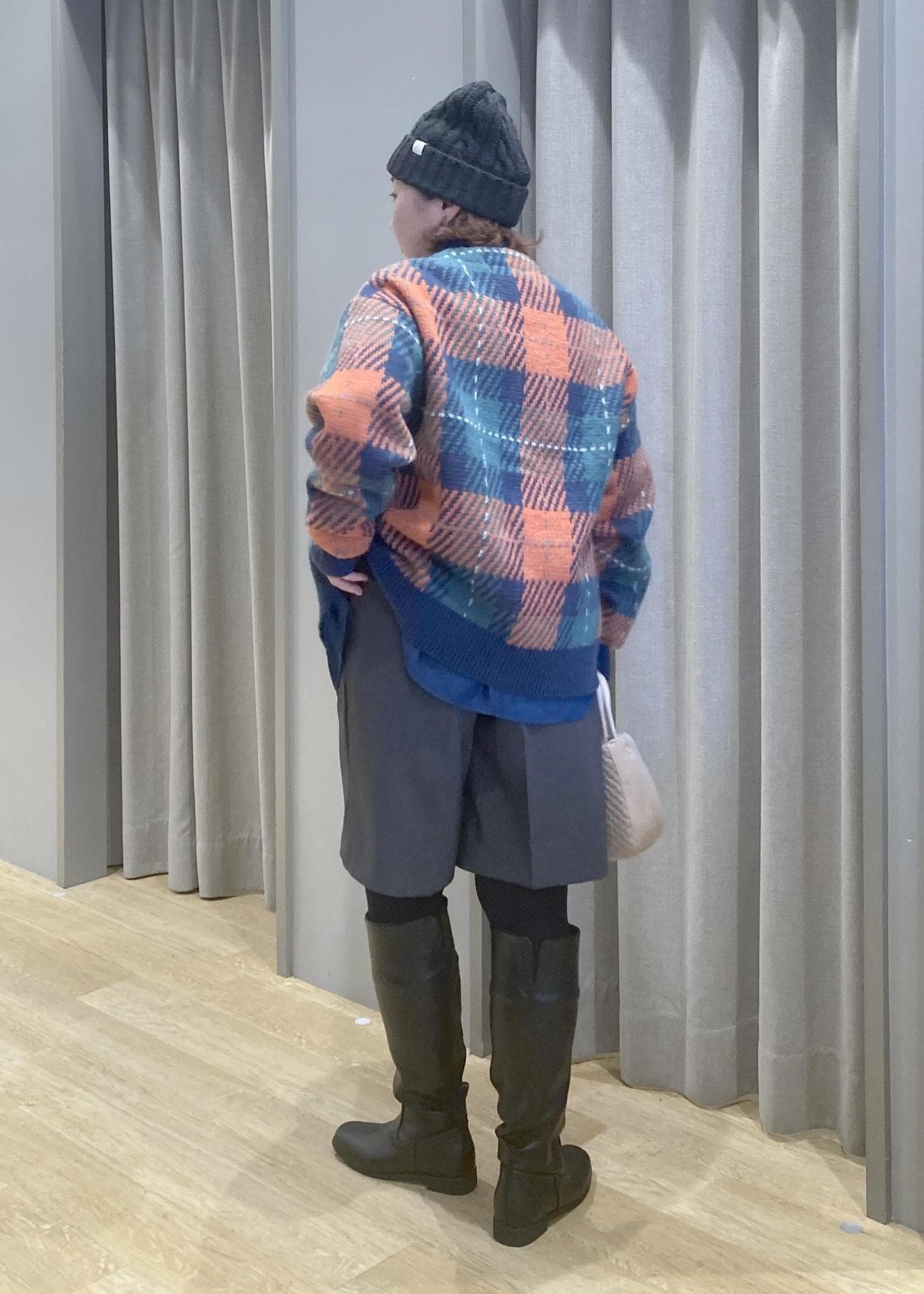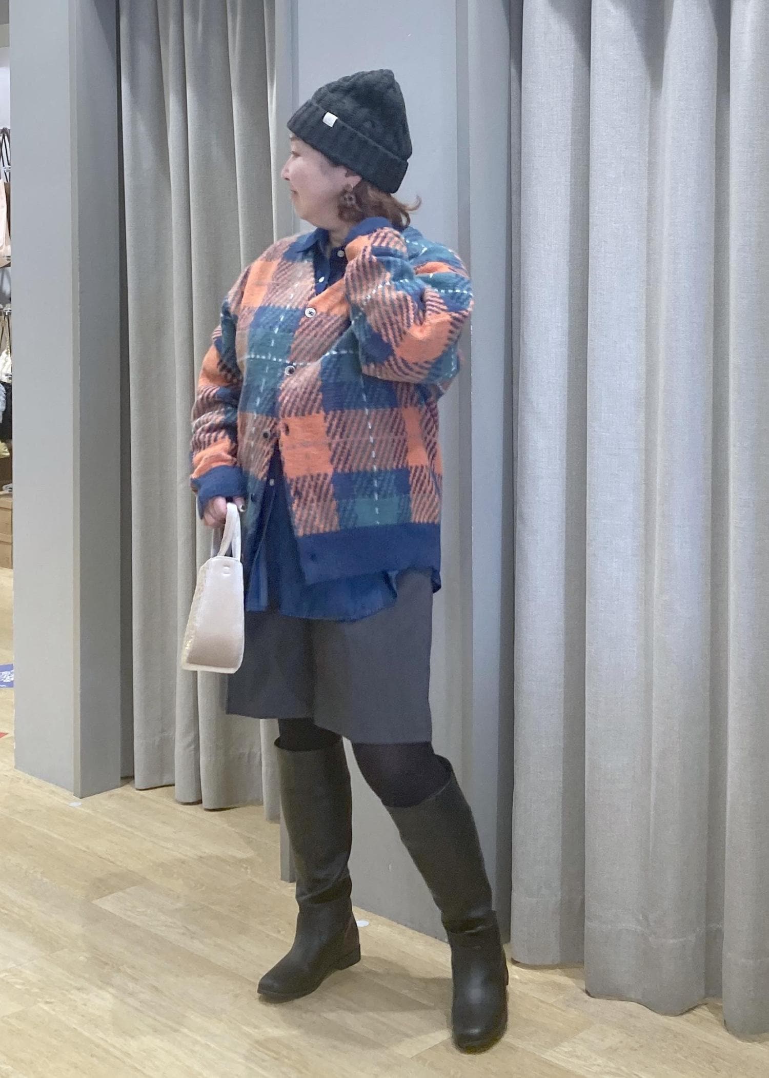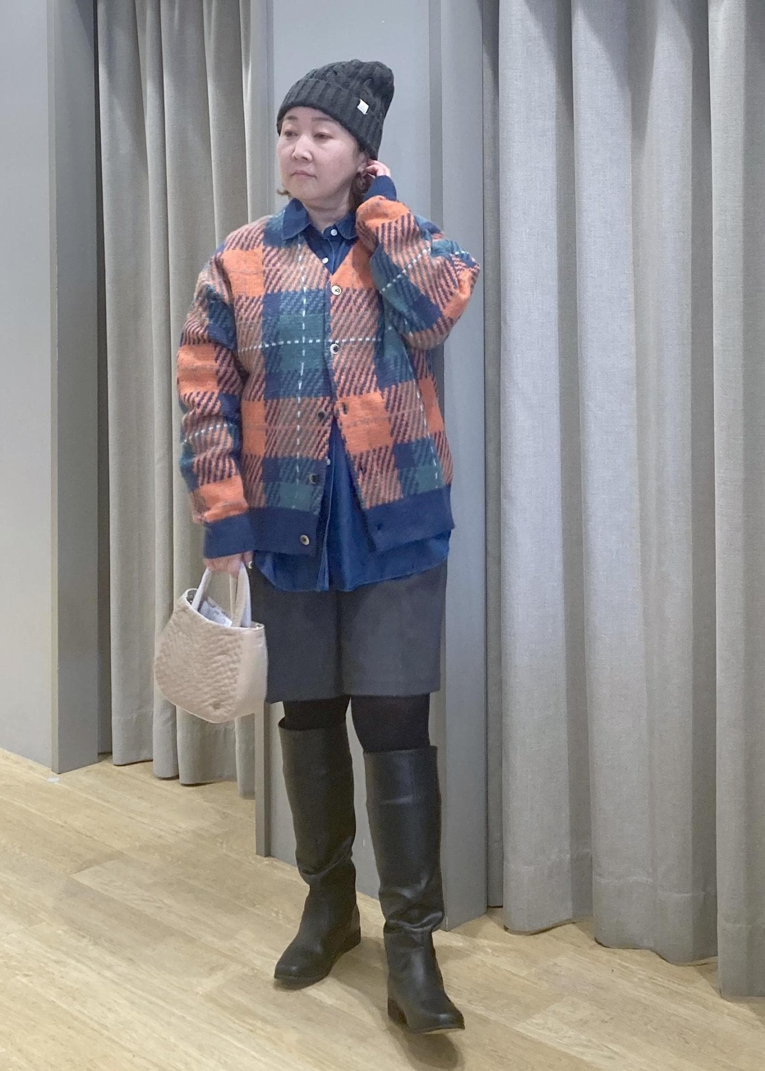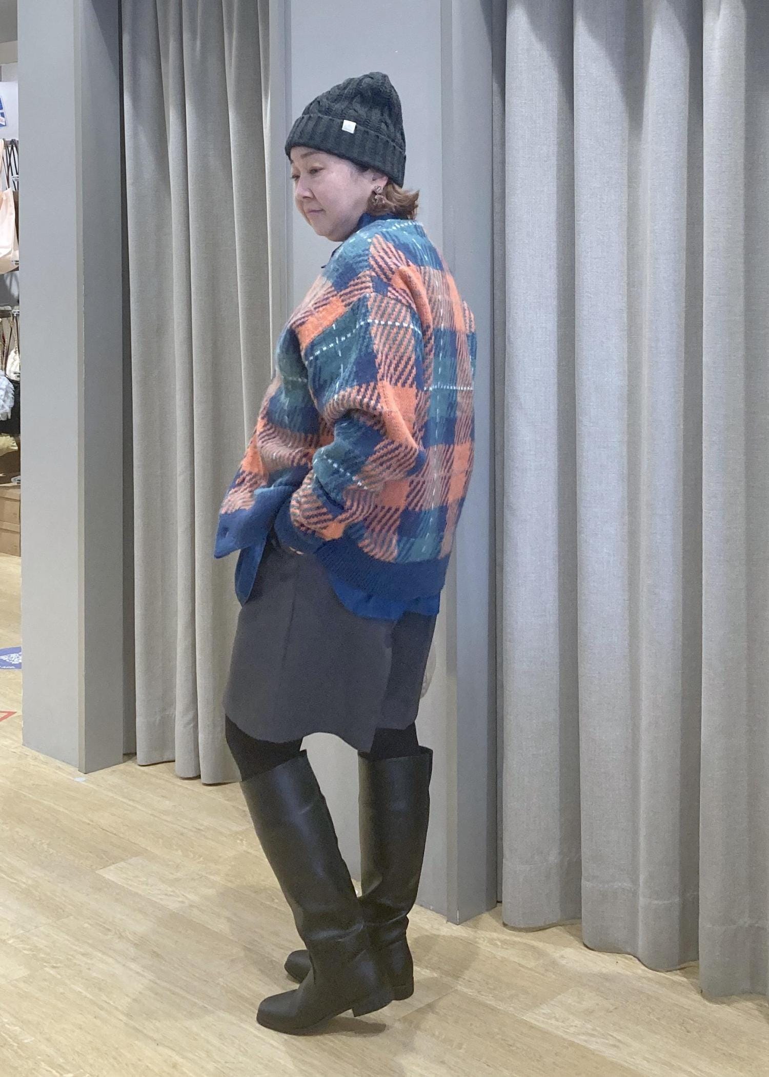 ロングブーツでしっかり膝元をカバーして安心スタイリングです