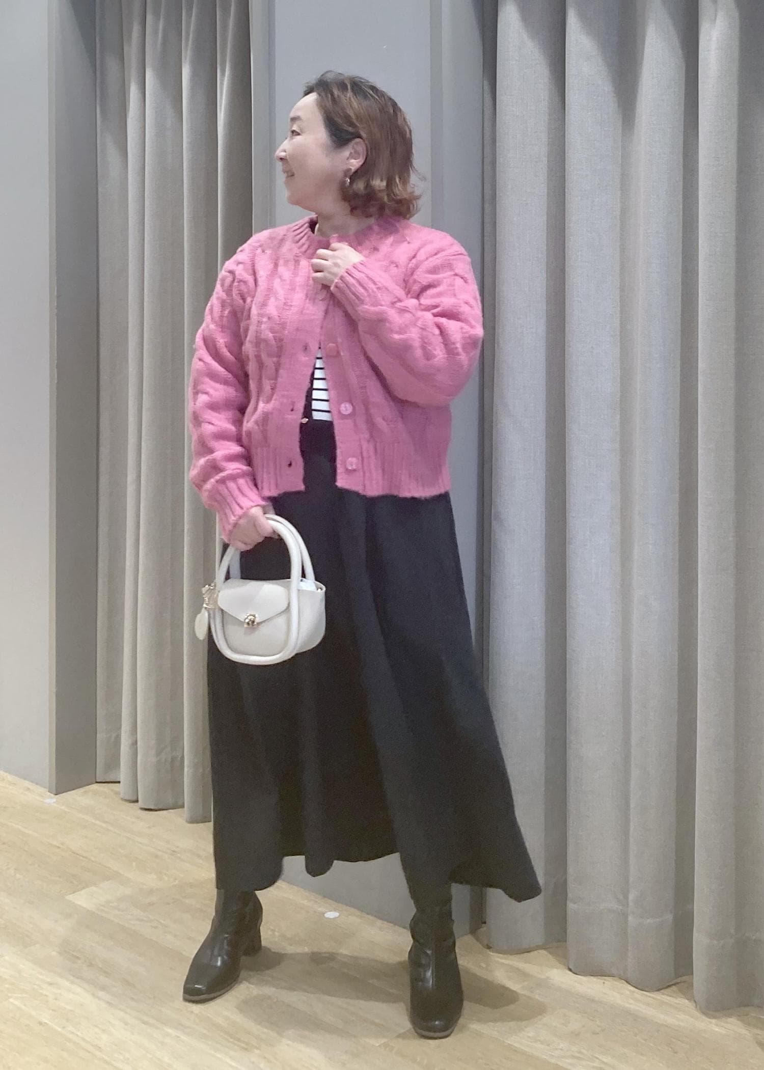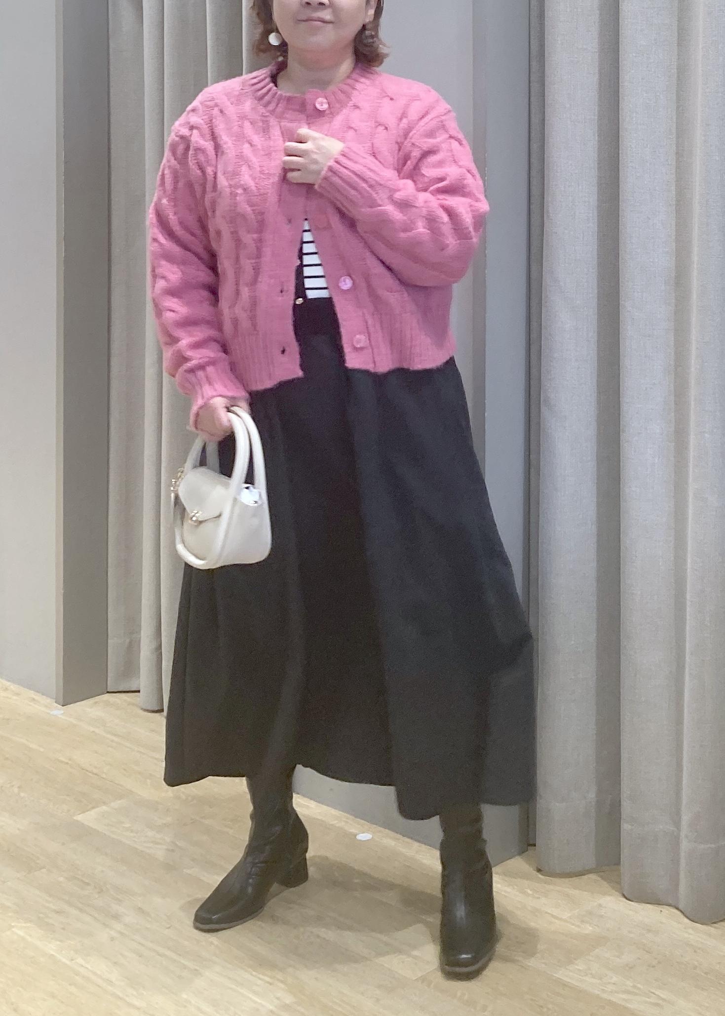 大人も可愛い色は、大好きですが、甘すぎるのも…って方にオススメコーデです。