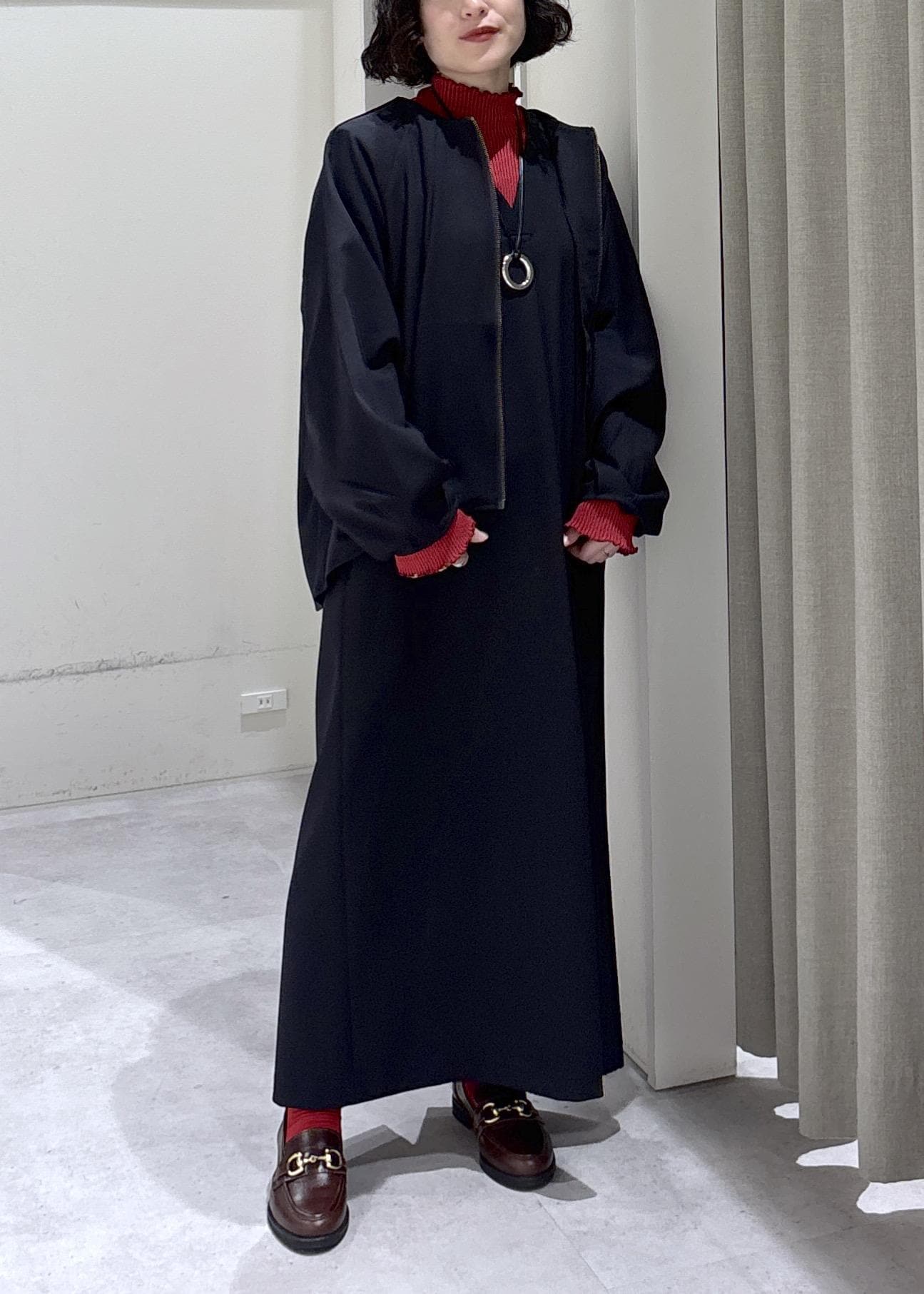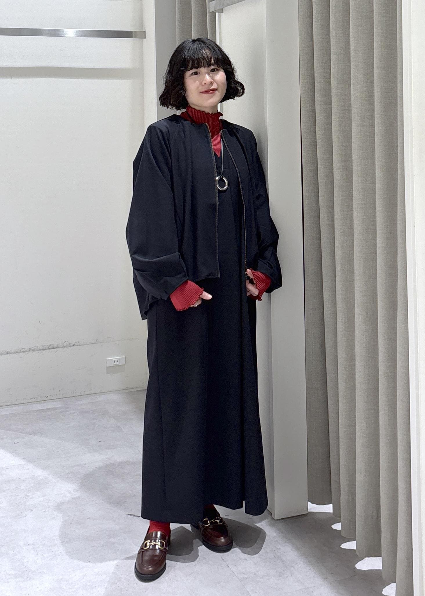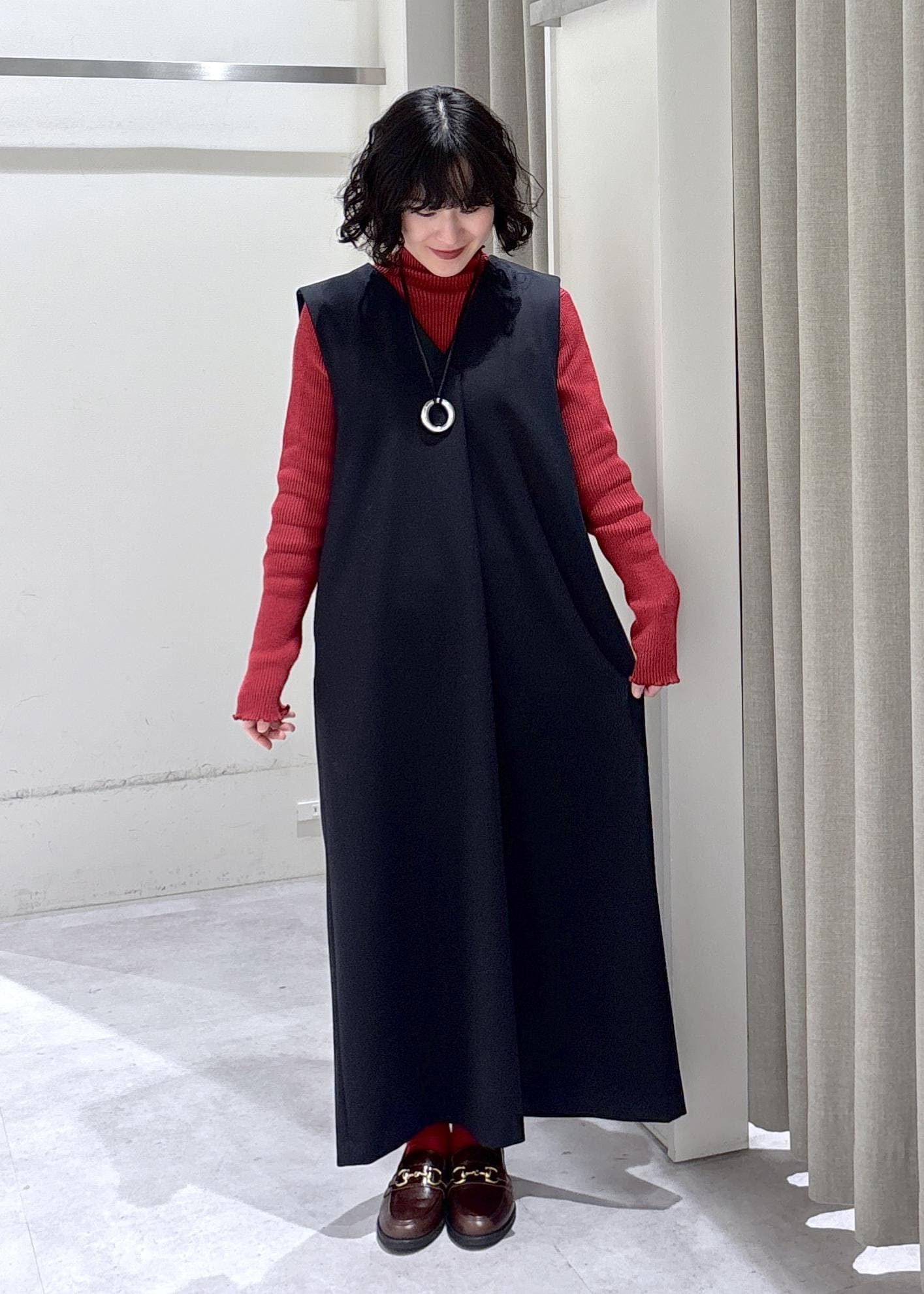 綺麗めワンピースですが、中に着る服でいろんな表情に変わりますよ! -