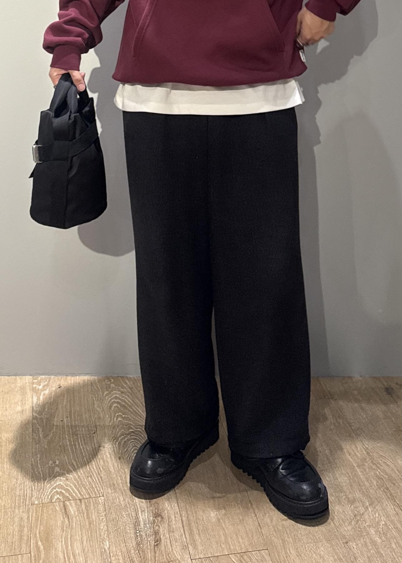 アウトレットJUNRED【セットアップ対応】テクスチャードファブリックインタックワイドパンツグレー / M¥3,960レビューフェザー感のあるストライプにプラスして光沢のあるラメ糸を織り込んだ