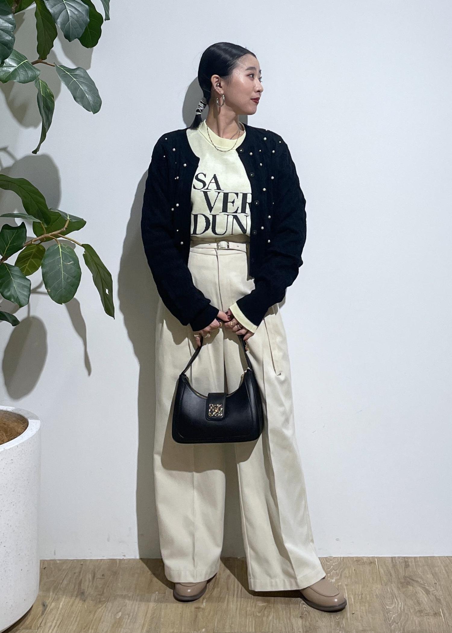 秋から春まで着用可能!冬にはこの上からアウターを着用して更に暖かコーデ。