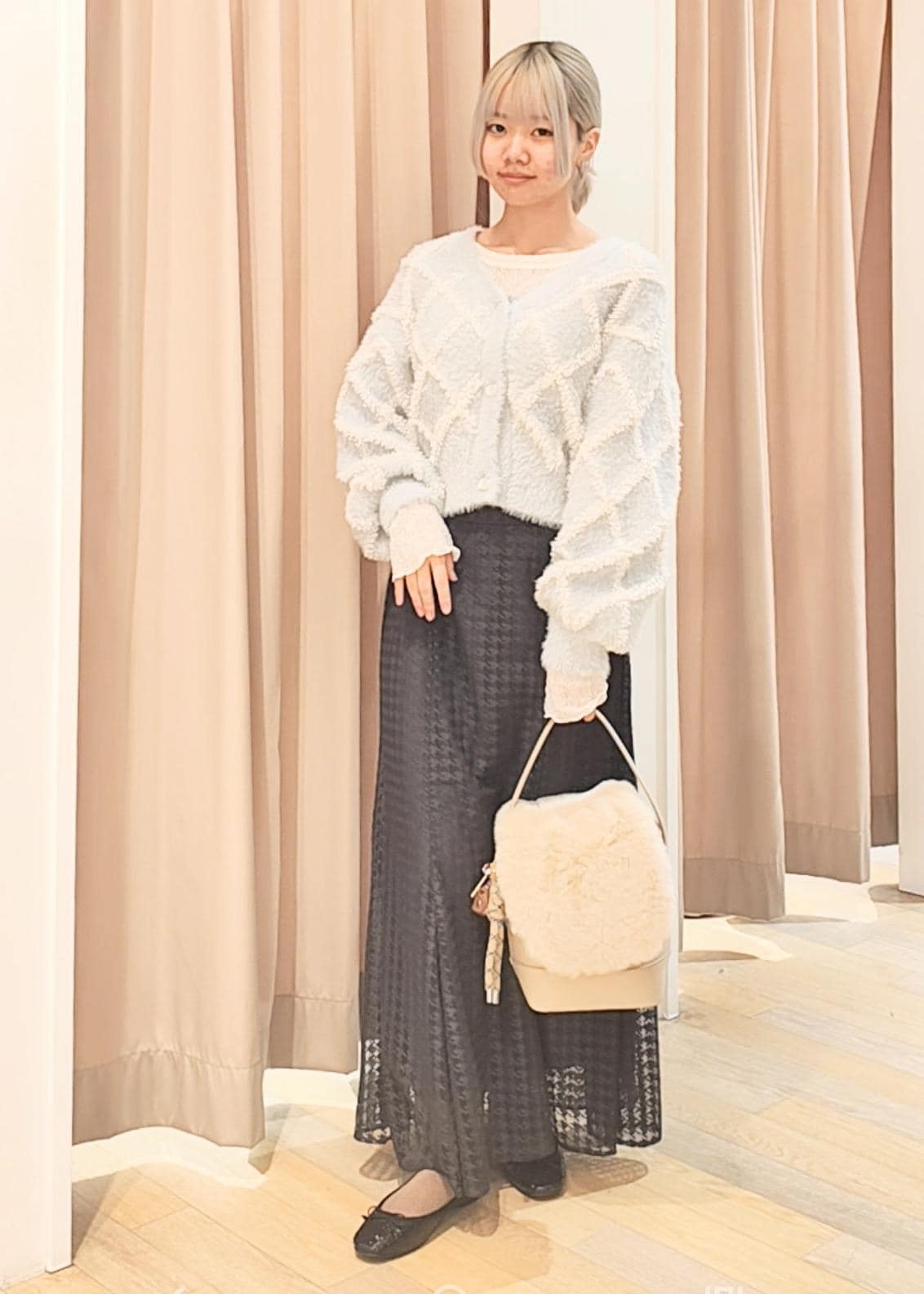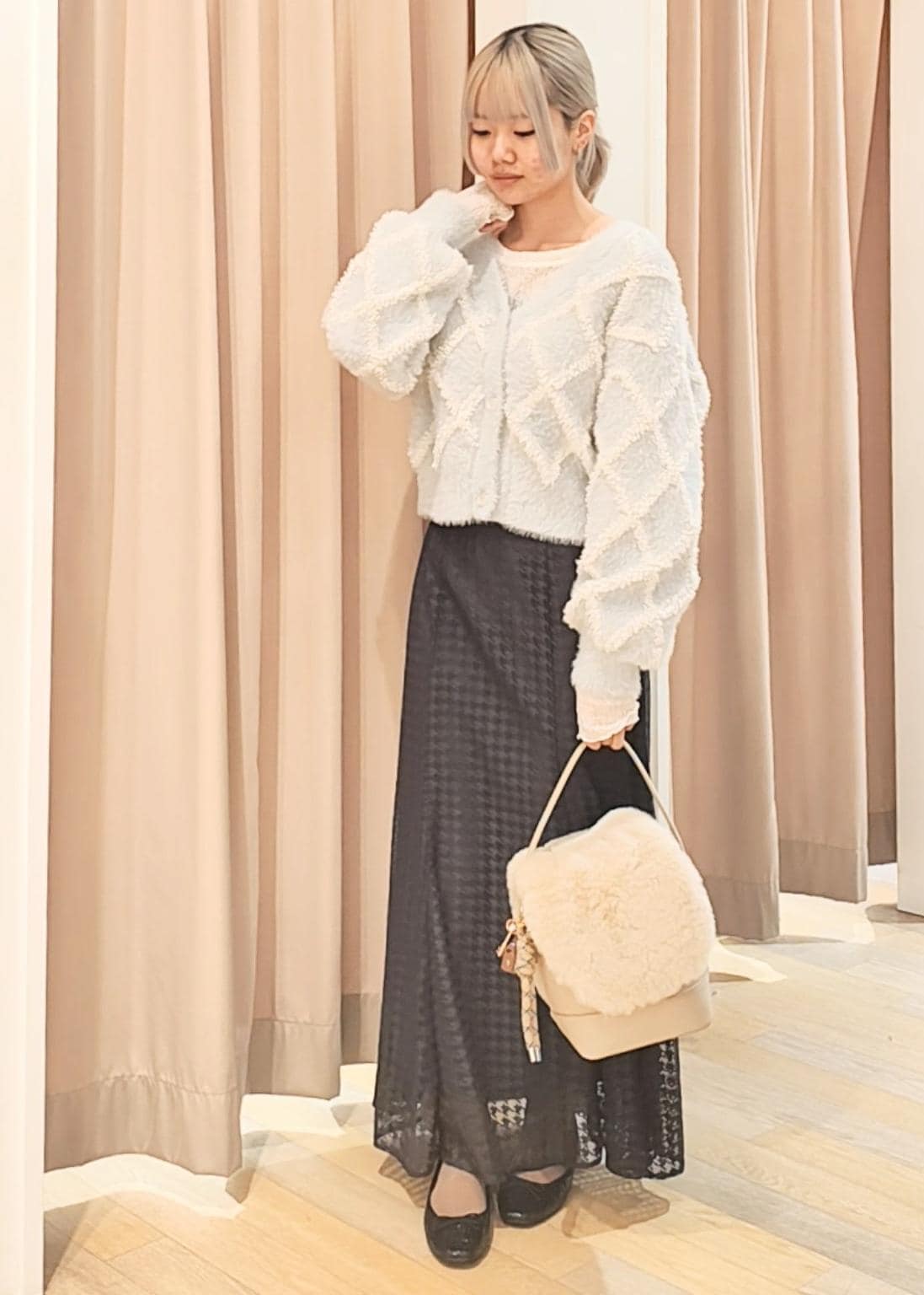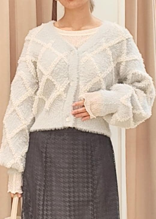 もこもこのループフェザーカーディガンに