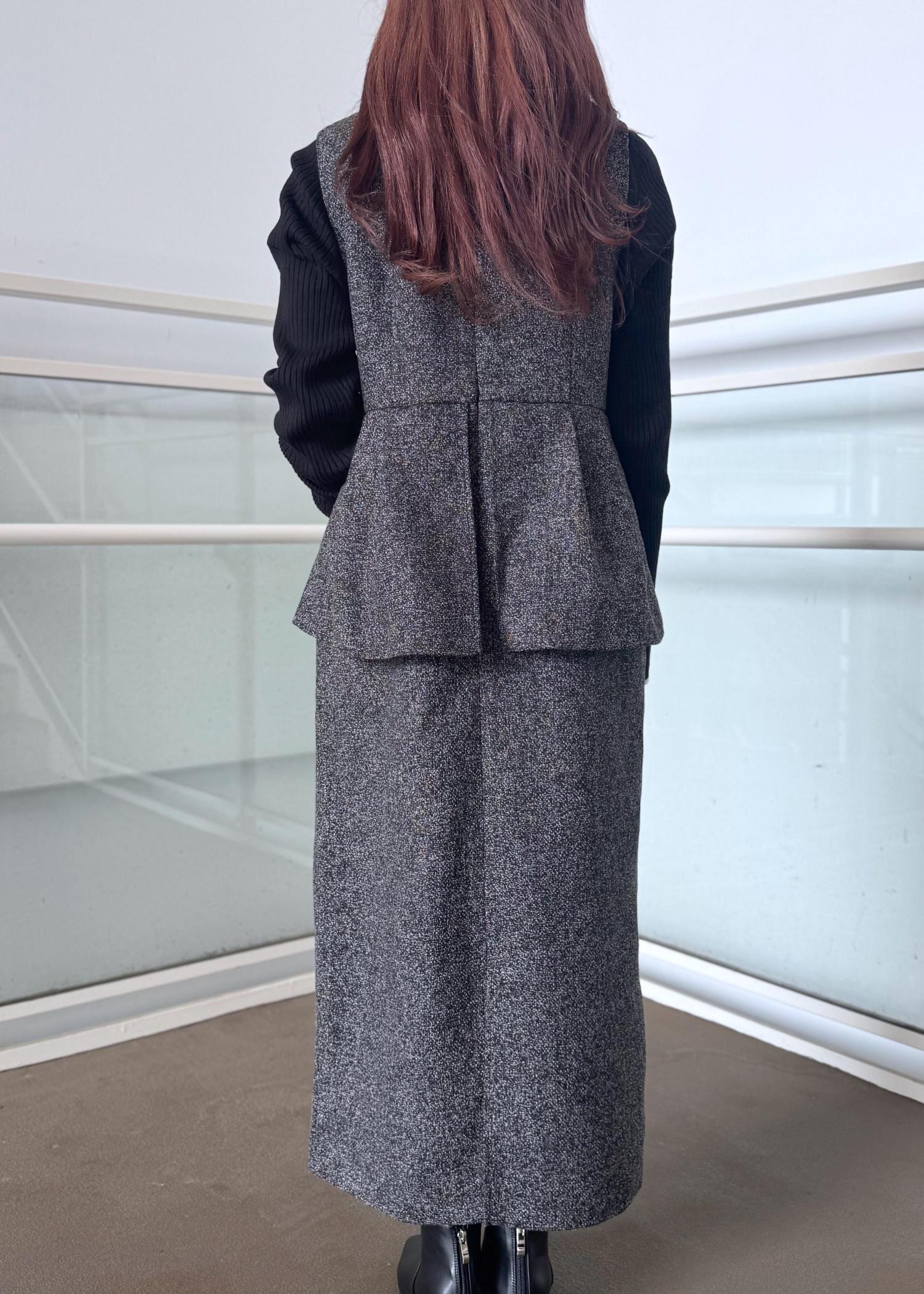 ペプラムジャンパースカートのモノトーンコーデ