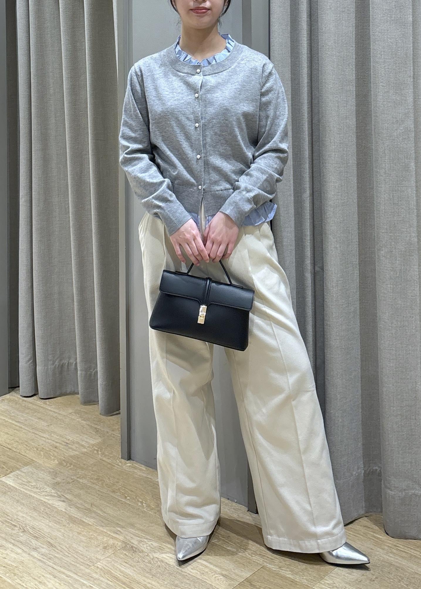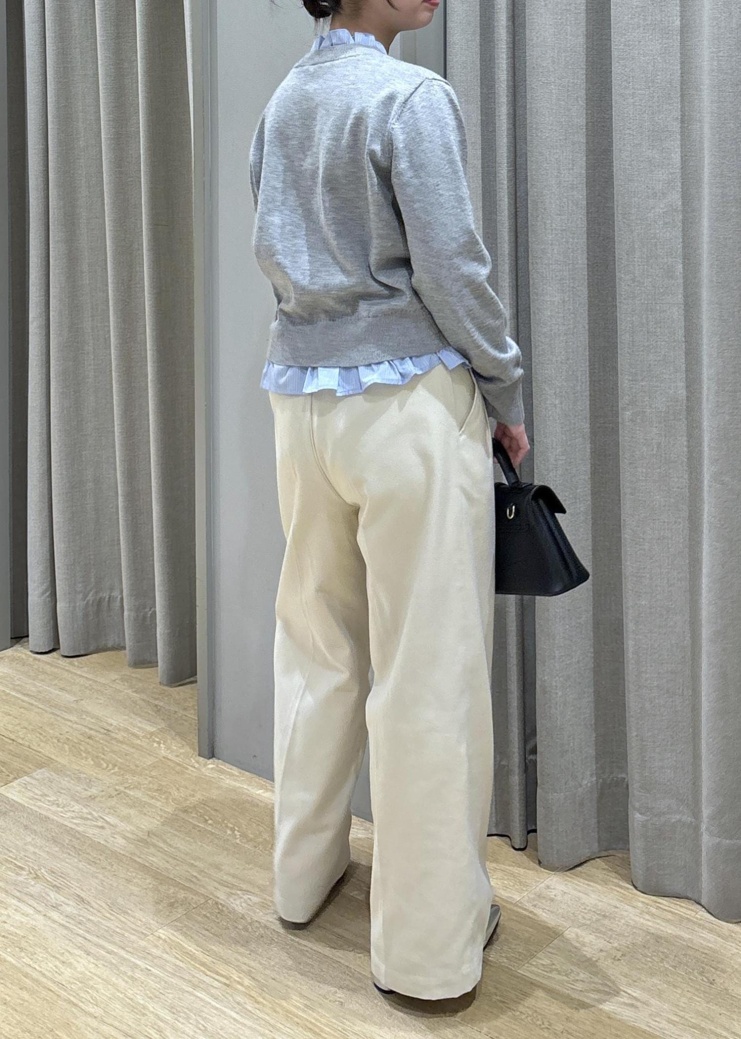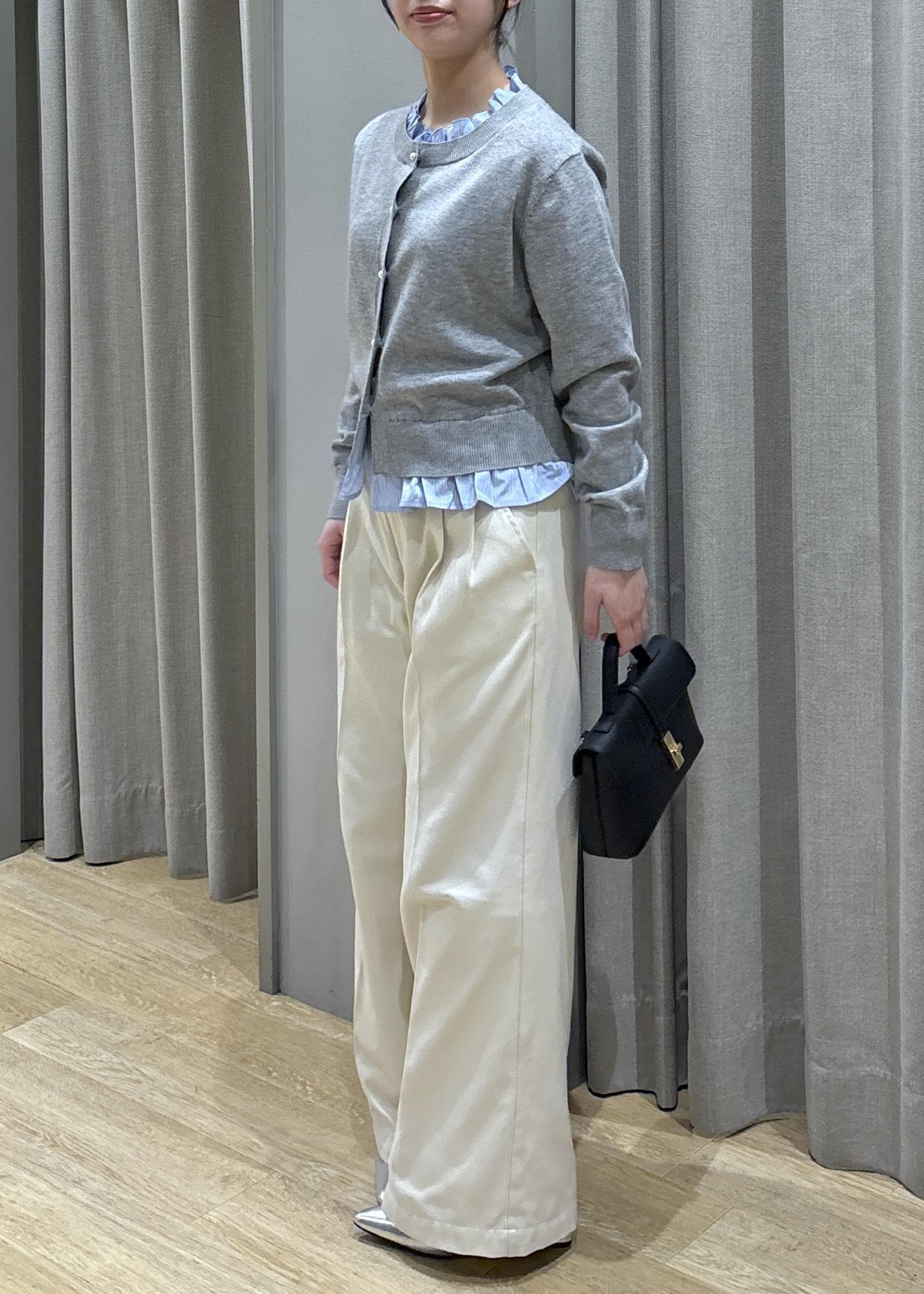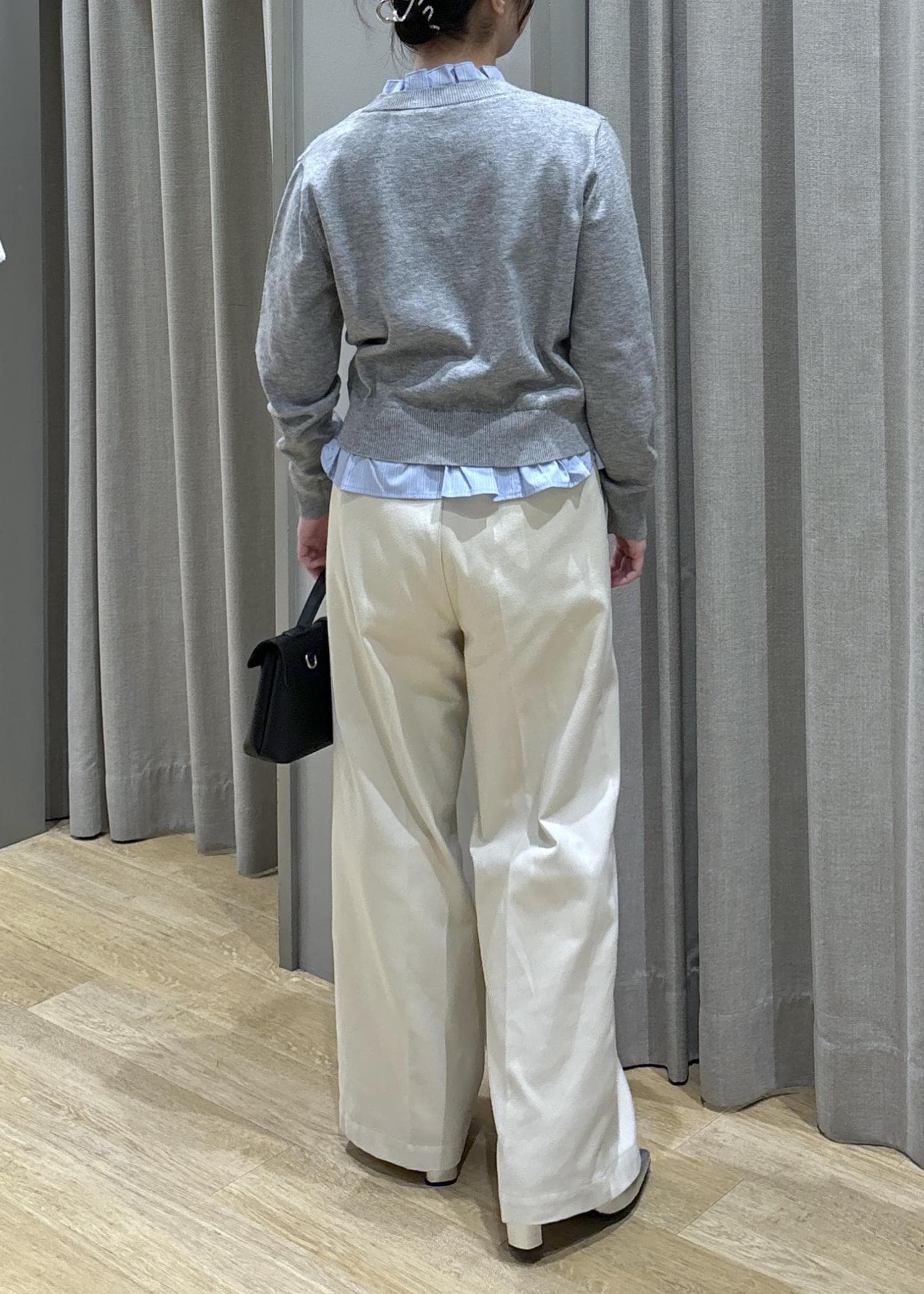 柔らかいニットにフリル襟シャツがドッキングしたようなデザインのカーディガントップス!