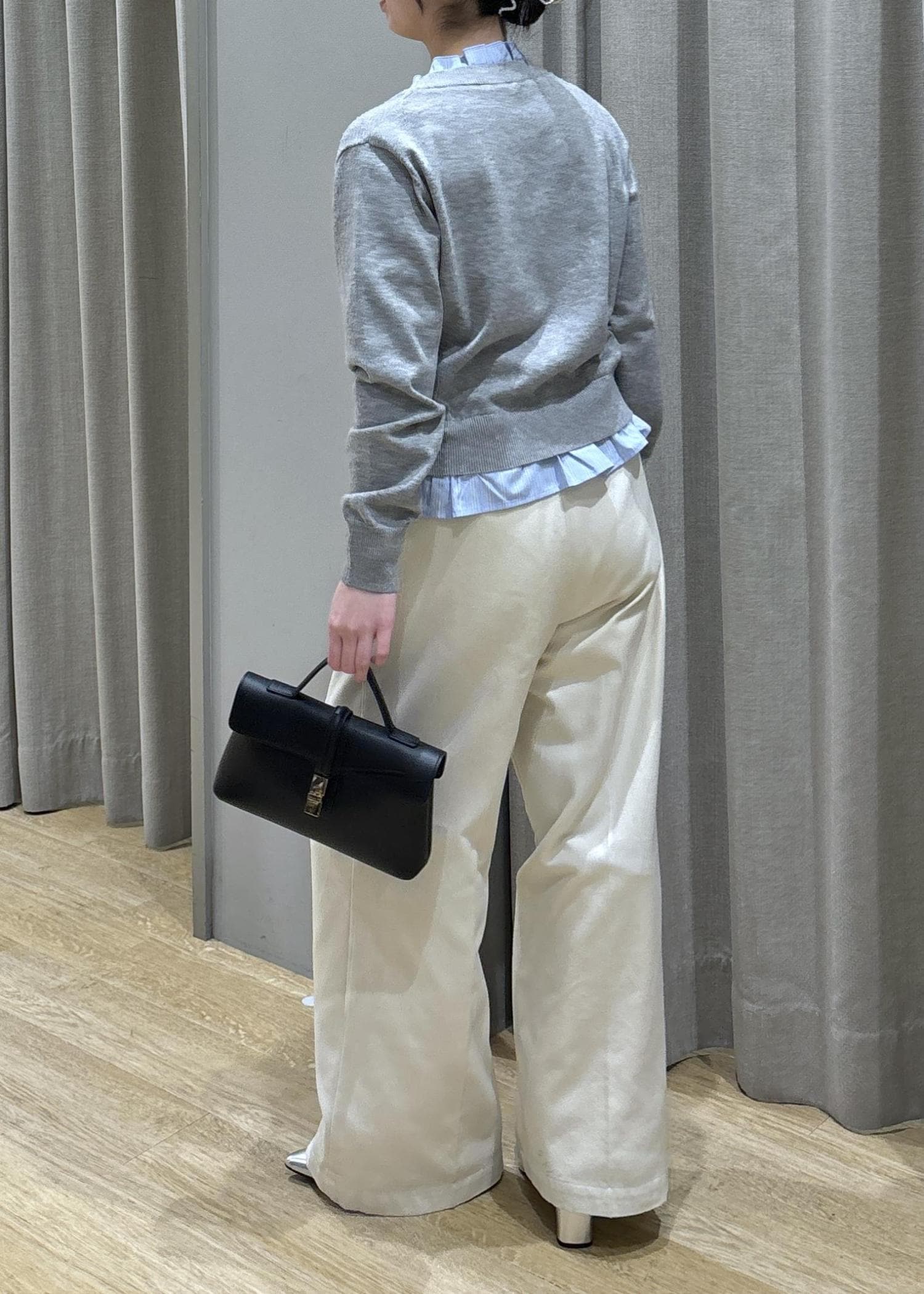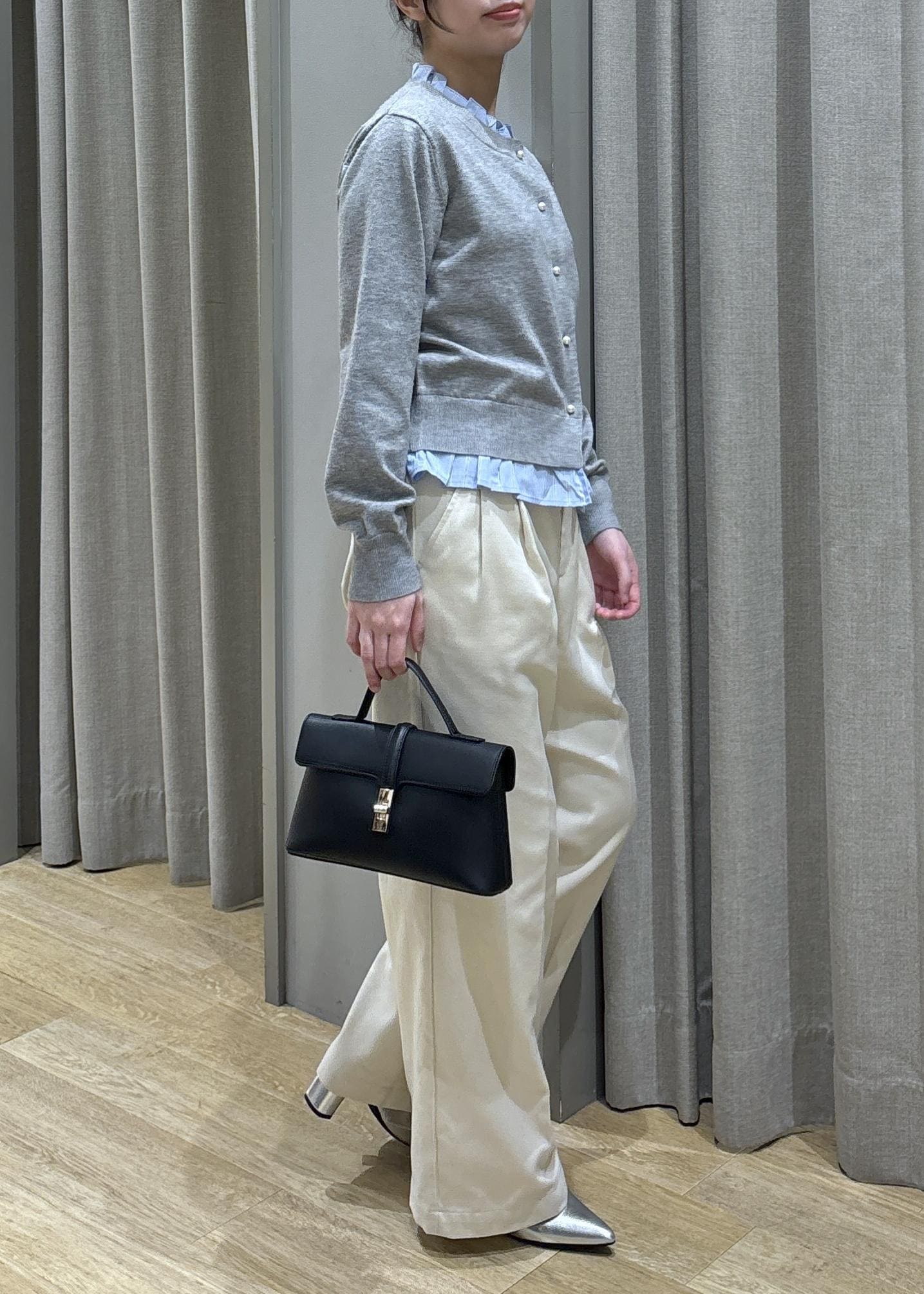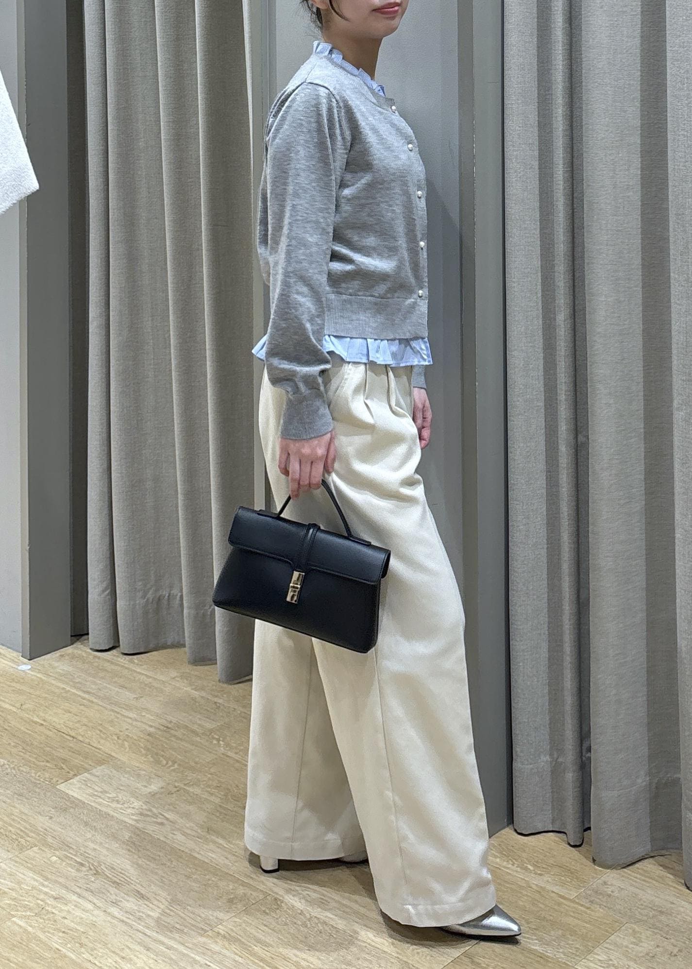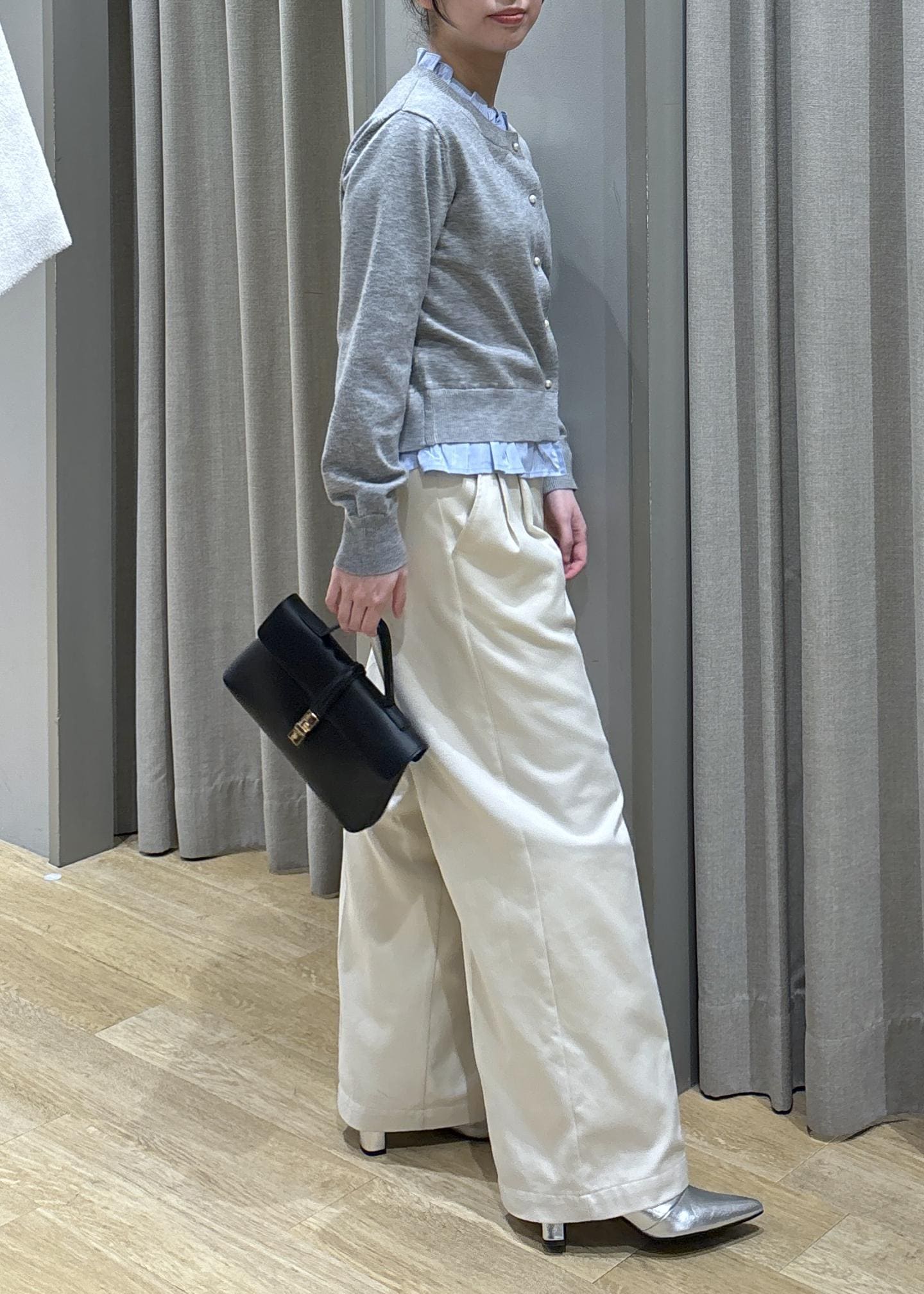起毛ウールライク版ベルトディテールタックワイドパンツ