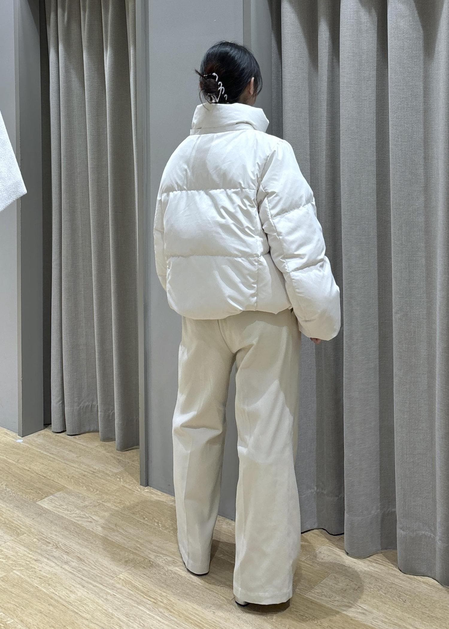 VIS【アウター総選挙3位】フード取り外し可能軽量ダウンブルゾン/2WAY・撥水加工オフホワイト / M¥18,480レビュー身長158cm、Mサイズ着用。