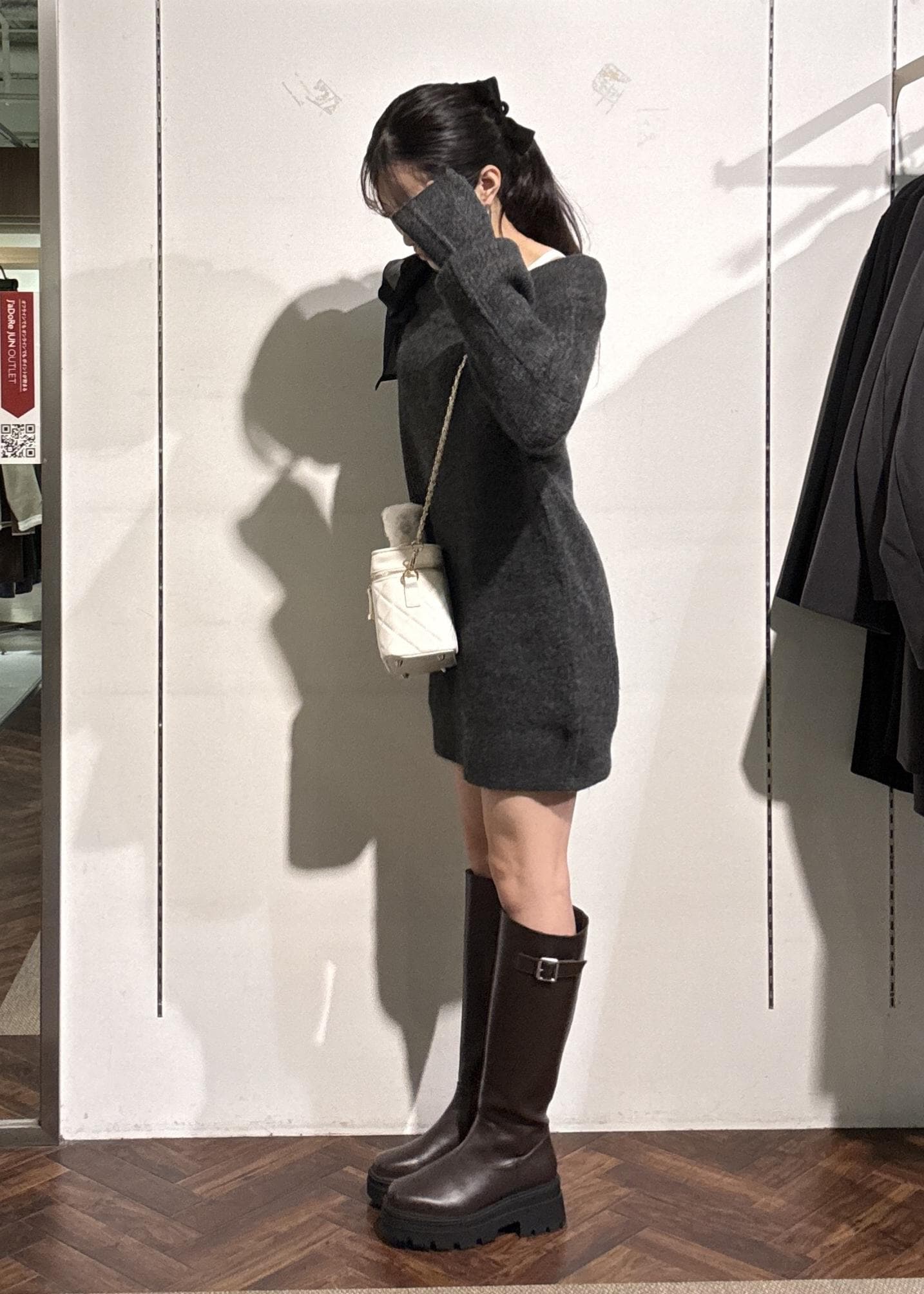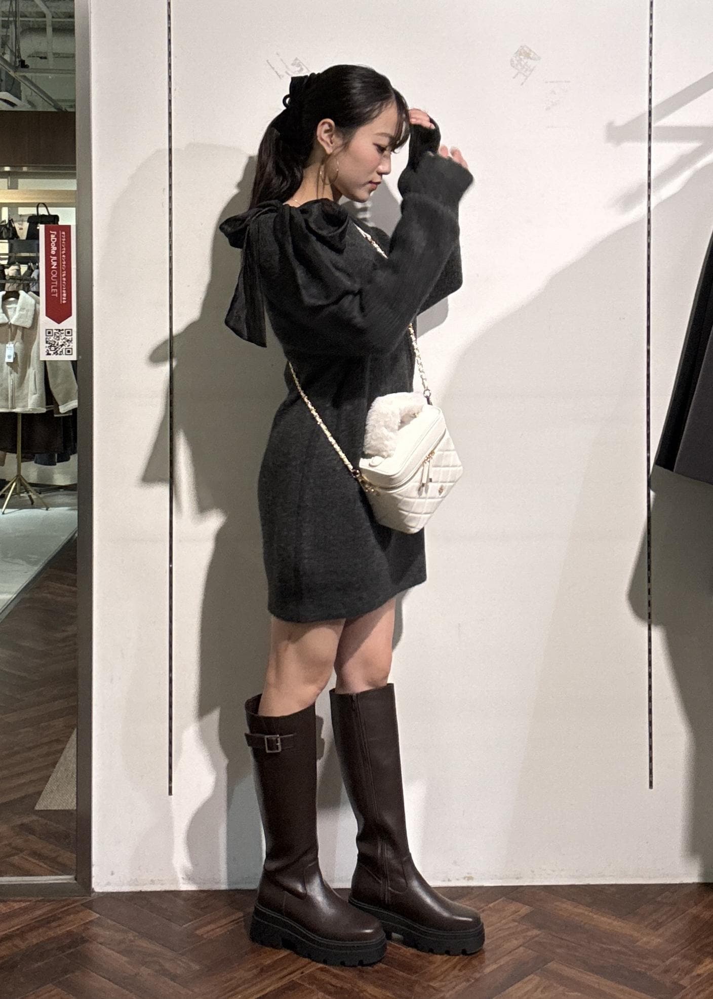 ふわっとした素材感でぴったりしていないのでラインも拾いにくいです!リボンは取り外し可能なので気分に合わせてッ!