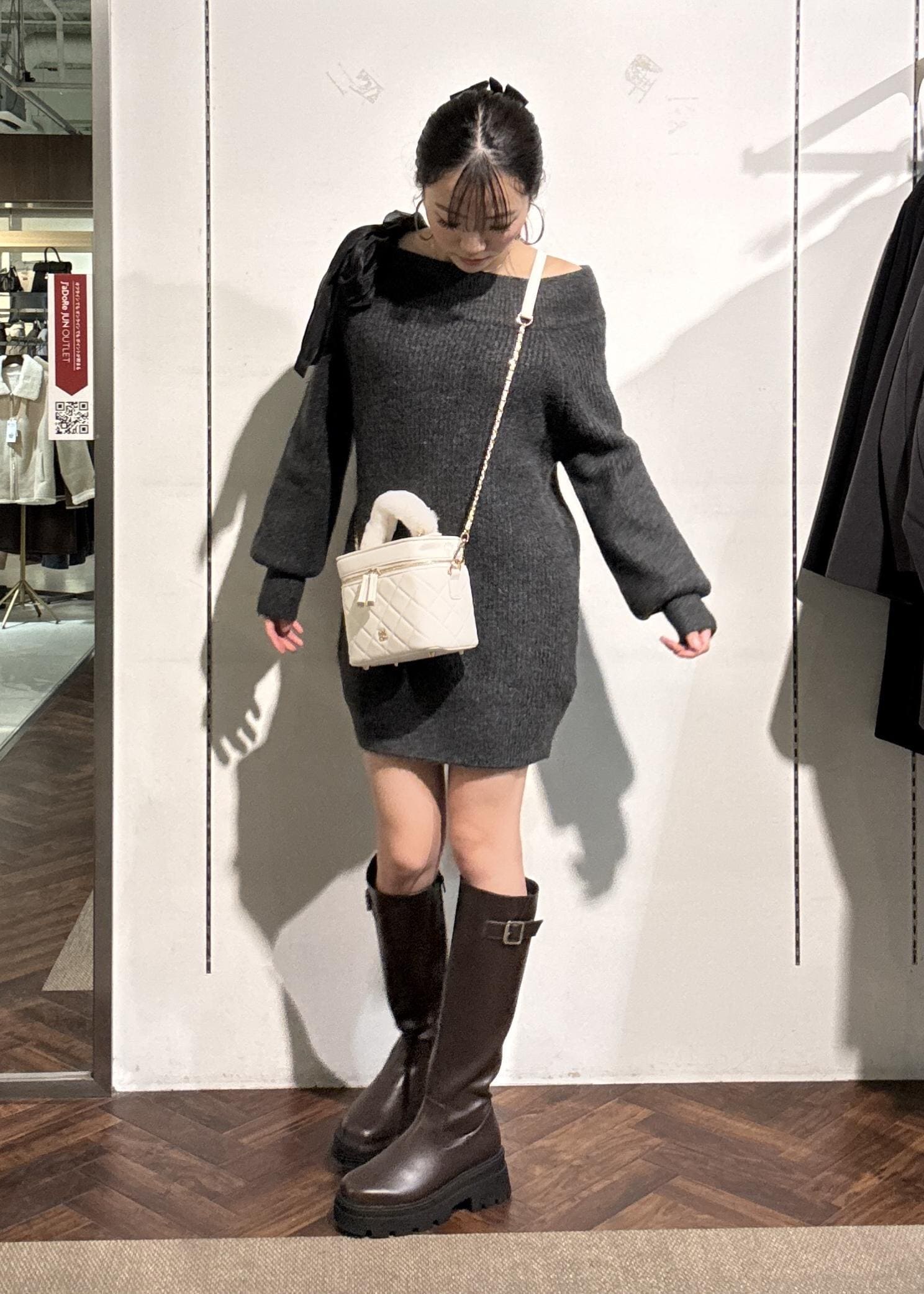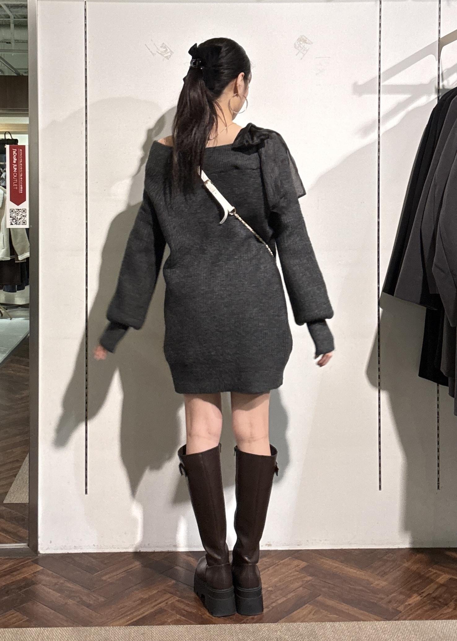 ワンショルダーやオフショルダーにもなるミニ丈ニットワンピースです! -