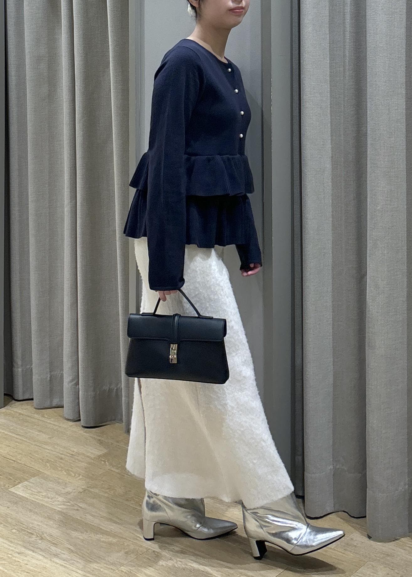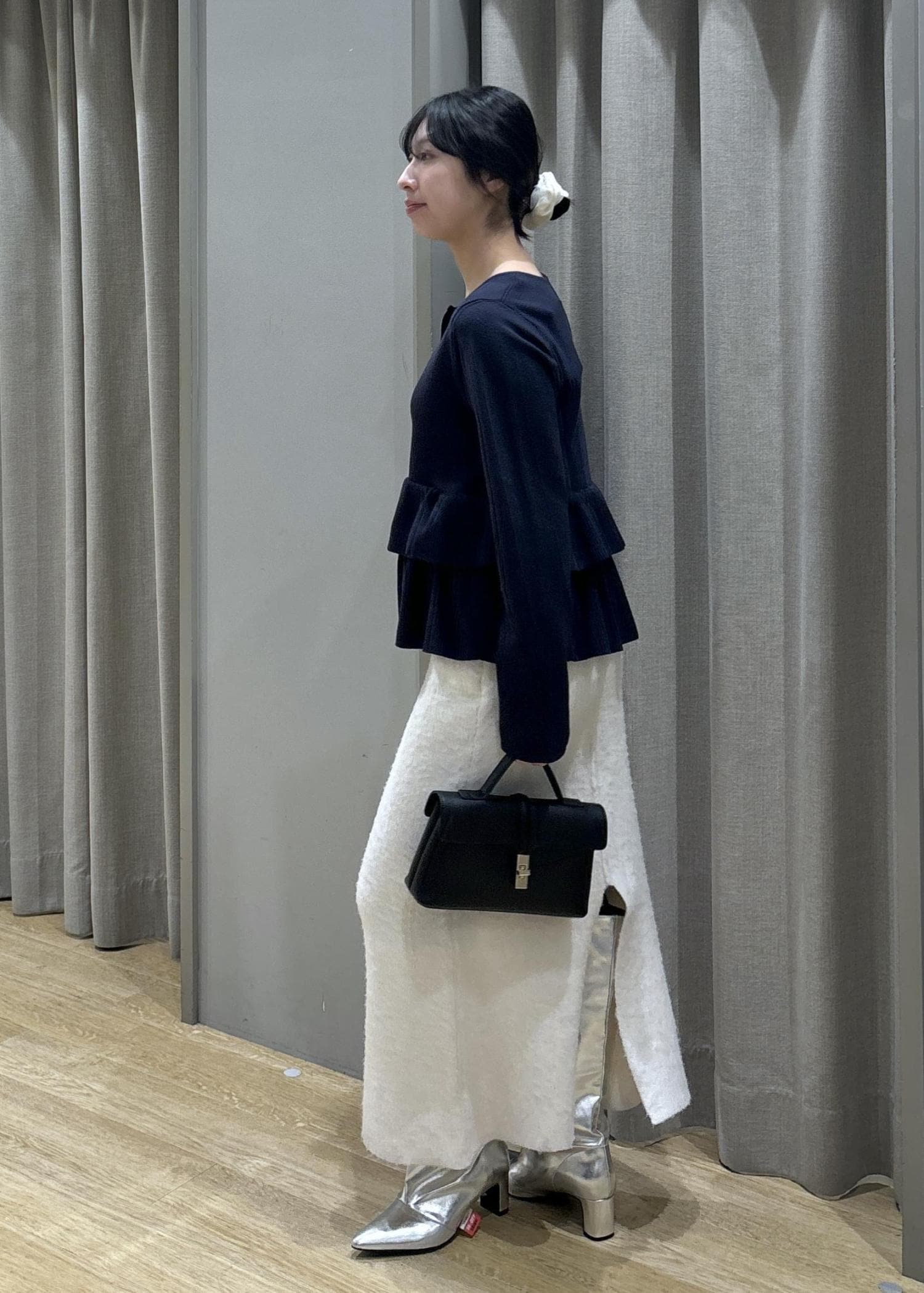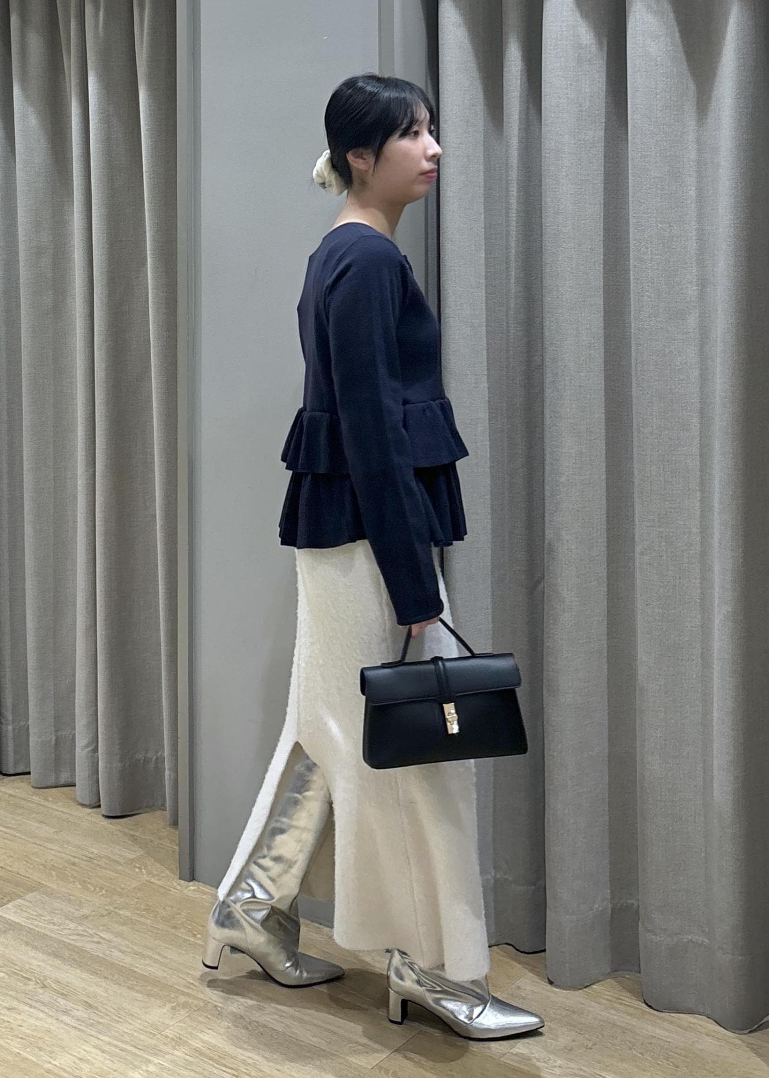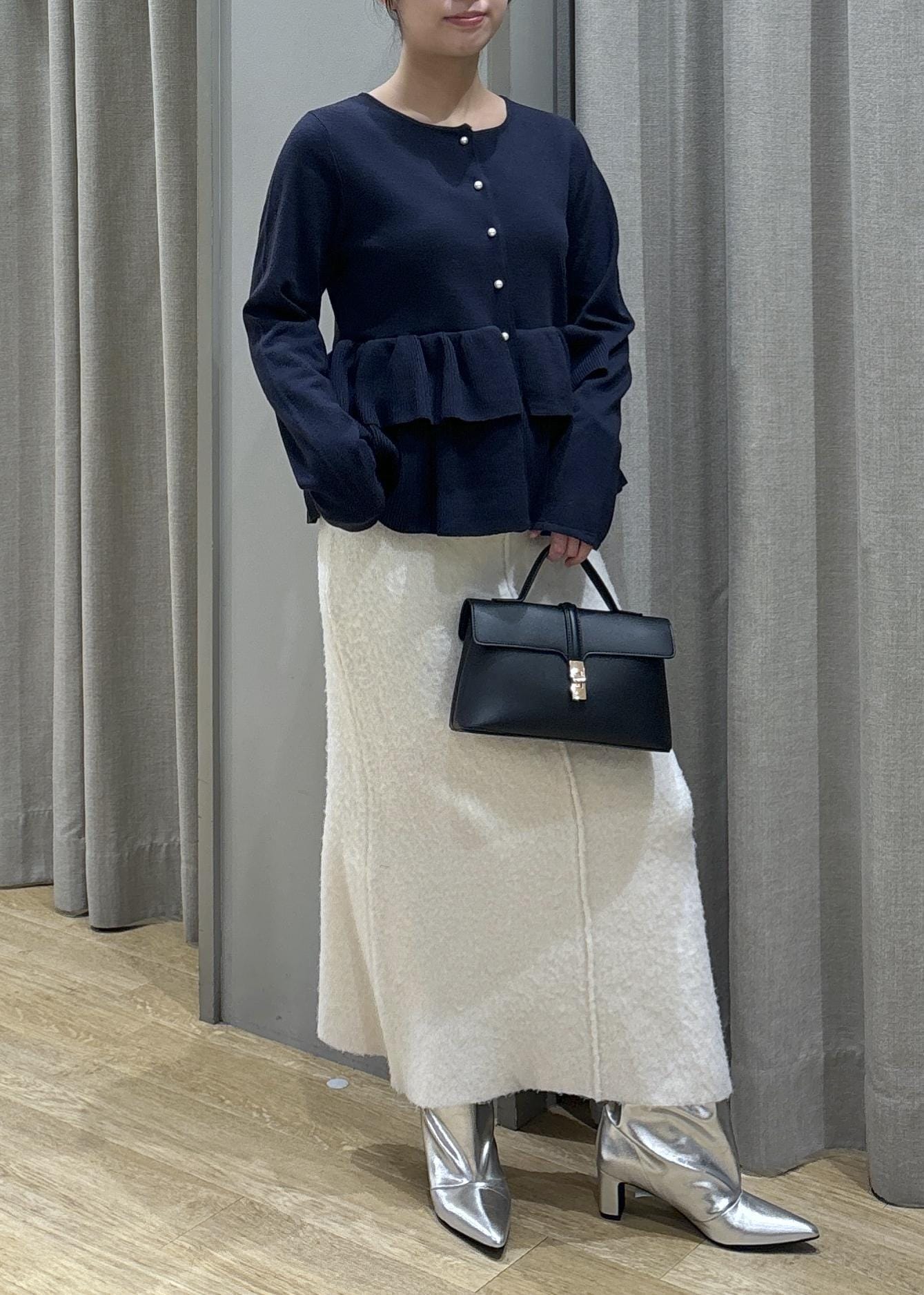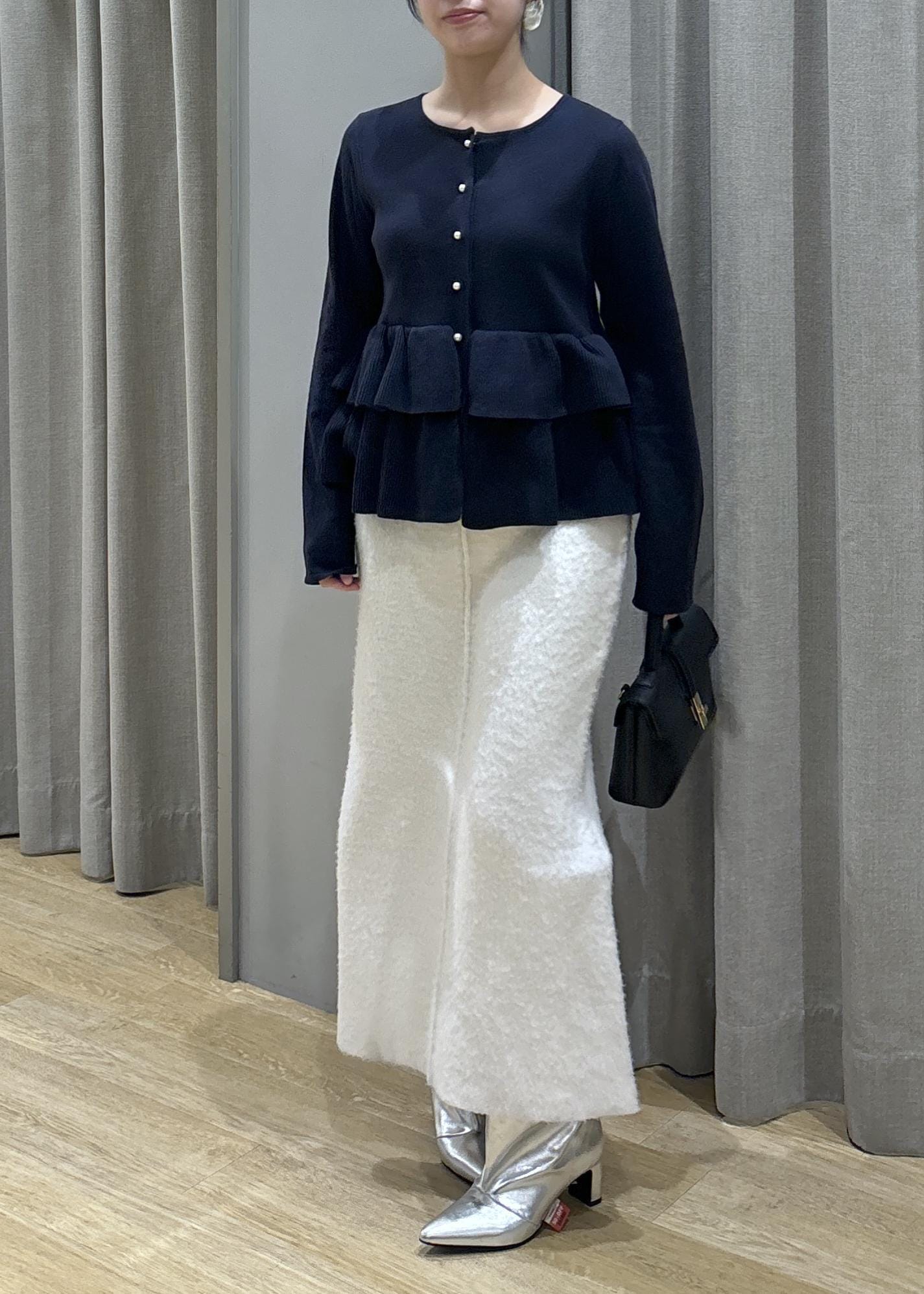 VISティアードペプラムニットカーディガンネイビー / F¥6,589レビュー身長158cm、Fサイズ着用。