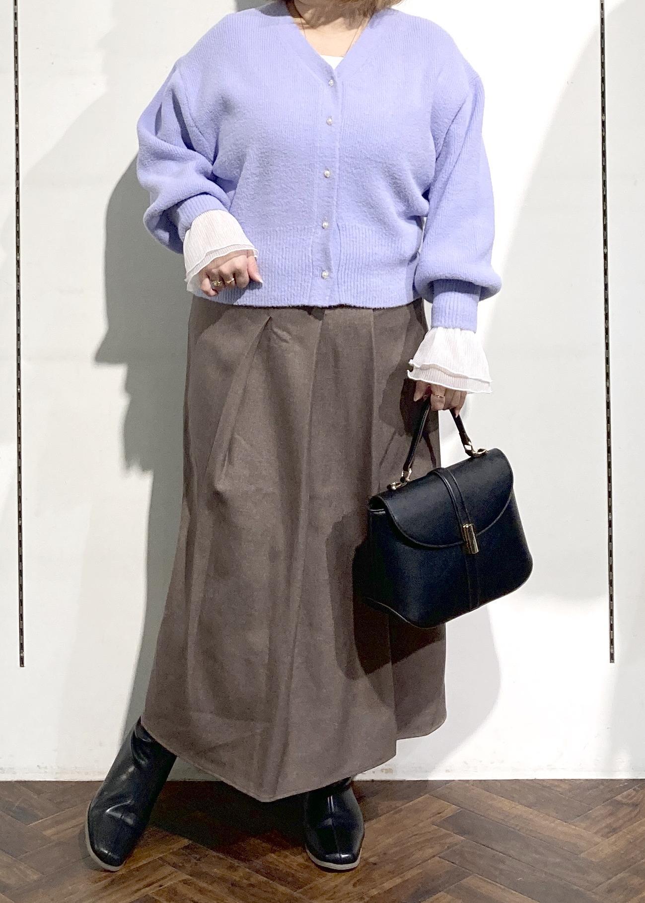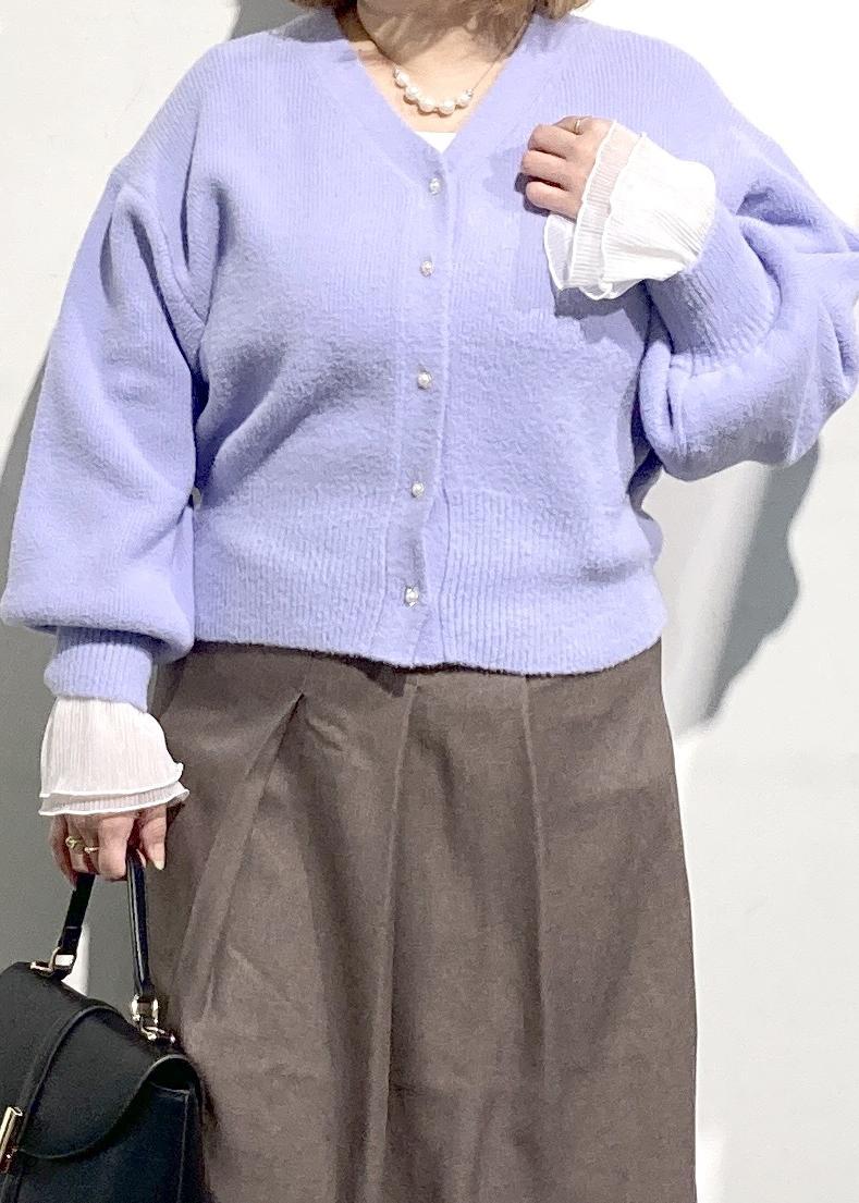 ラベンダーカラーカーディガンコーデ