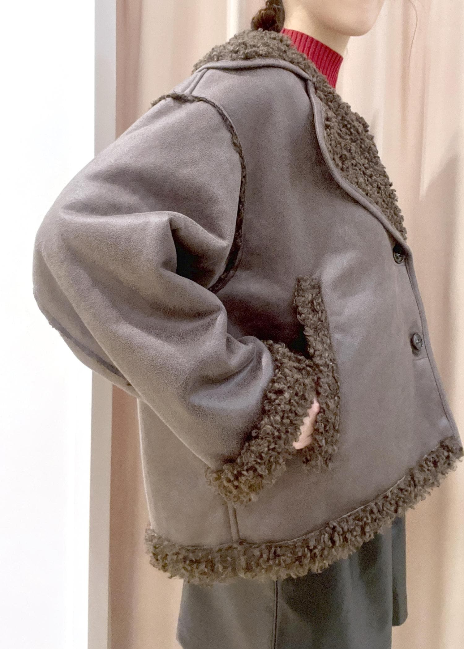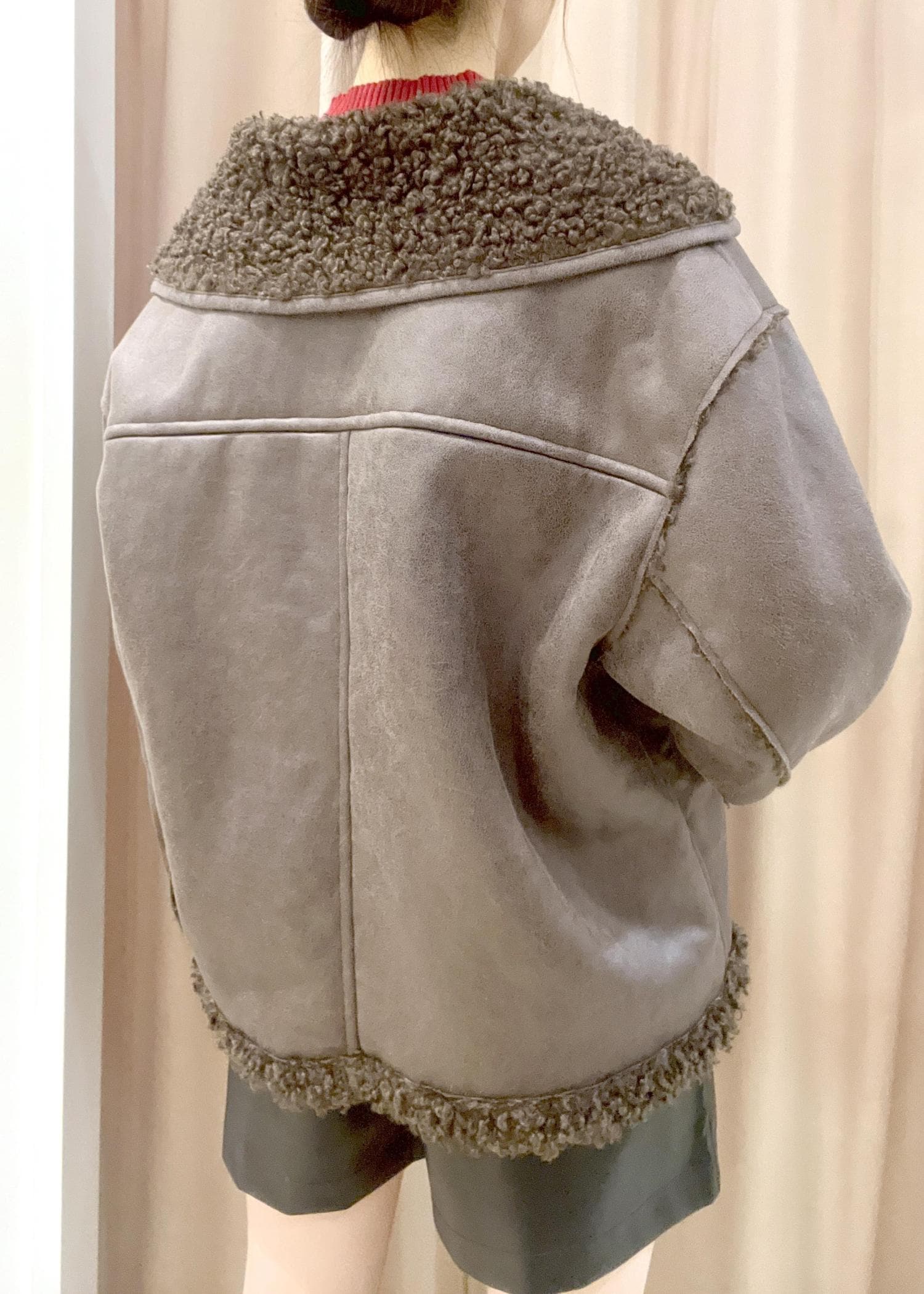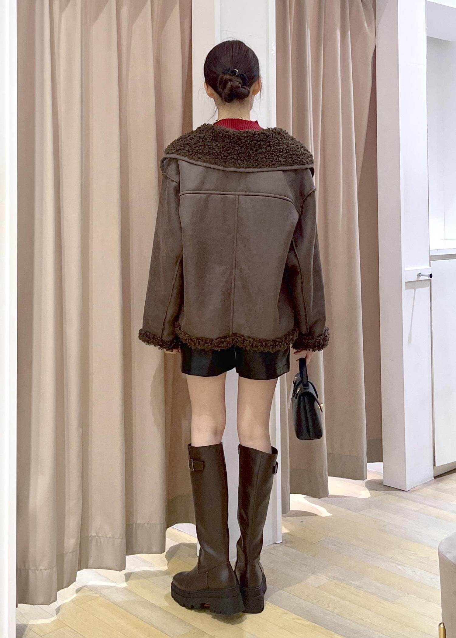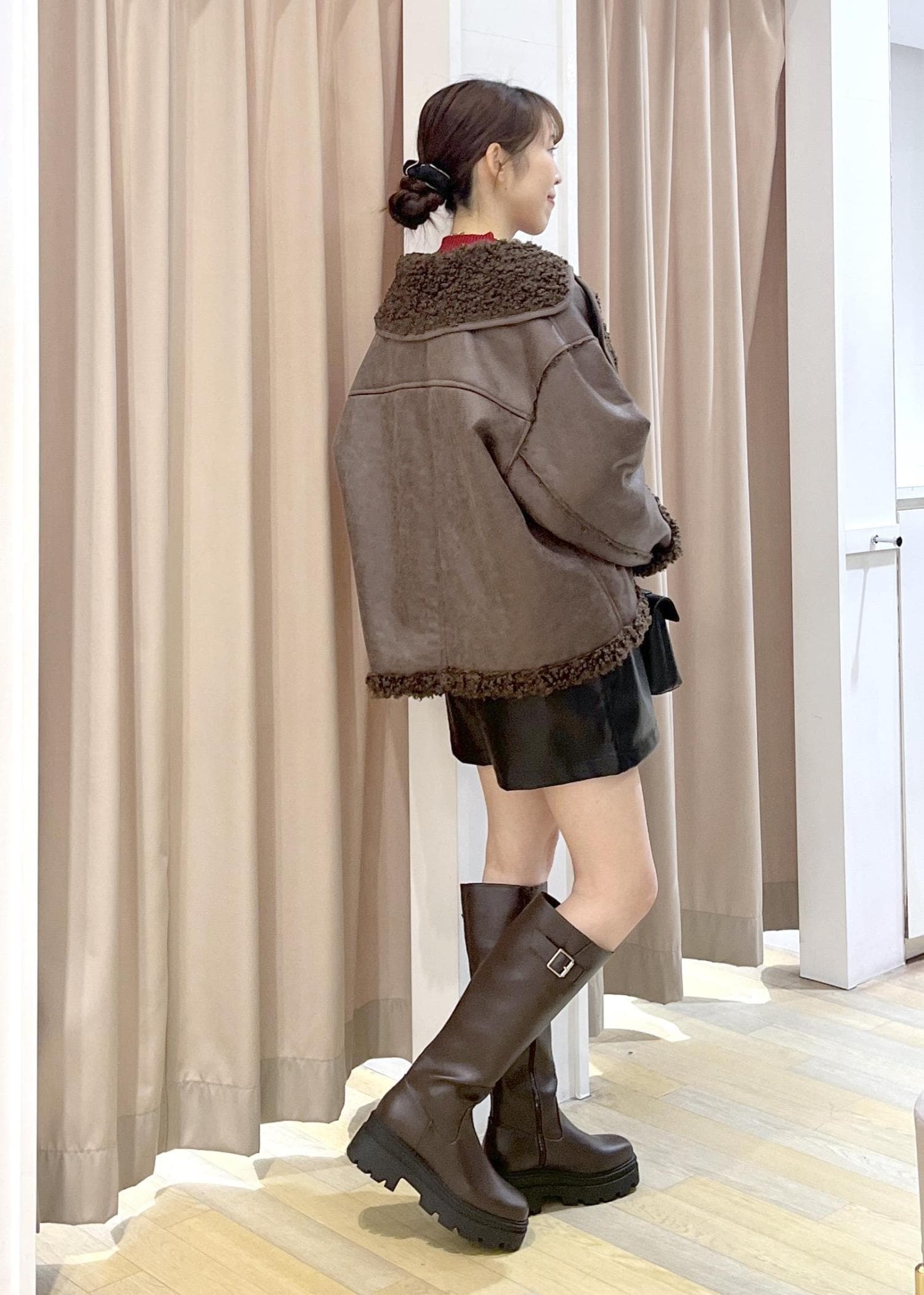 大きい襟にボアデザインで存在感のあるボアアウターです。内側もボアでもこもこ暖かいです。