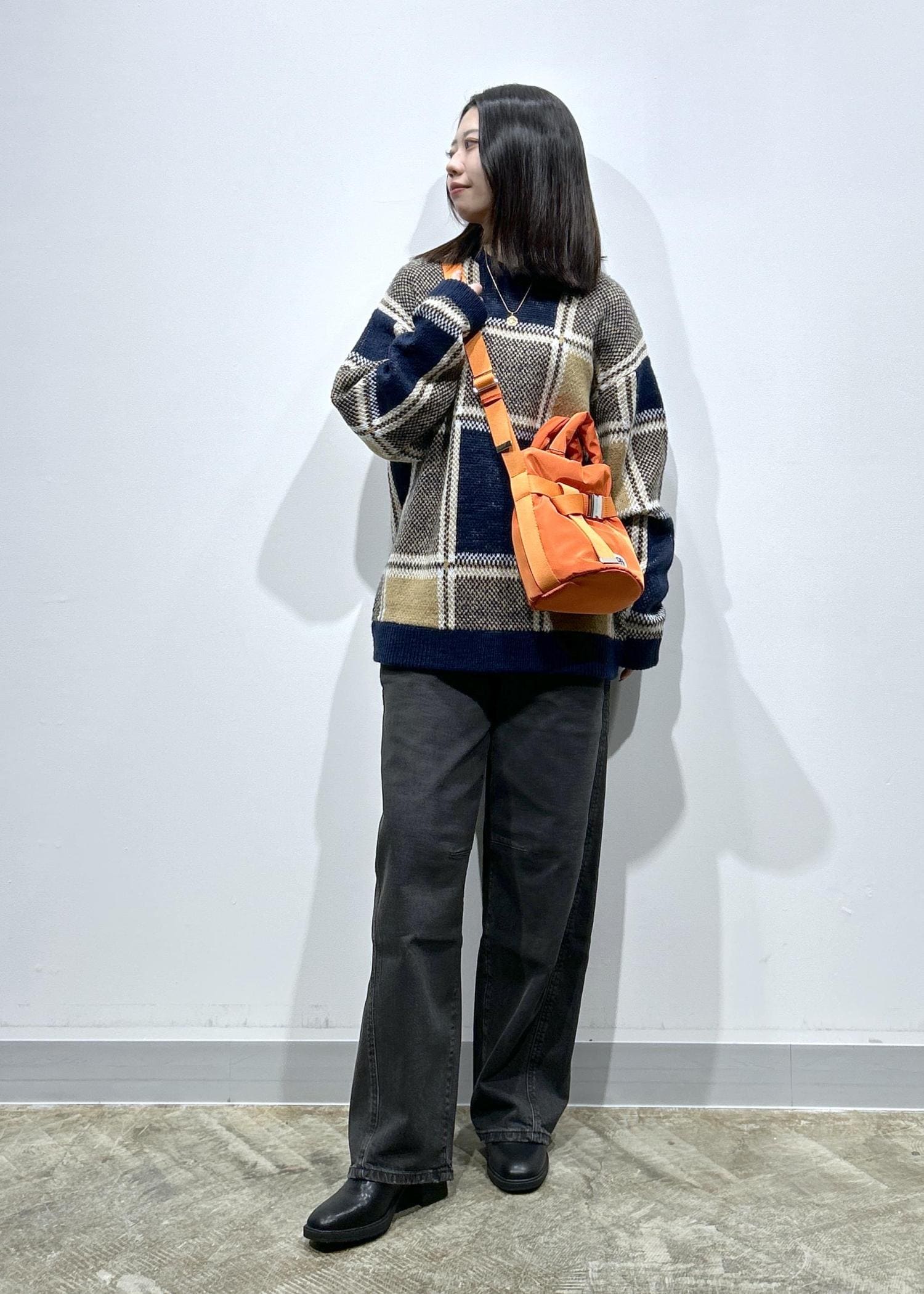 メンズアイテムのニットを使ったスタイリングです!