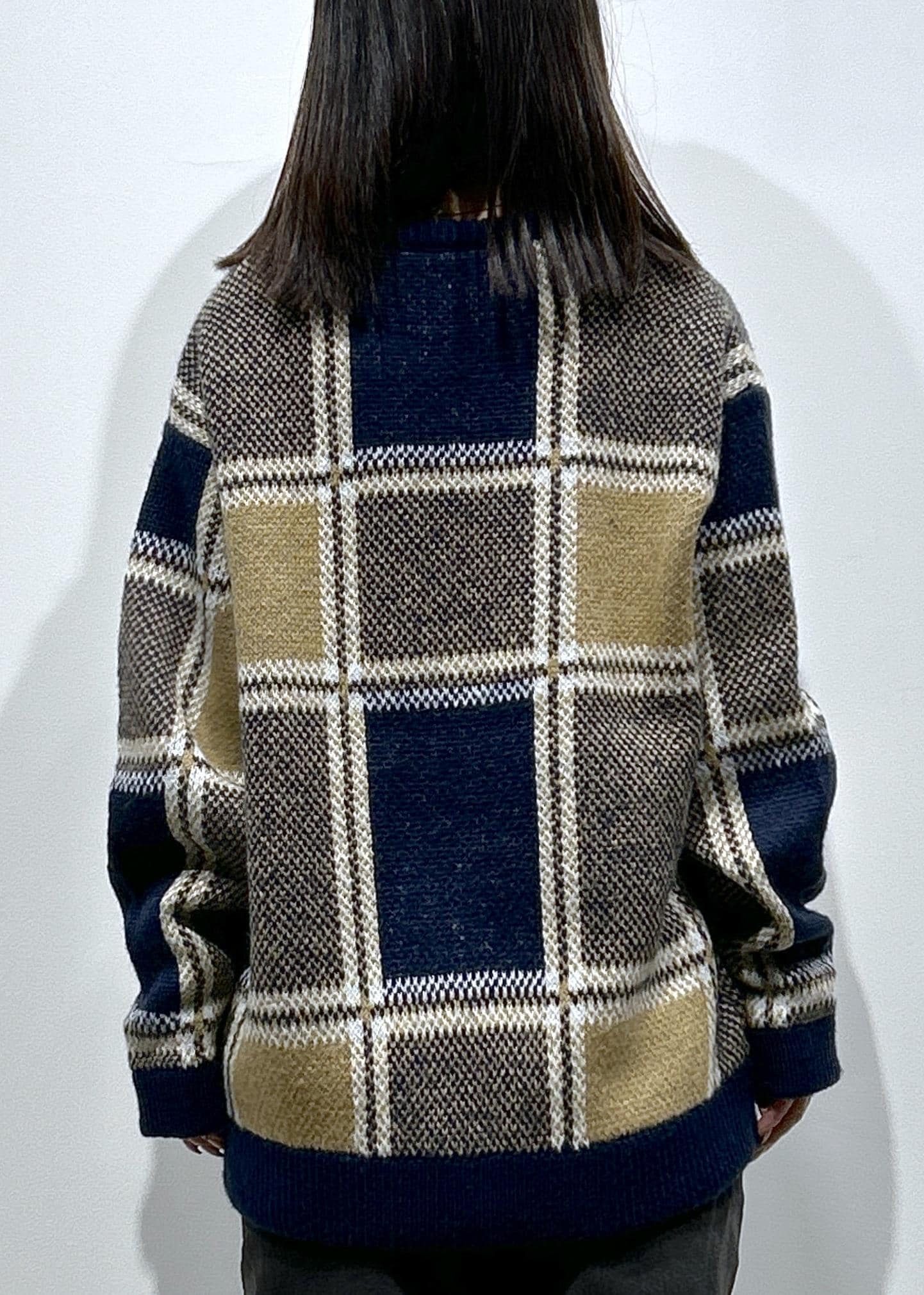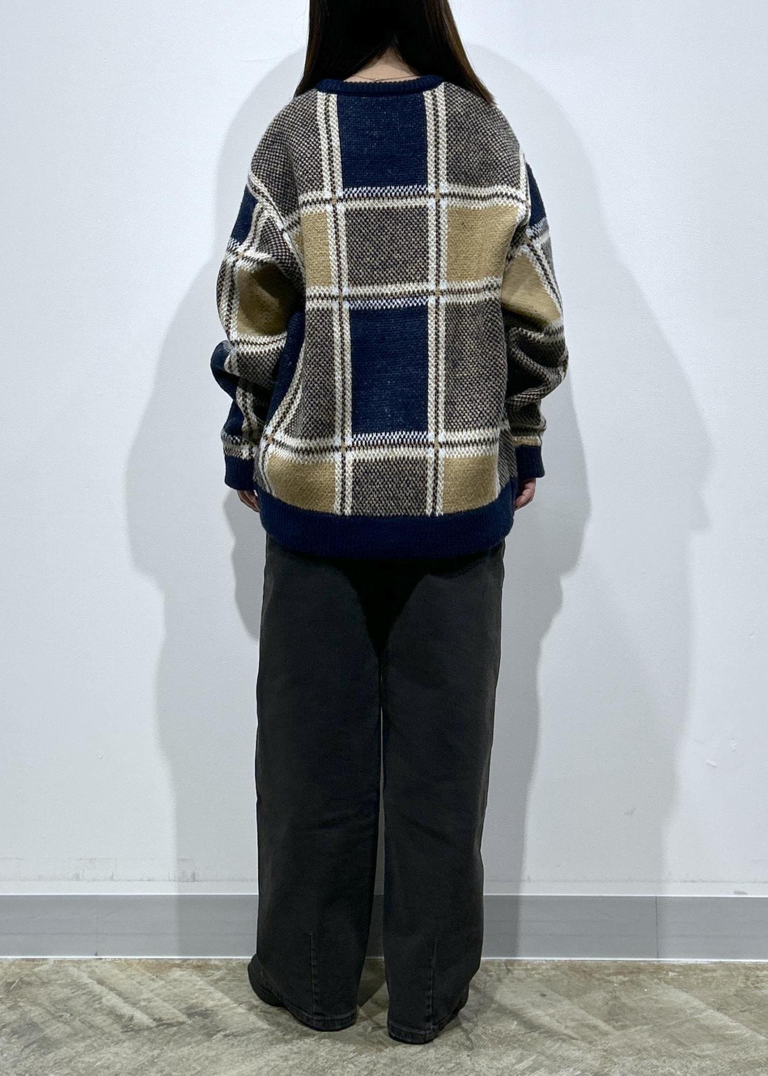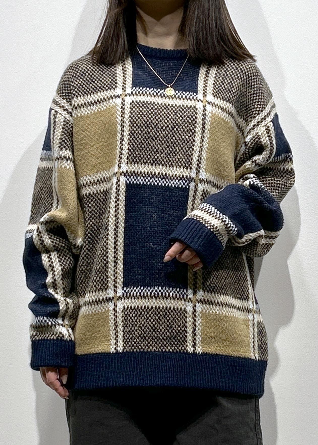 チェック柄ニットプルオーバー