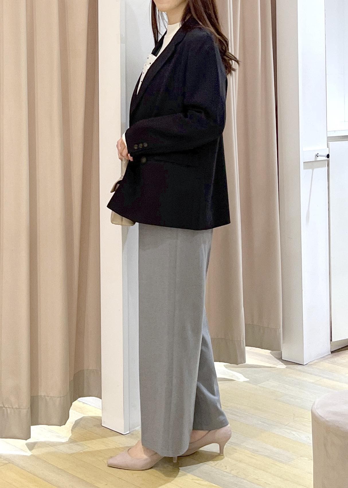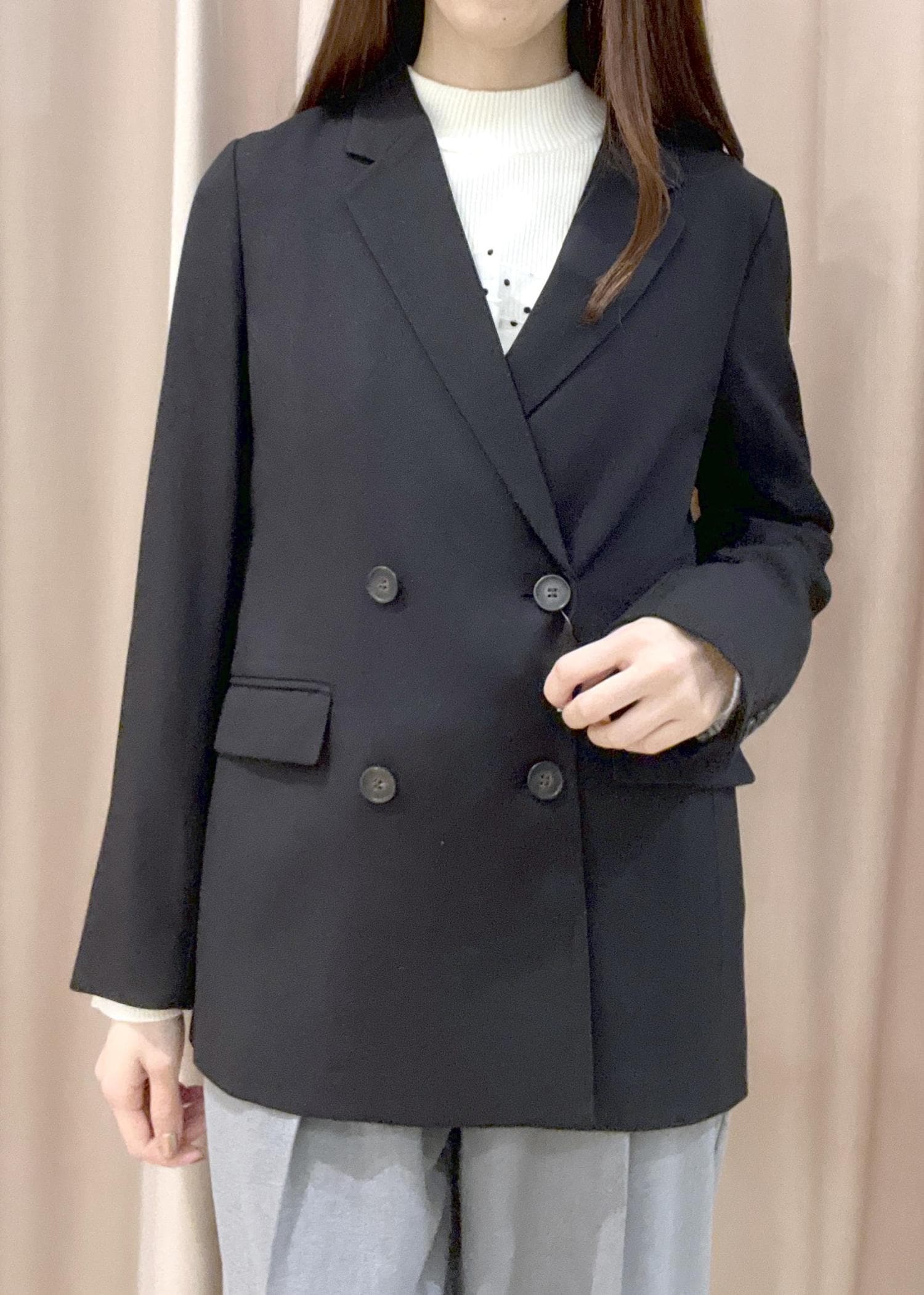 美easyウーリッシュダブルブレストテーラードジャケットのお仕事コーデ