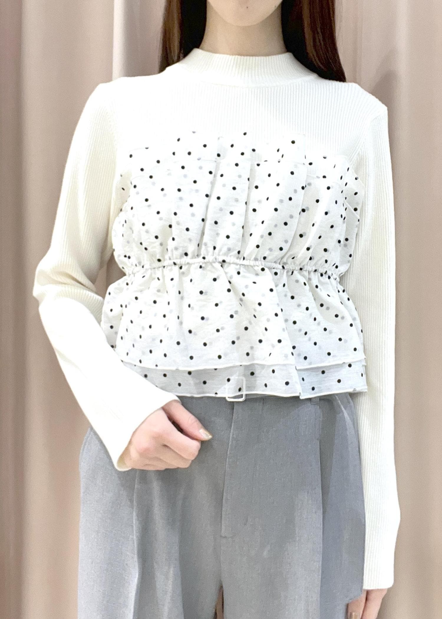 2BUY10%OFFVIS【美得】ビスチェドッキングニットプルオーバー/セットアップ対応キナリ系 / F¥5,489レビューチュール素材とニットがドッキングした華やかトップスです。ビスチェ風になり1枚でオシャレに決まります。