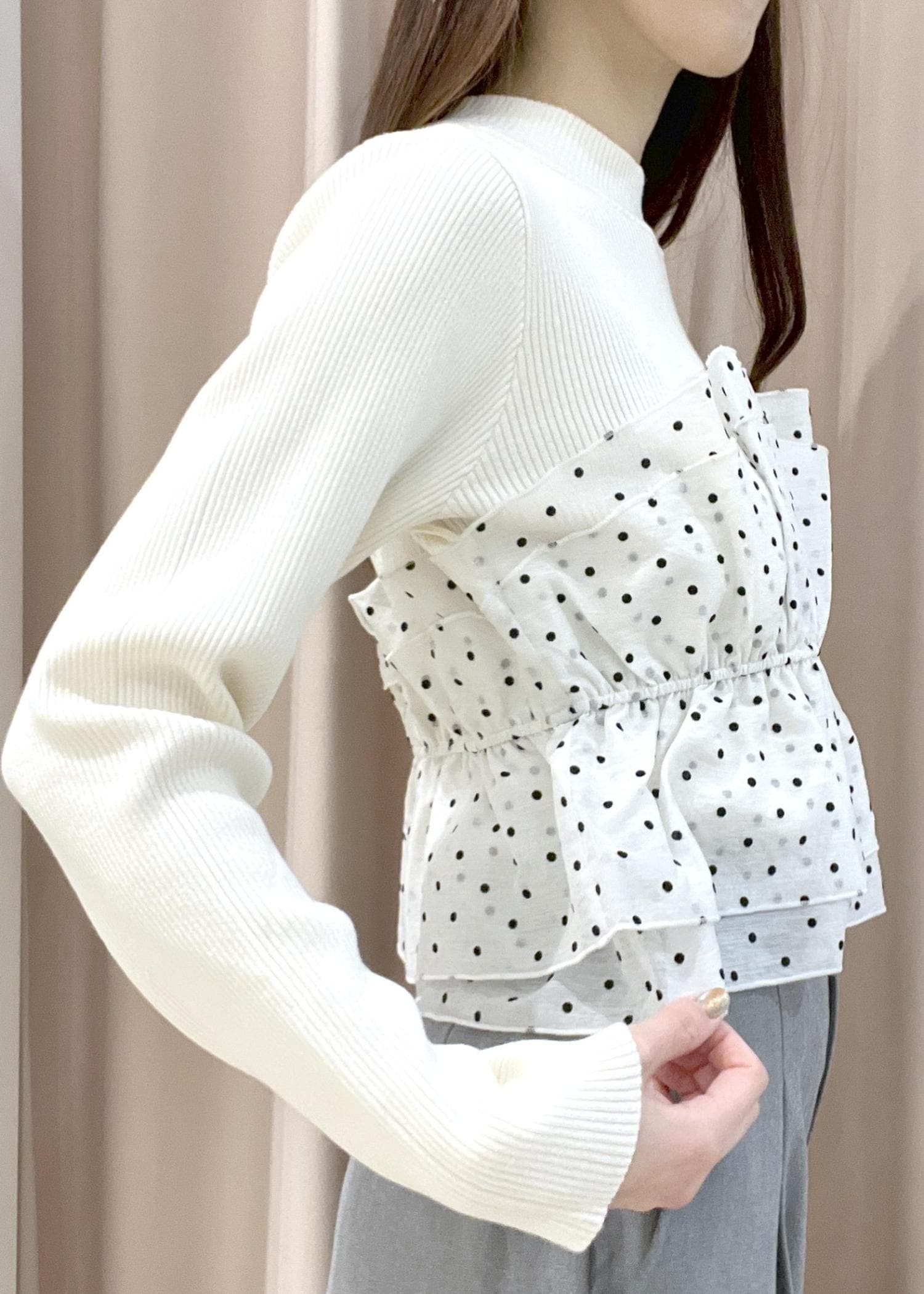 ドット柄もチラリと見えて可愛いお仕事コーデです!