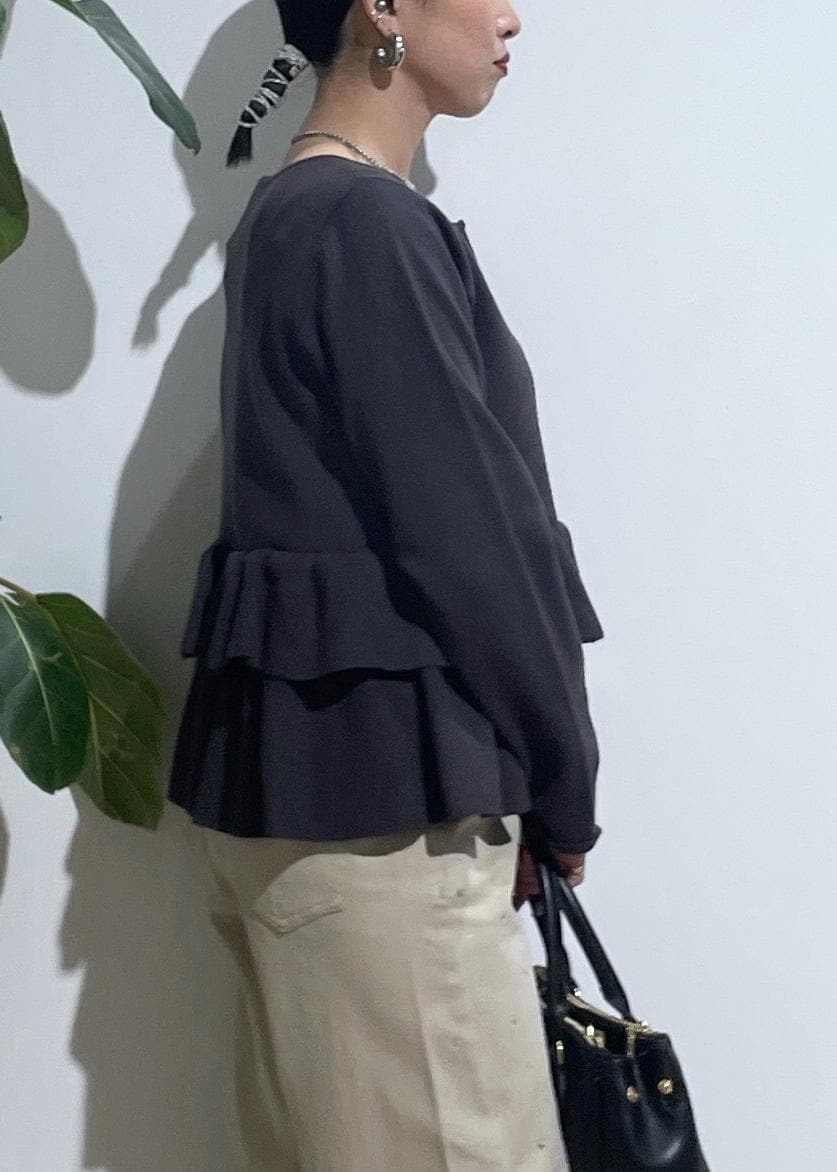 VISティアードペプラムニットカーディガンチャコール / F¥6,589レビュー気になるお腹周りカバーしてくれました!