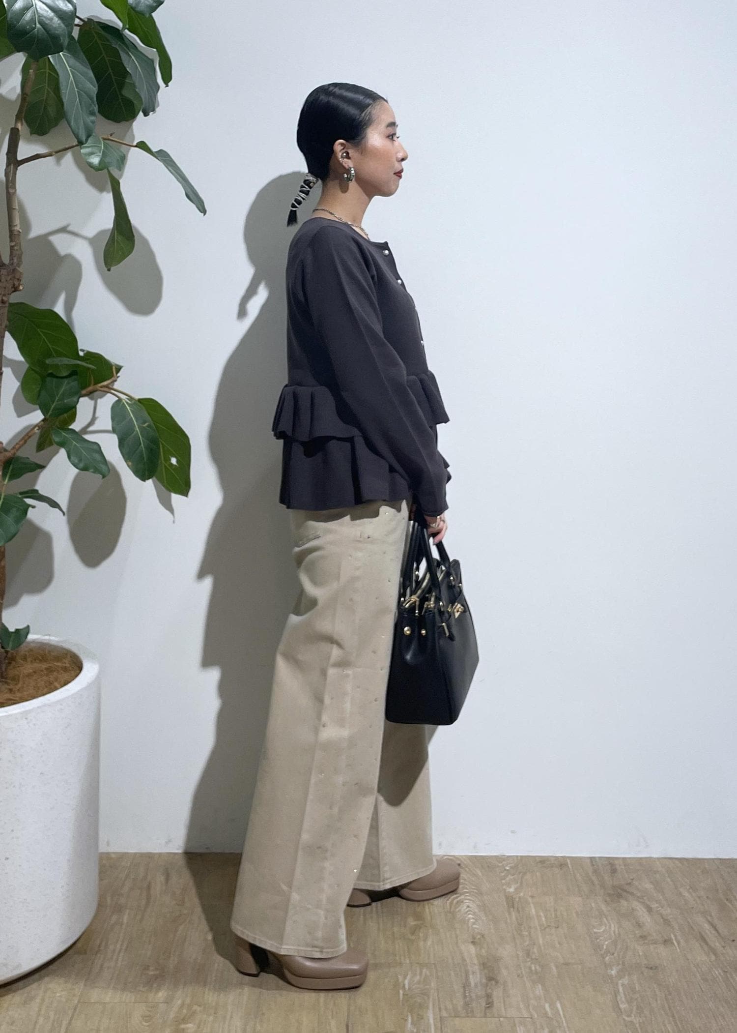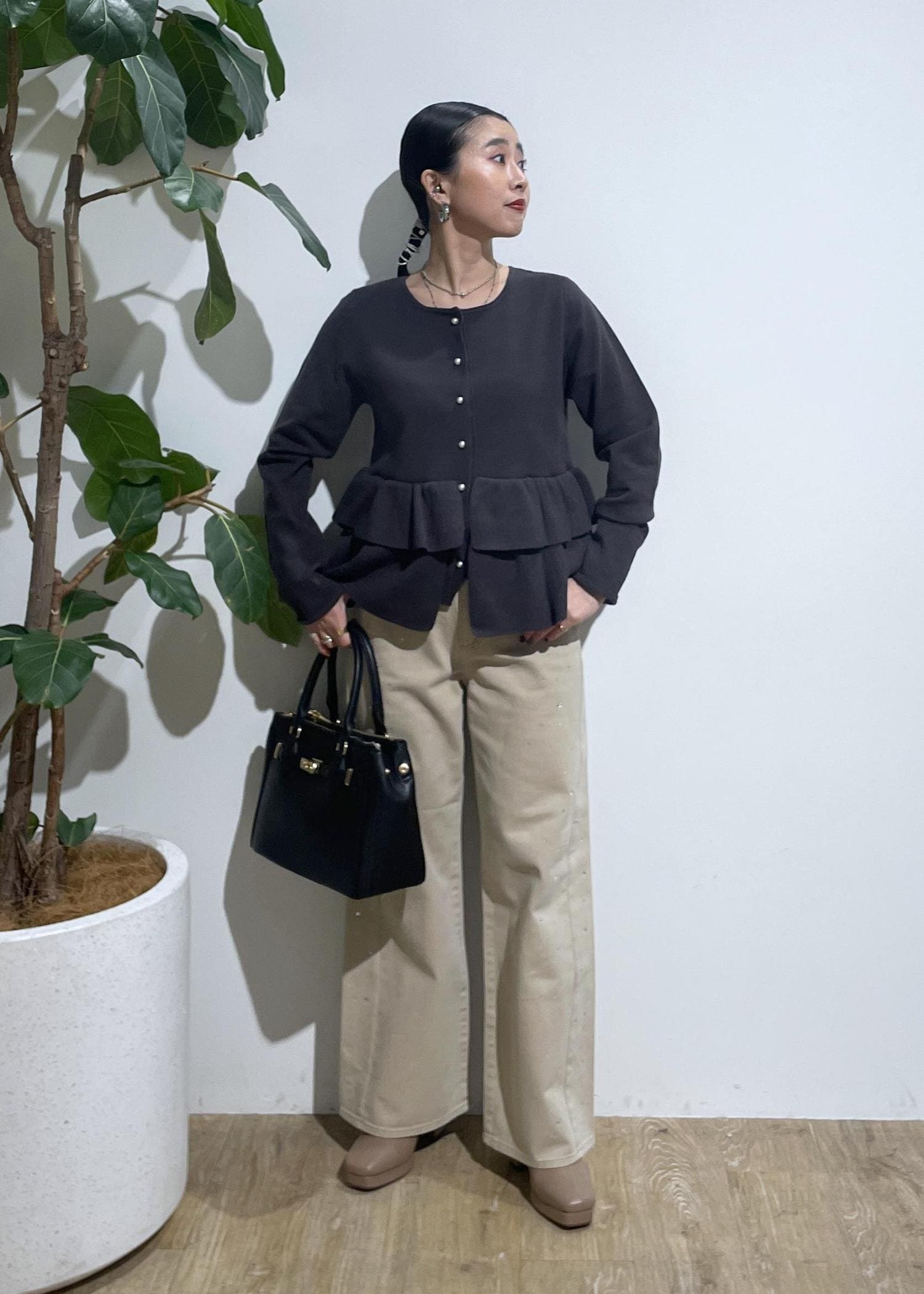 切替部分のバランスがよくスカート、パンツと合わせやすい丈感‼︎