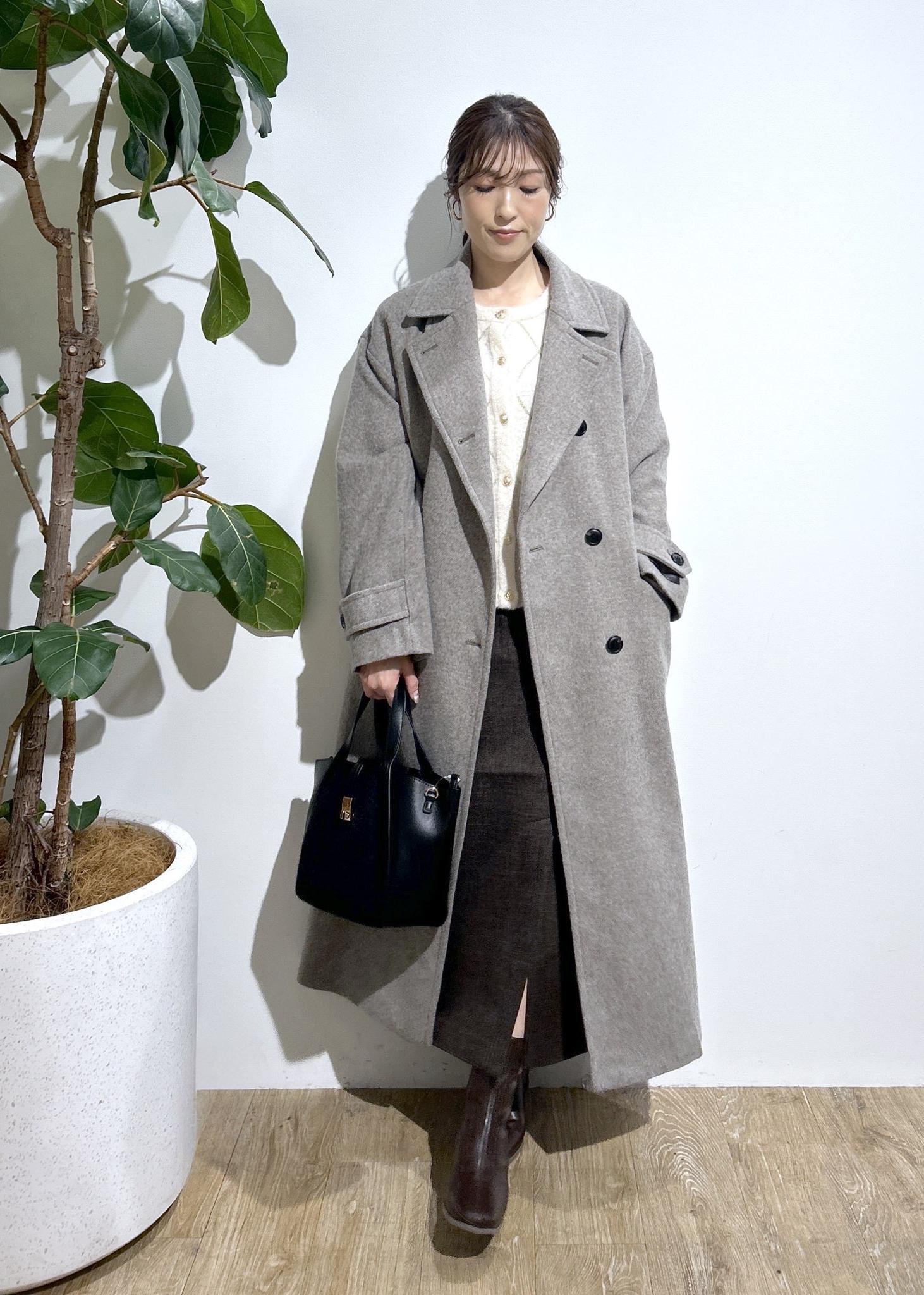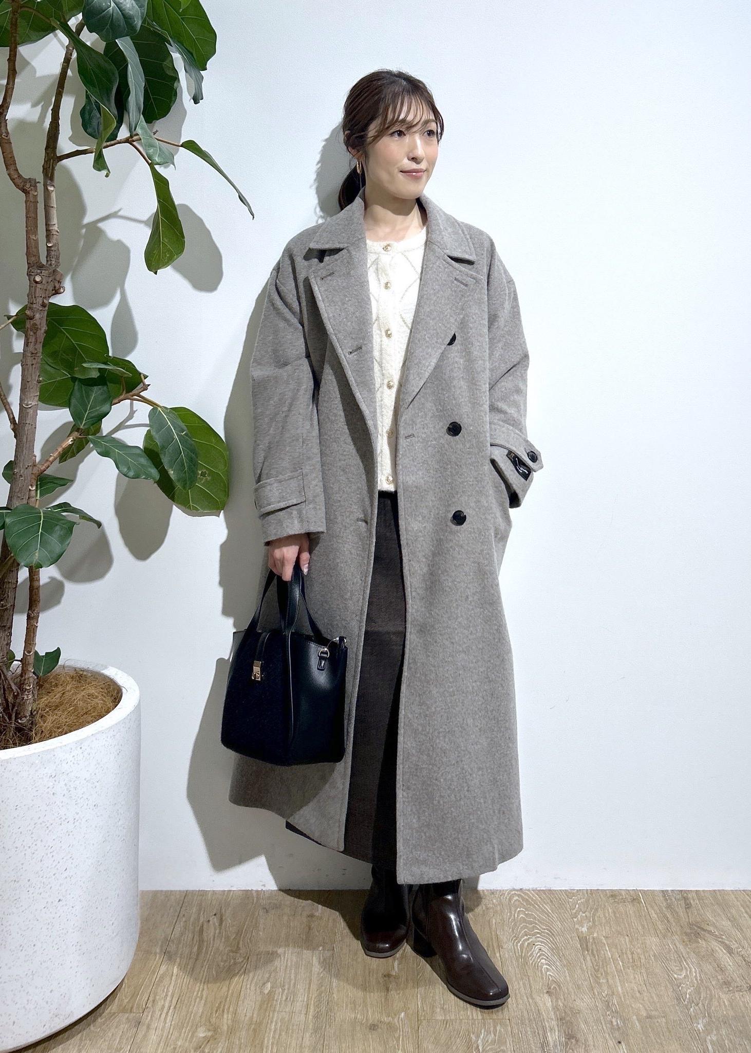コートの下から覗くカーディガンは1枚でオシャレに決まるので1枚あると便利!