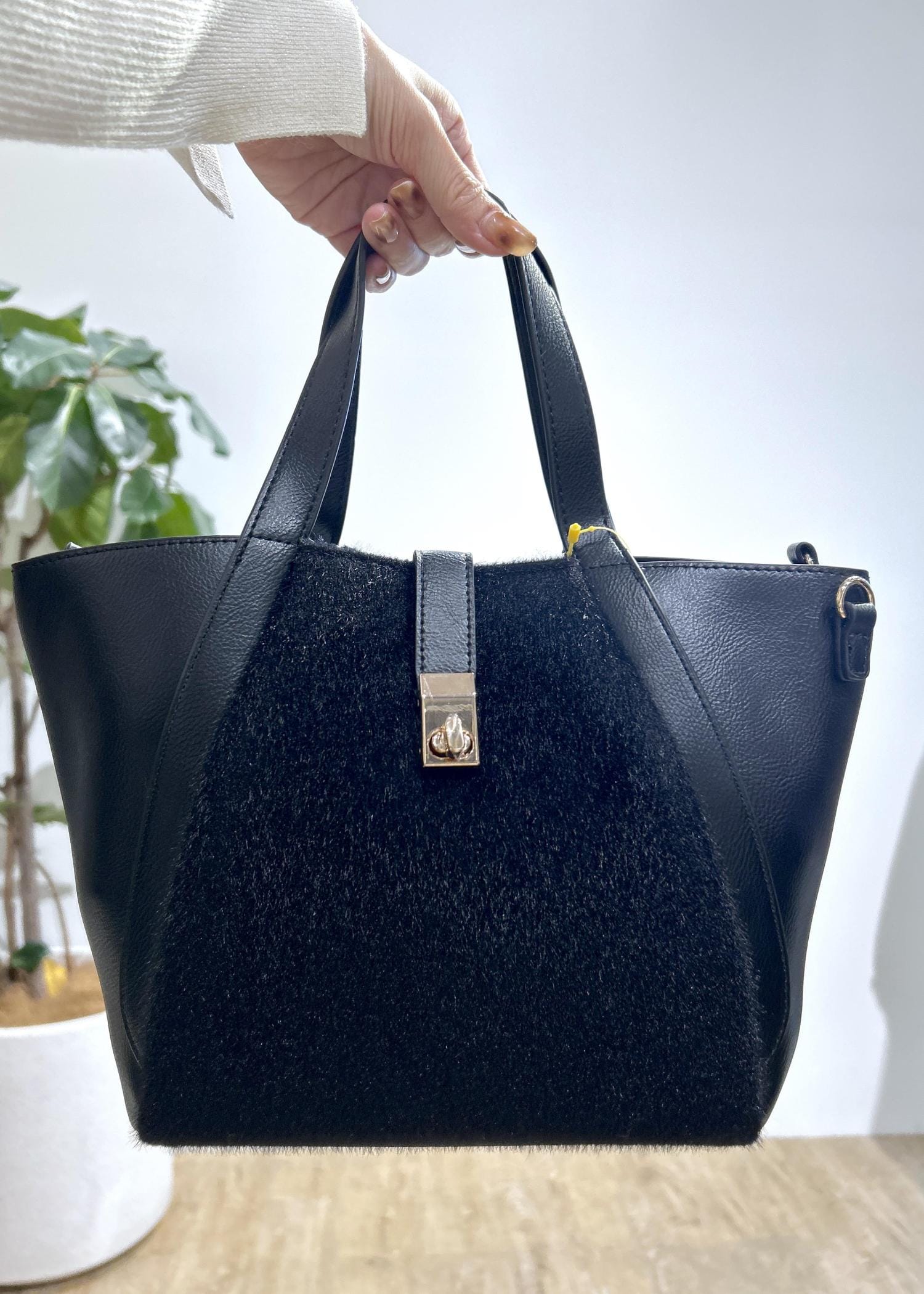 ROPÉ PICNIC PASSAGEme fit BAG ホースヘア調コンビスクエアフォルムバッグ/2WAYブラック / F¥3,293レビューマチがしっかりあり収納力抜群です!