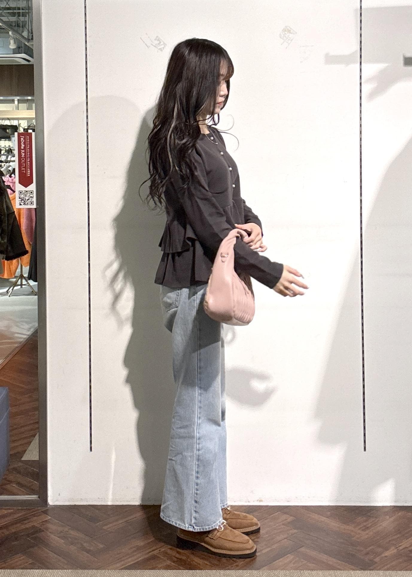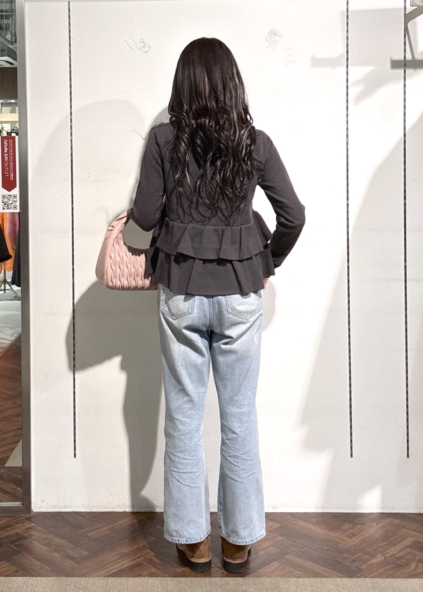 ペプラムの切り返し位置が少し高めなので、脚長効果に!