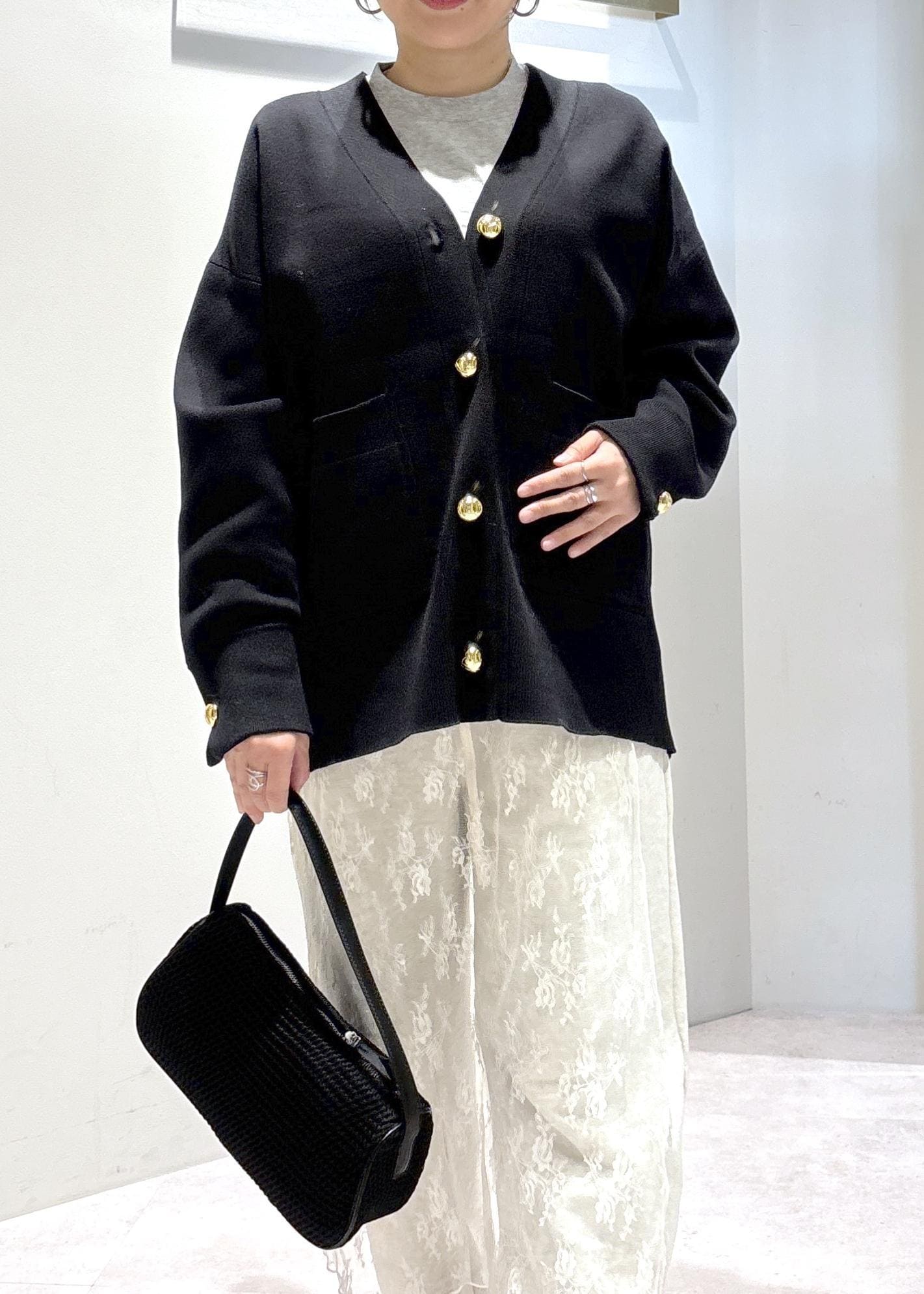 ADAM ET ROPÉ FEMME【再入荷】・【サステナブル】ロゴボタンミドルカーディガンブラック / F¥15,400レビュー▼サイズ感