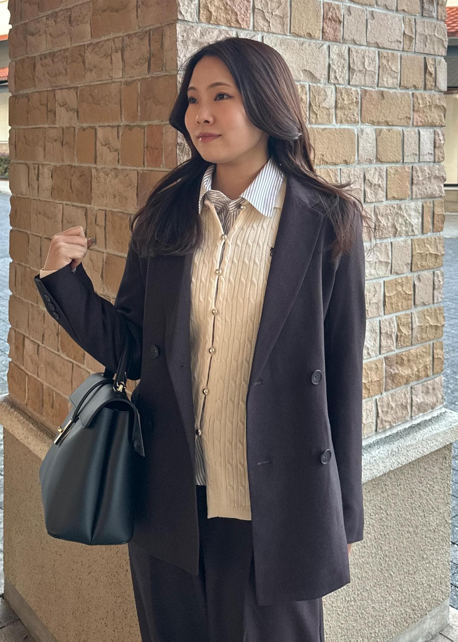 VIS【期間限定価格】美easyウーリッシュダブルブレストテーラードジャケット【セットアップ対応/洗える】ダークブラウン / S¥8,009レビュー少しオーバーサイズなサイズ感で、ヒップはすっぽり隠れる丈感でした。
