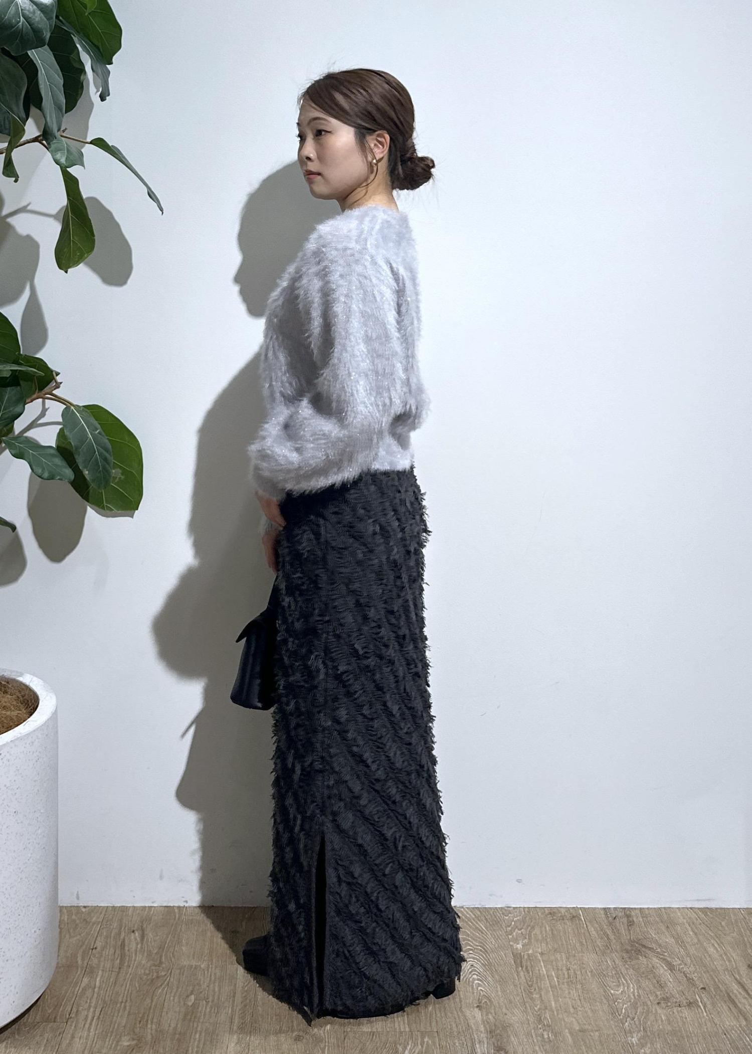 2BUY10%OFFVISフリンジニットナロースカートキナリ / F¥4,612レビューロング丈で、少し長めの丈感でした。