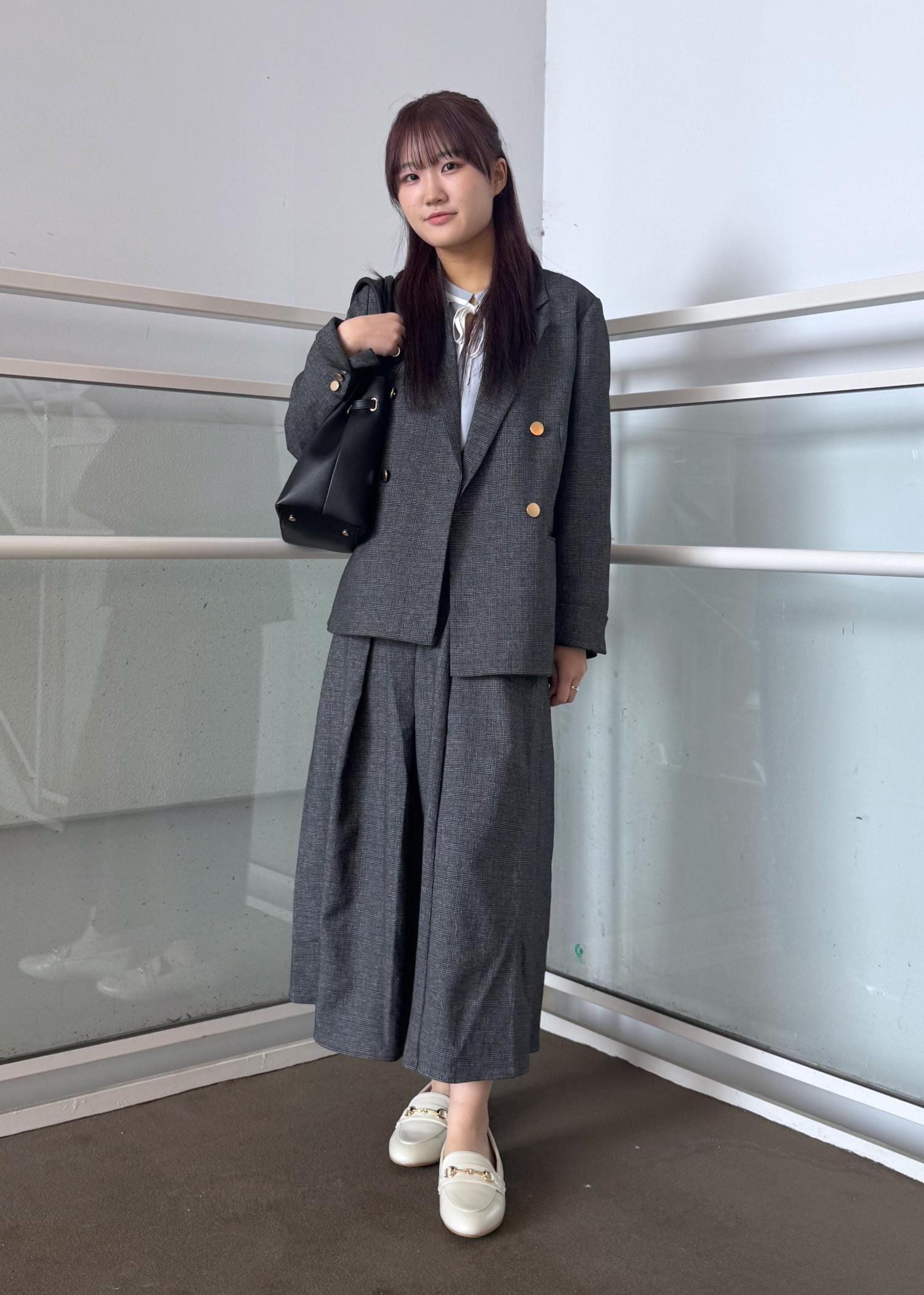 シンプルになりすぎないようにインナーは明るめのブルーを着用しました!✨