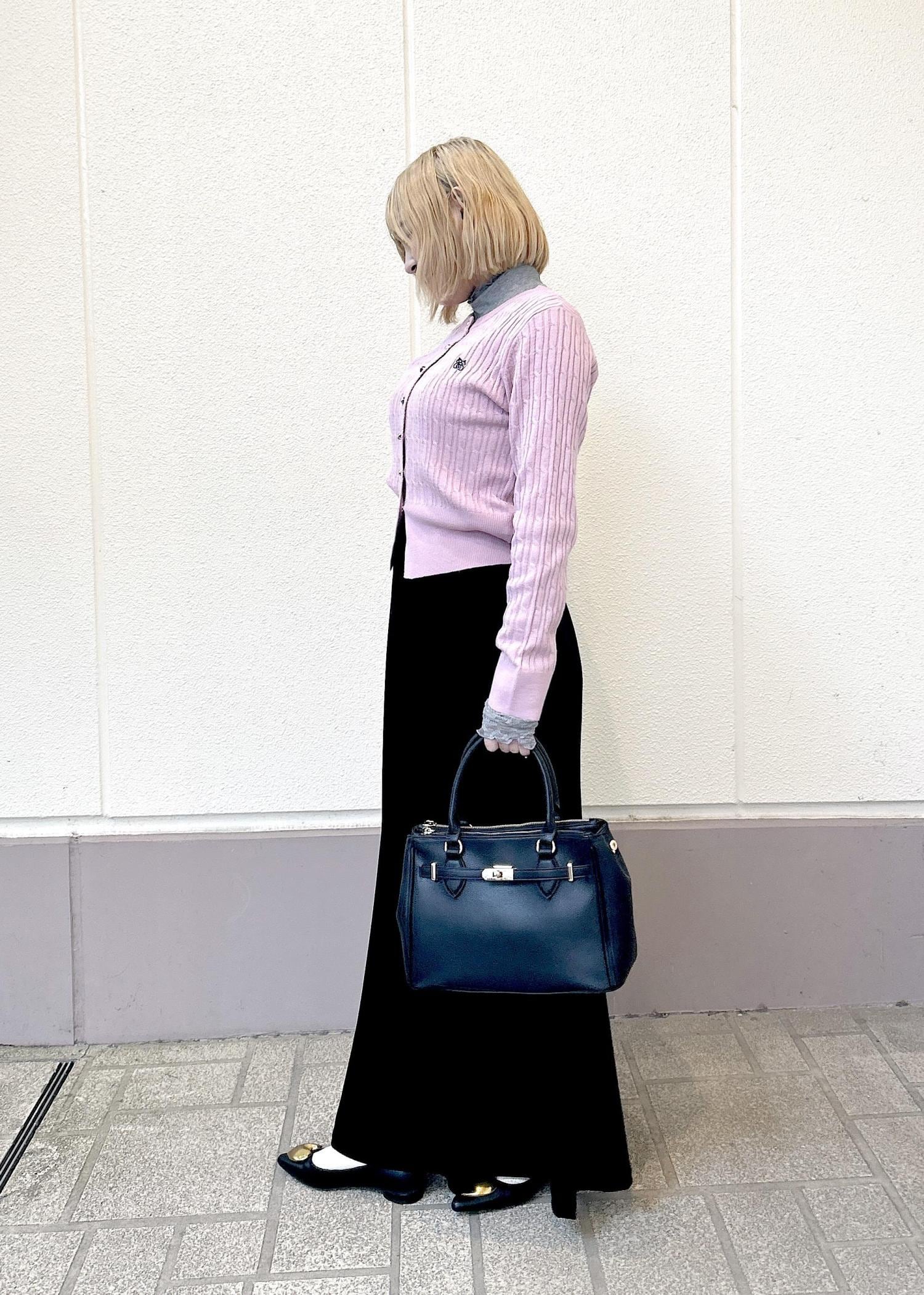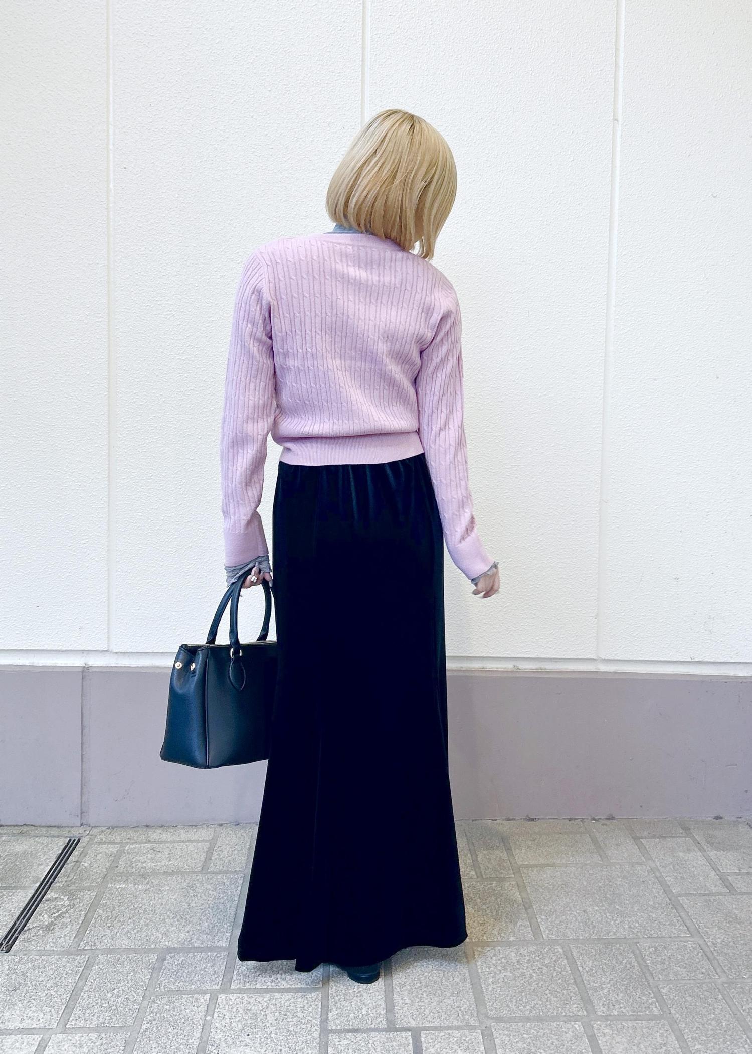 ビビットなピンク色が特徴的なカーディガンを使って、大人でも着やすいコーディネートを組んでみました!!