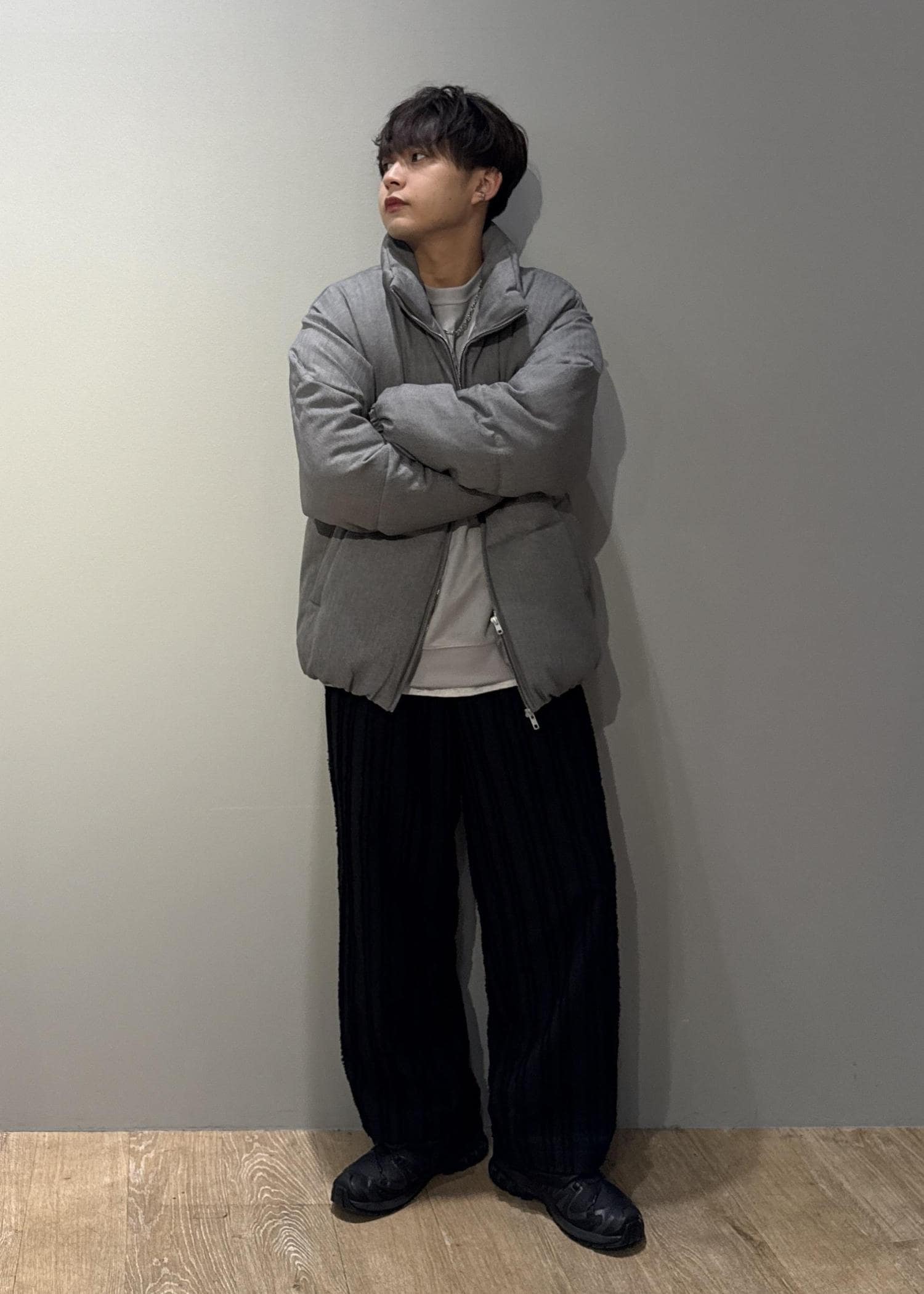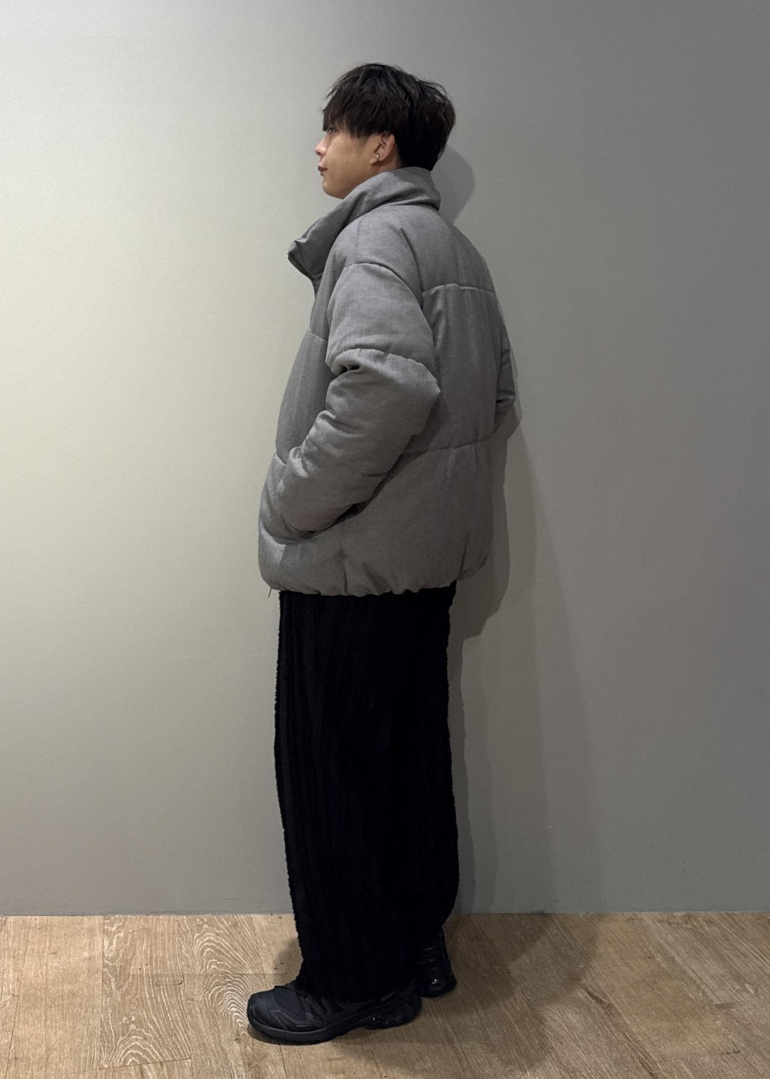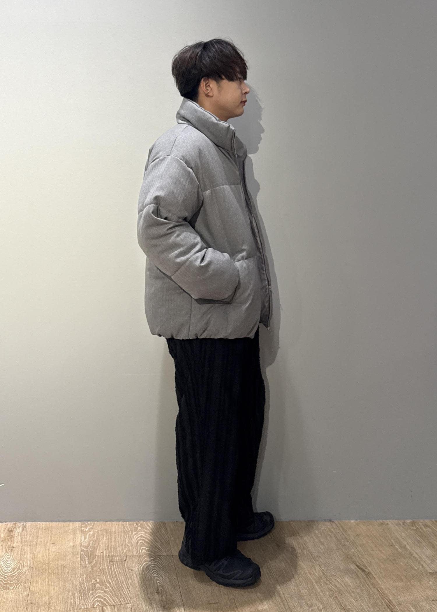 中綿入りながらボリュームを抑えた仕上がりで、軽さと暖かさのバランスが取れた素材感が特徴。