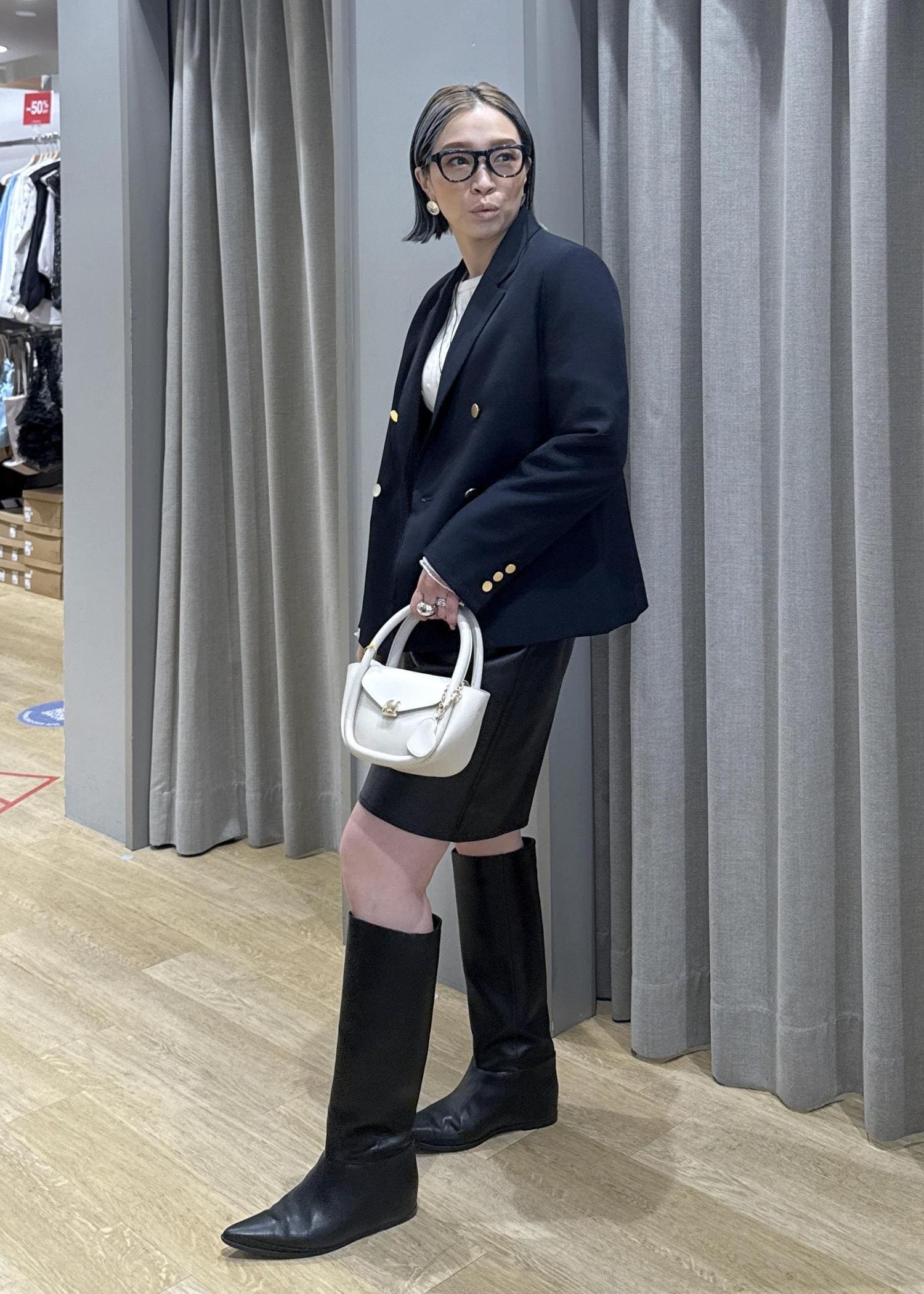 ハーフパンツとロングブーツ。