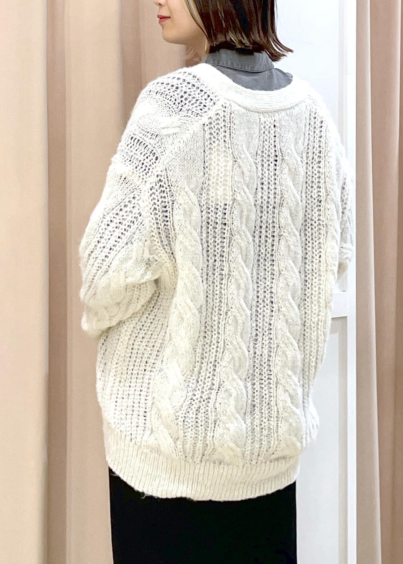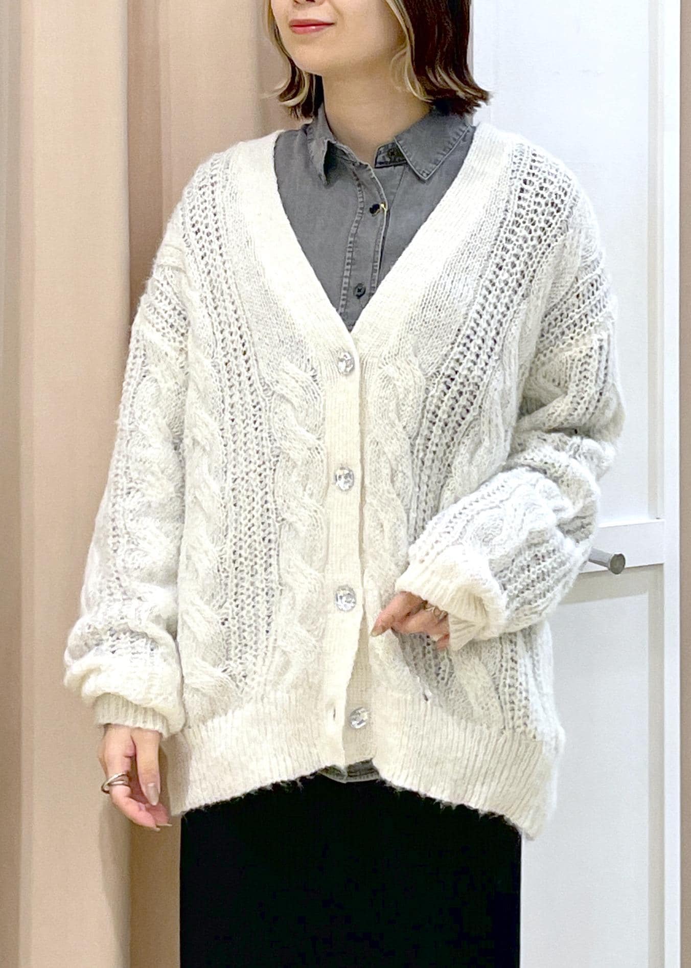 ROPÉ PICNICゆるケーブル編みVネックニットカーディガンキナリ / F¥2,998レビューふんわりした素材とビジューボタンが可愛い一枚です!