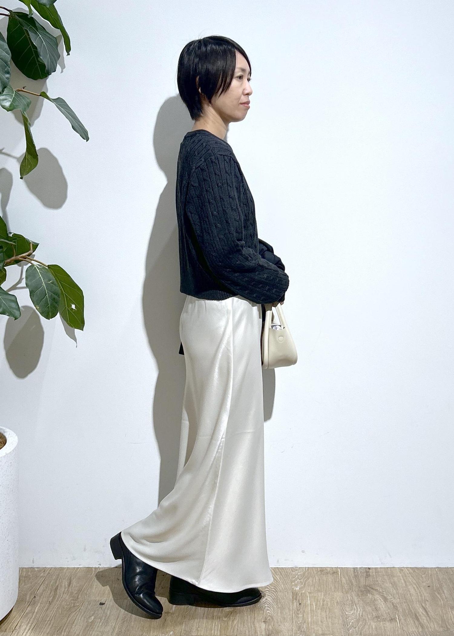 ROPÉ PICNIC細見えバイアスサテンスカート/イージーケアオフホワイト / F¥6,490レビューラインがめちゃくちゃ綺麗です。