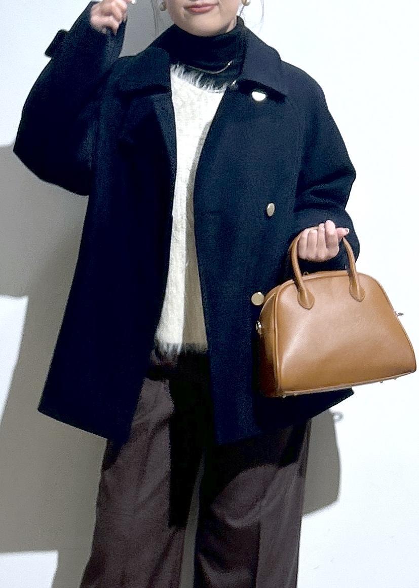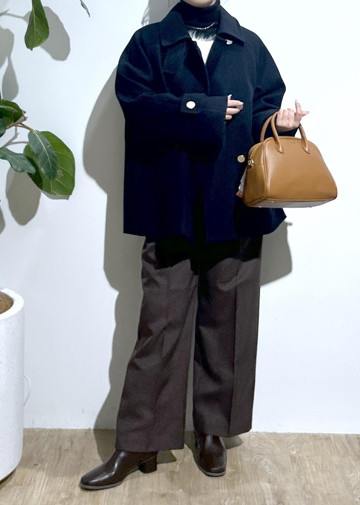 上までボタンを止めてスタンドカラーコートにするとかっちり感もあり、お仕事にも◎
