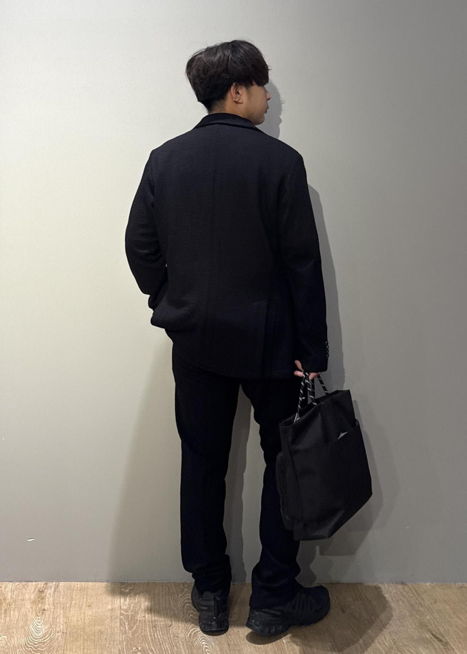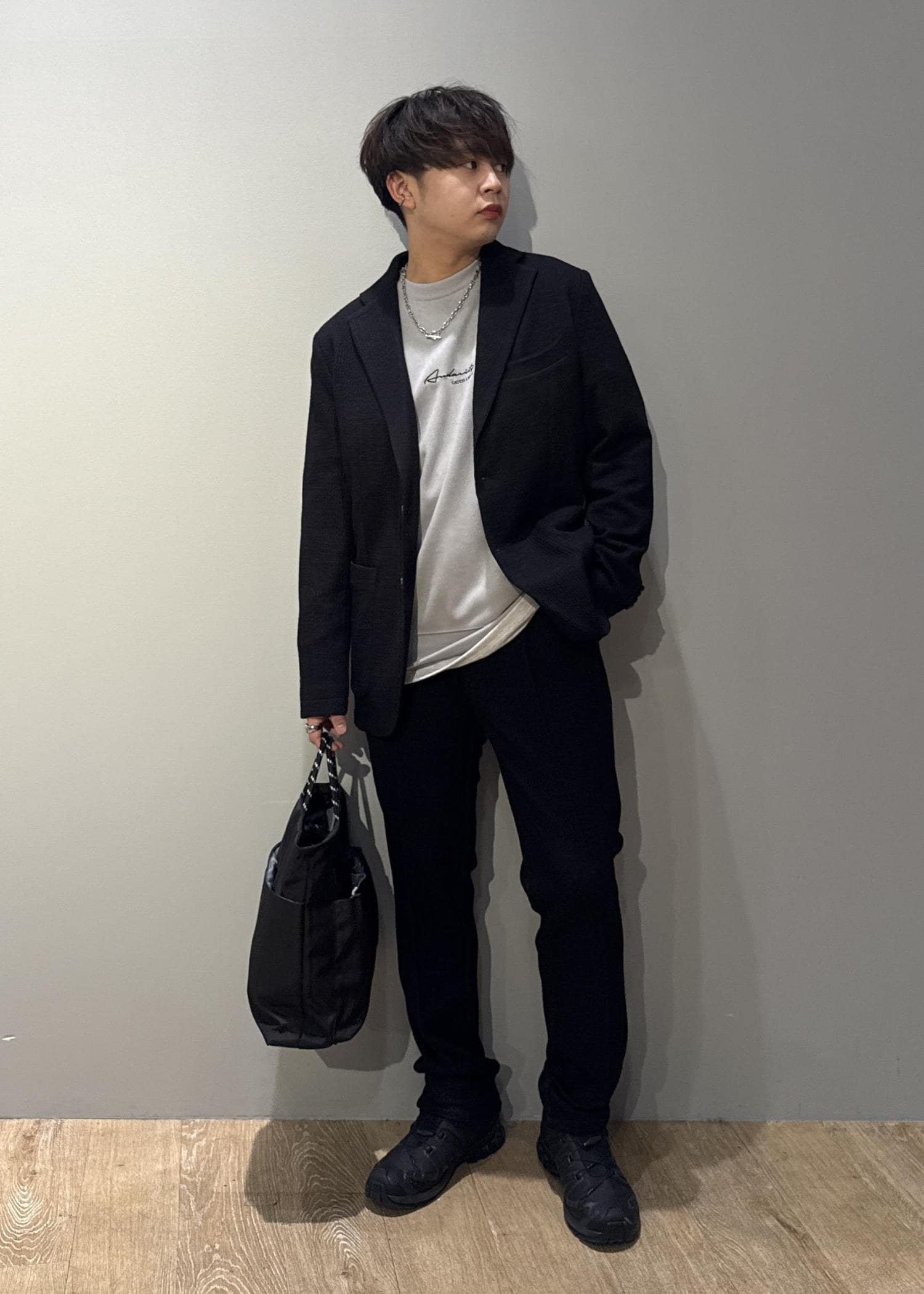 今回はウールミックスジャージージャケット&スラックスを使ったセットアップコーデです。上品な見た目とは思えないほど、ストレッチ性と保温力があり、快適さ間違いなしです。