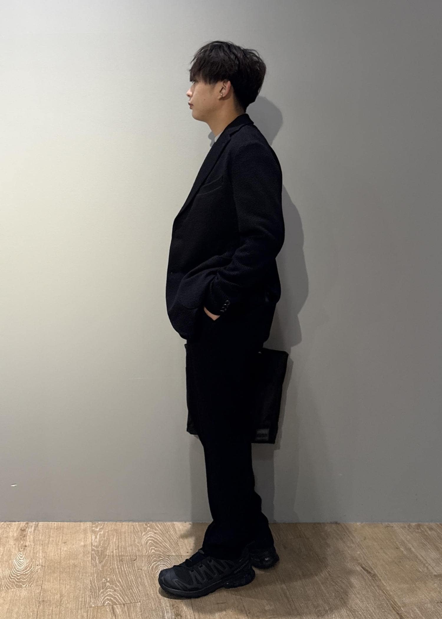 j.n.r.dウールミックスジャージースラックス/セットアップ対応ブラック / L¥13,200レビューウールのウォーム感と上品な質感に、ジャージ素材の柔らかさと快適な着用感を融合した、ウールミックスジャージ素材を使用。