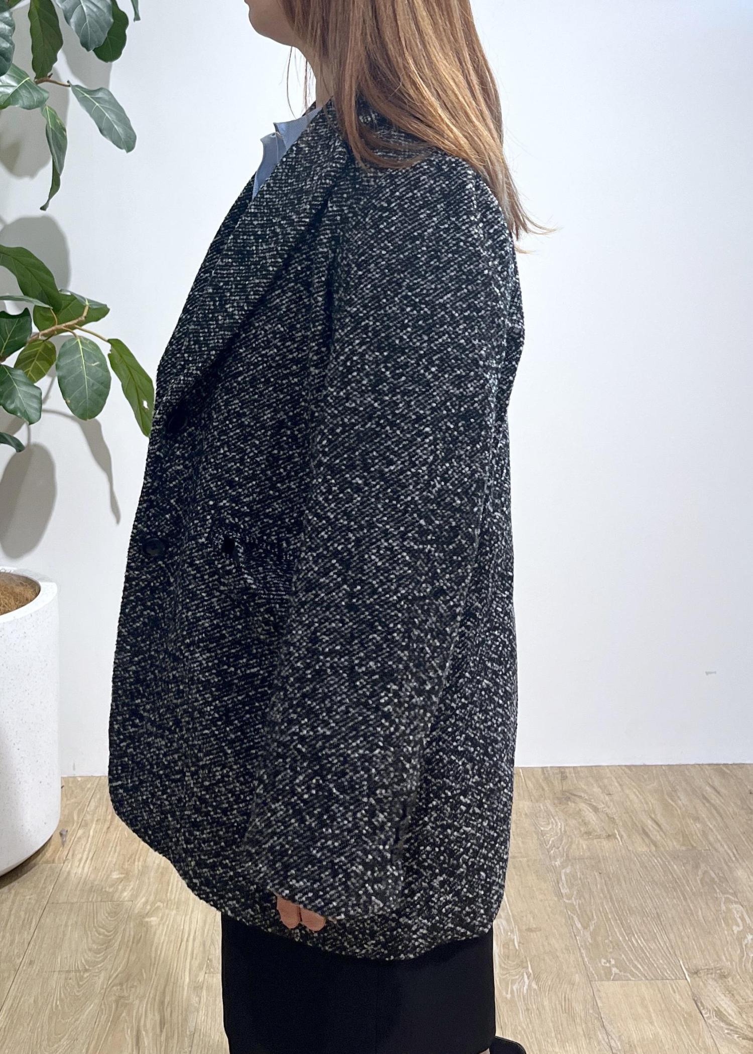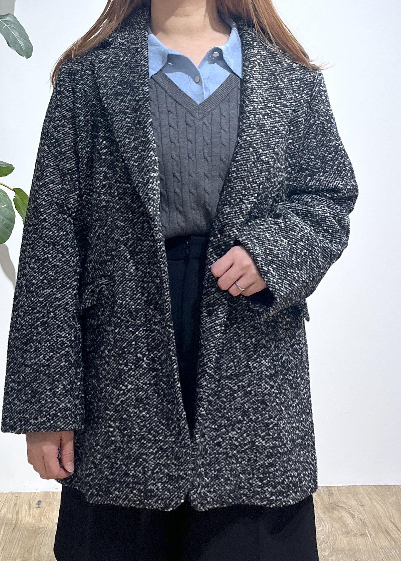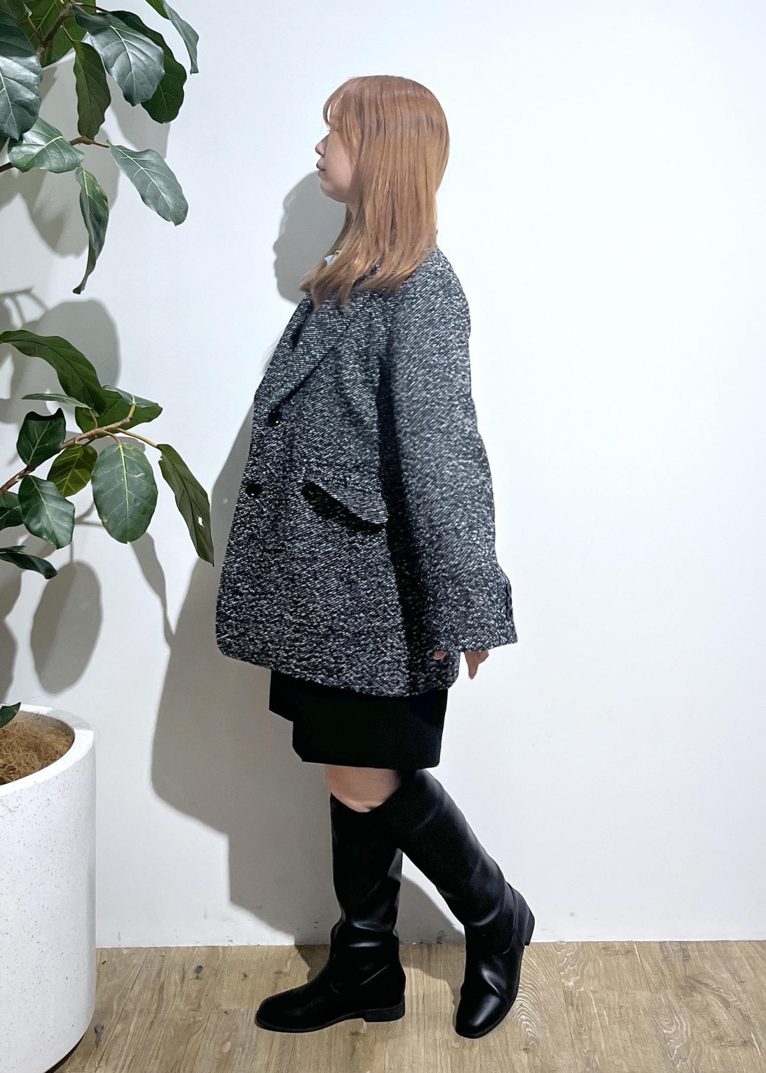 ROPÉ PICNICネップツイードテーラードジャコットブラック系 / F¥10,560レビュージャケットとコートの中間くらいの素材のジャコット。ゆとりがあるシルエットでショートパンツとロングブーツと相性が良いです。