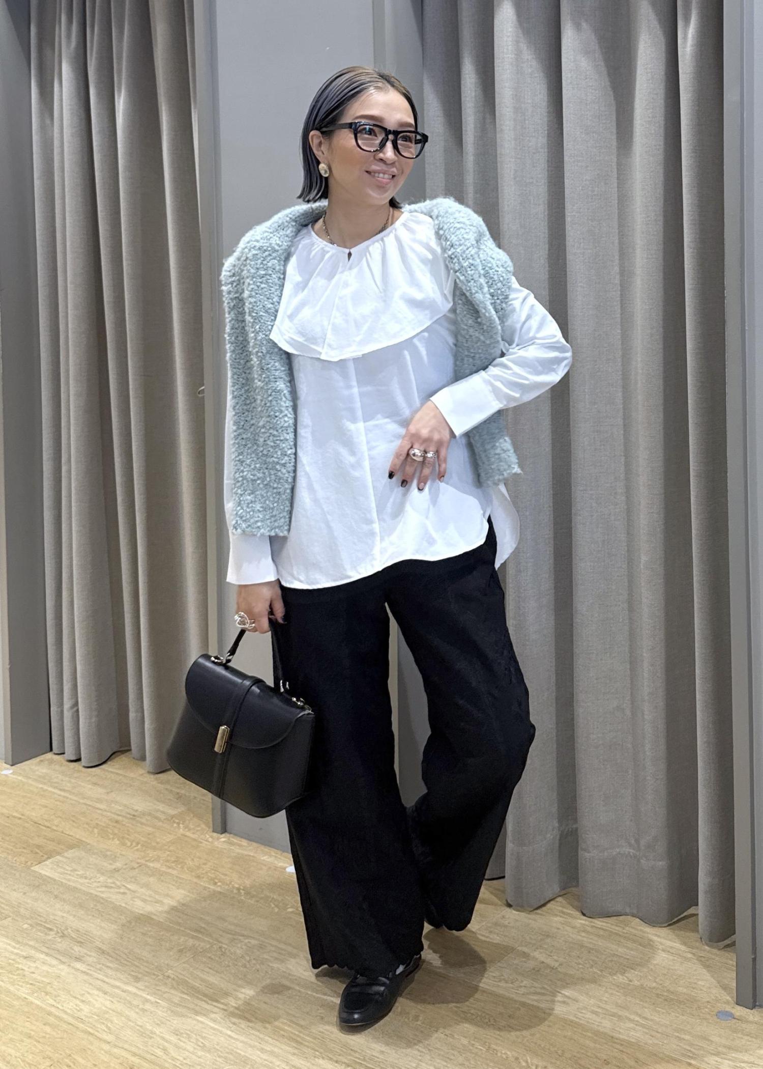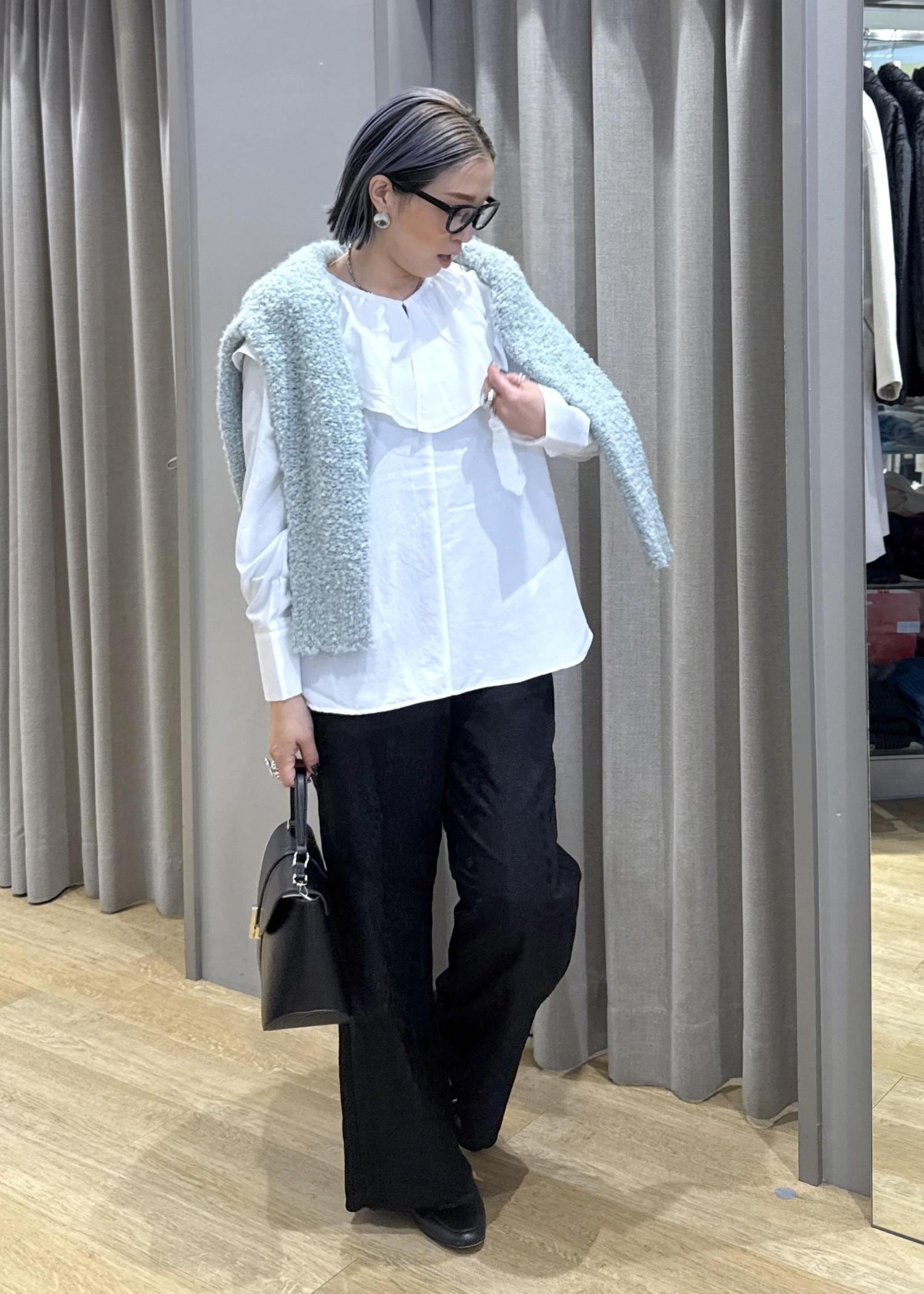首周りも大きく開いていないので、襟なしの羽織りと相性がよく、